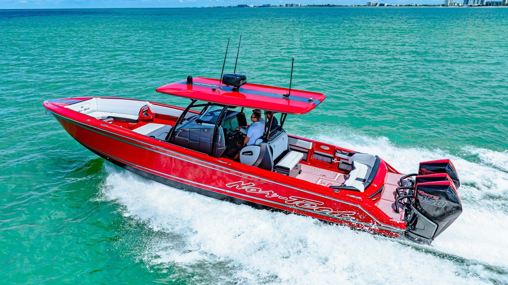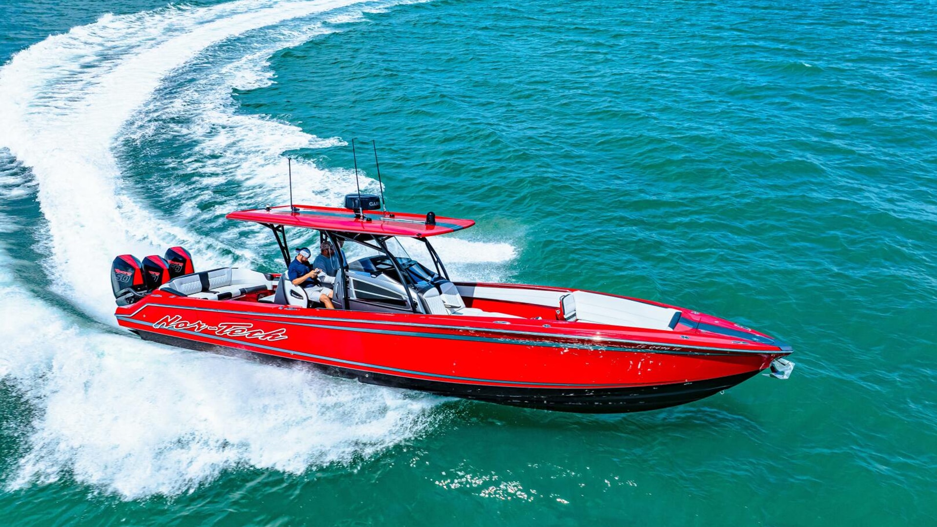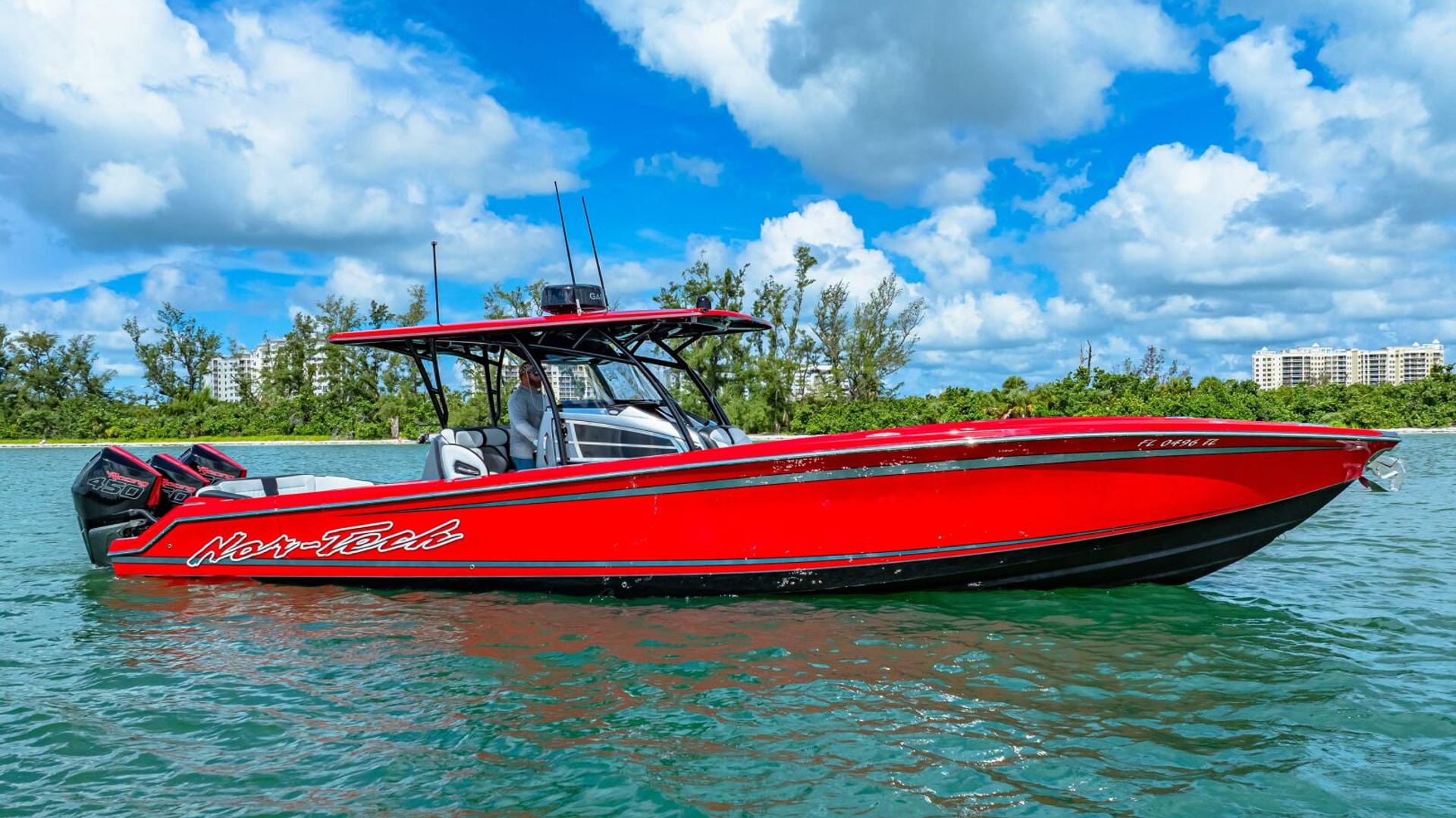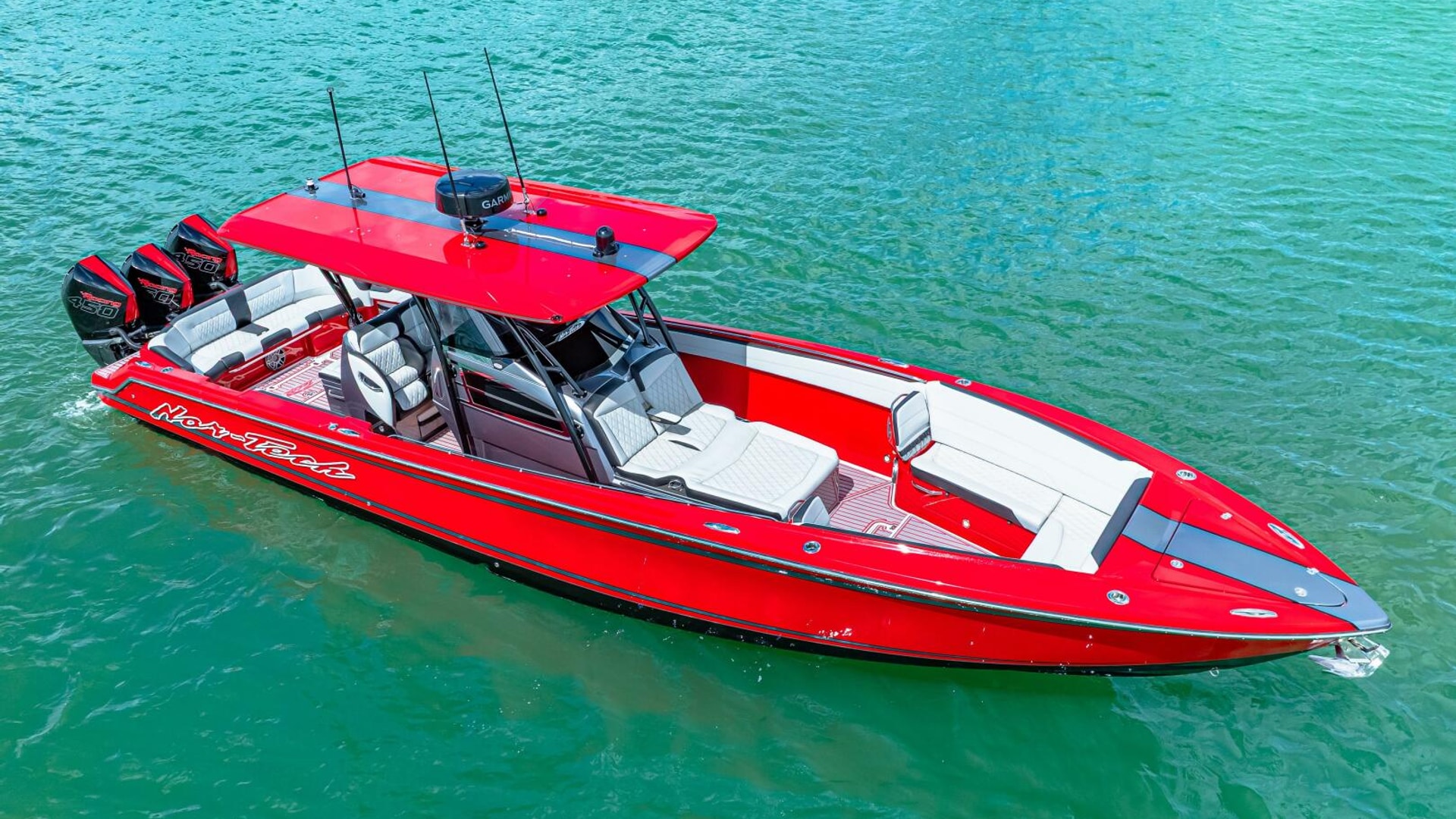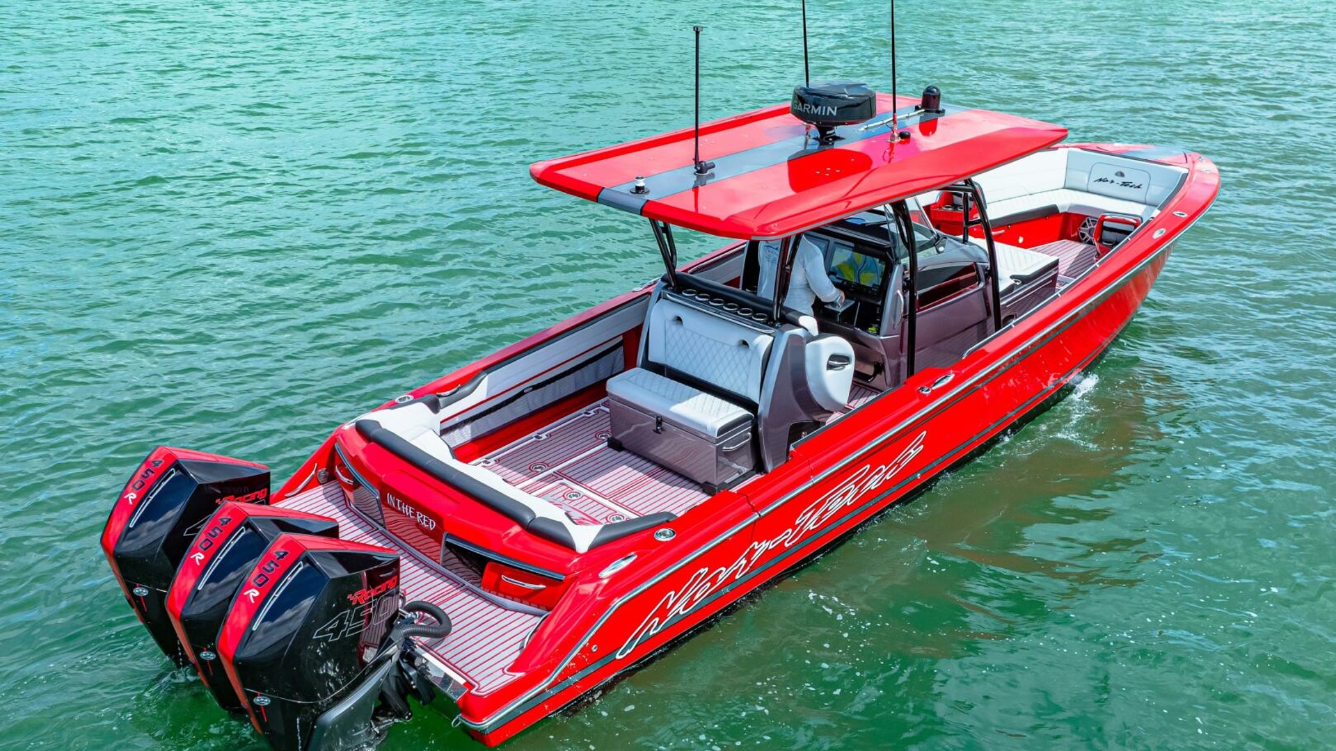 Turn heads and rule the waves with this stunning red 2022 39 Nor-Tech Sport Boat – a fusion of luxury, performance, and bold design. Powered by triple Mercury Racing outboards, this high-performance center console delivers exhilarating speed and precision handling, whether you're cruising the coast or chasing the horizon.