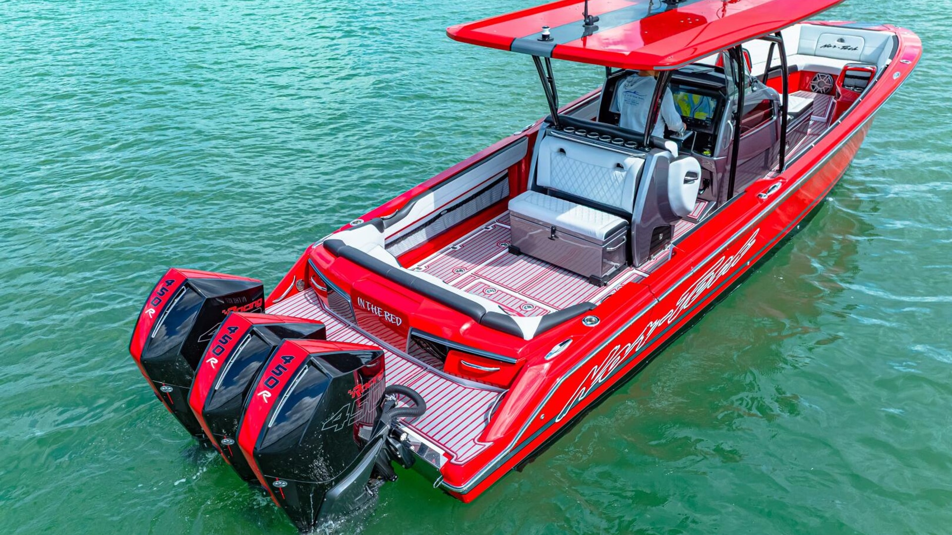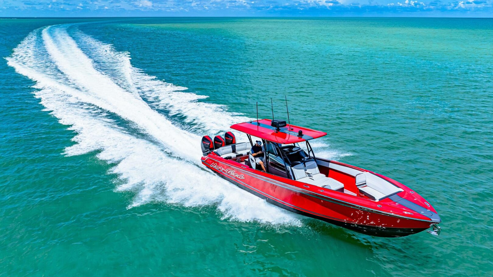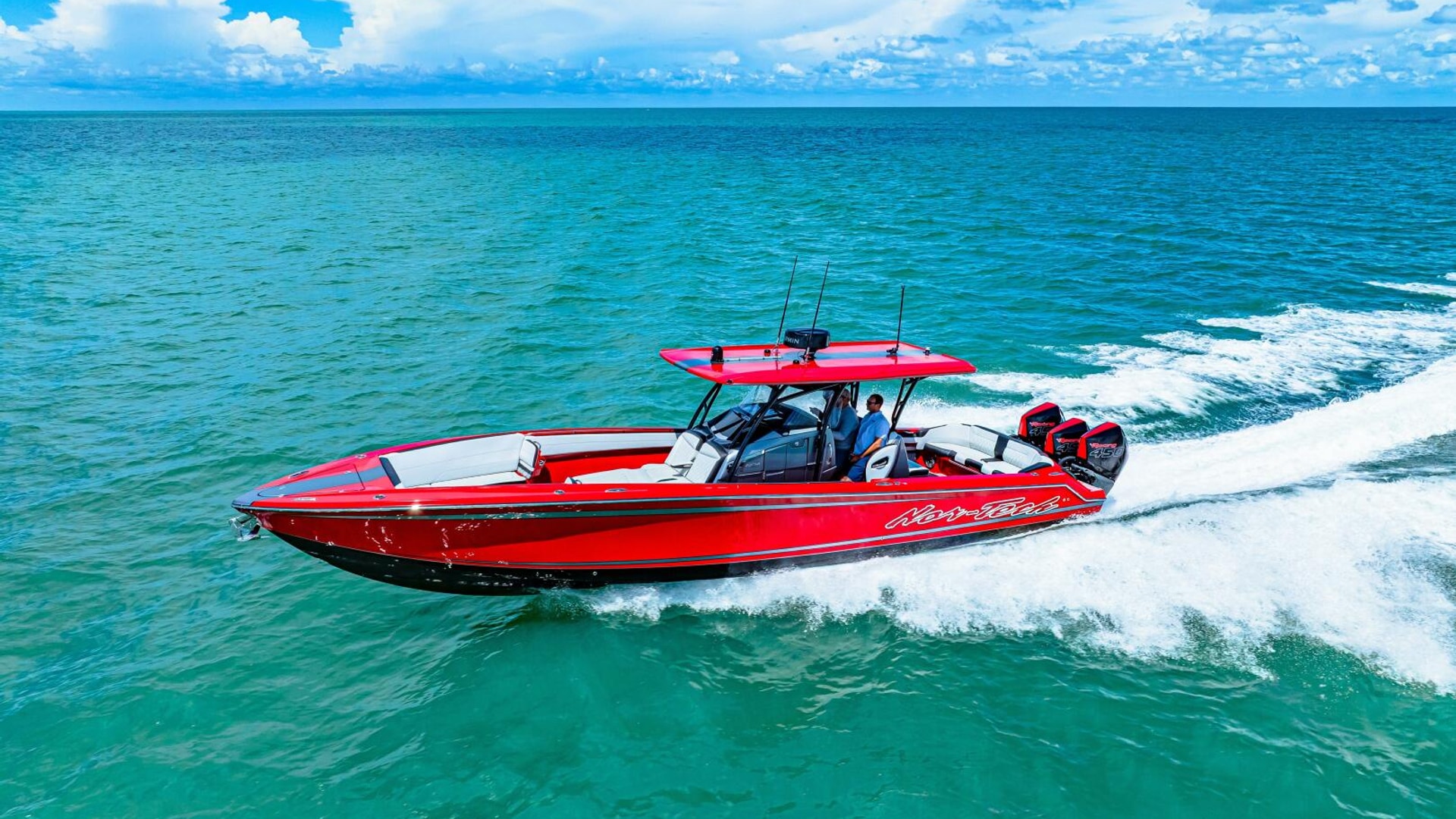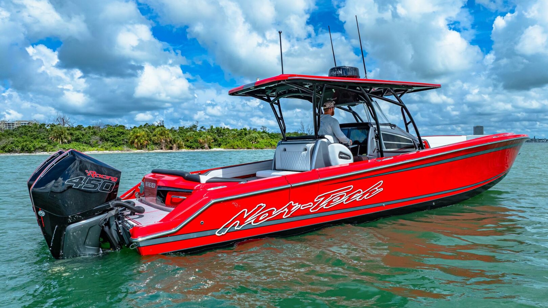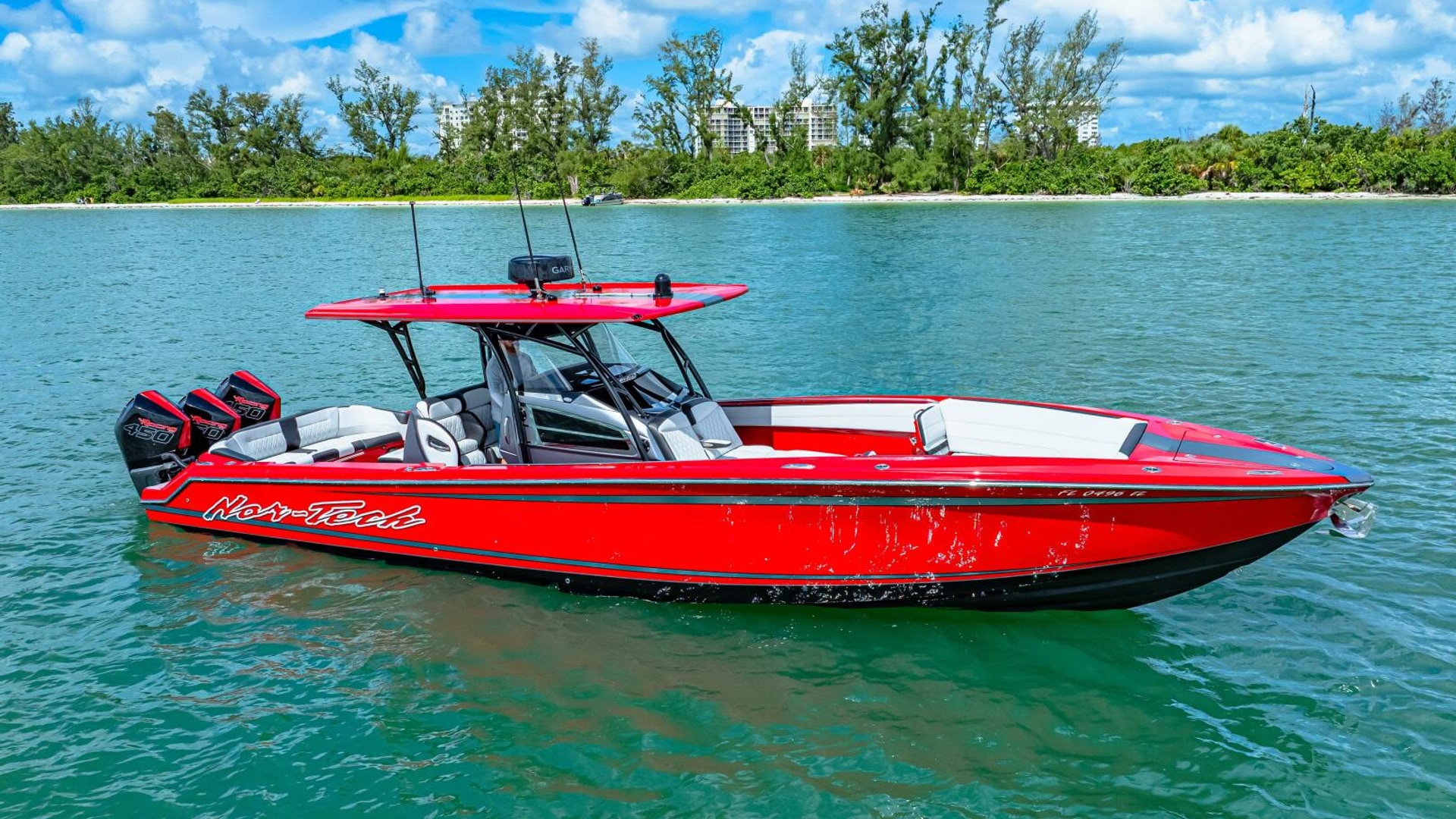 Turn heads and rule the waves with this stunning red 2022 39 Nor-Tech Sport Boat – a fusion of luxury, performance, and bold design. Powered by triple Mercury Racing outboards, this high-performance center console delivers exhilarating speed and precision handling, whether you're cruising the coast or chasing the horizon.