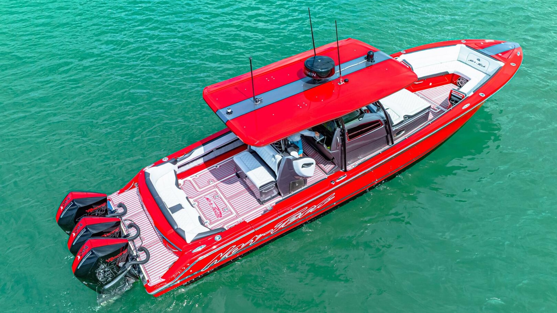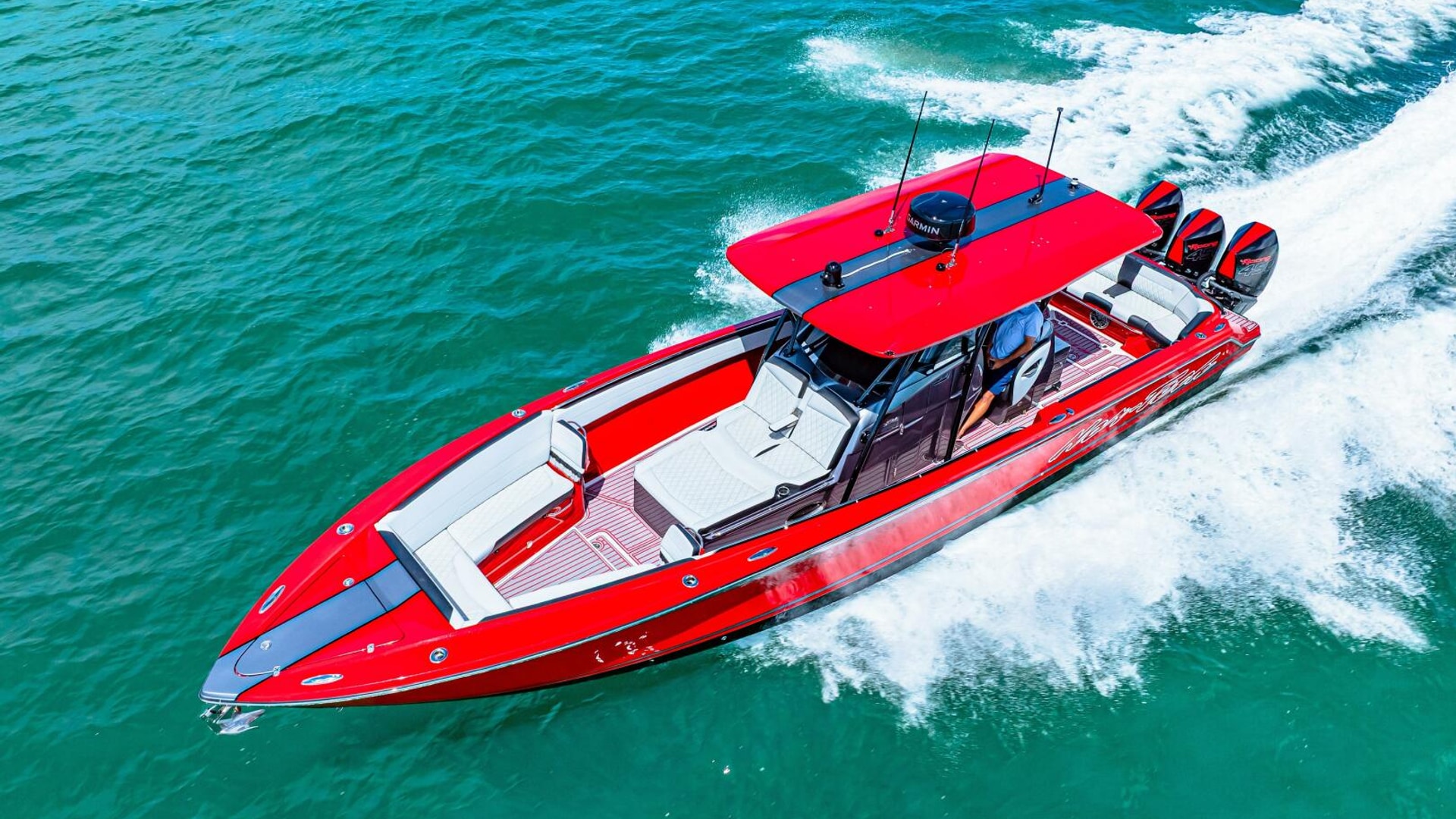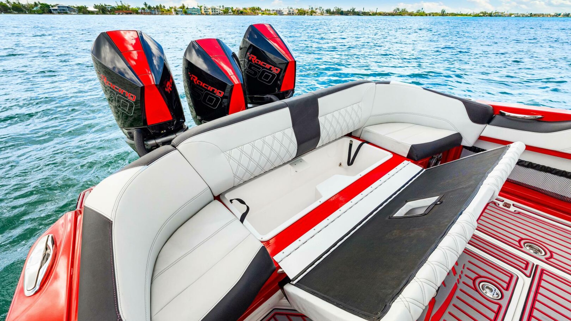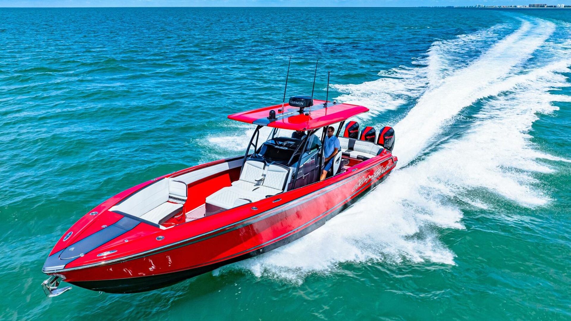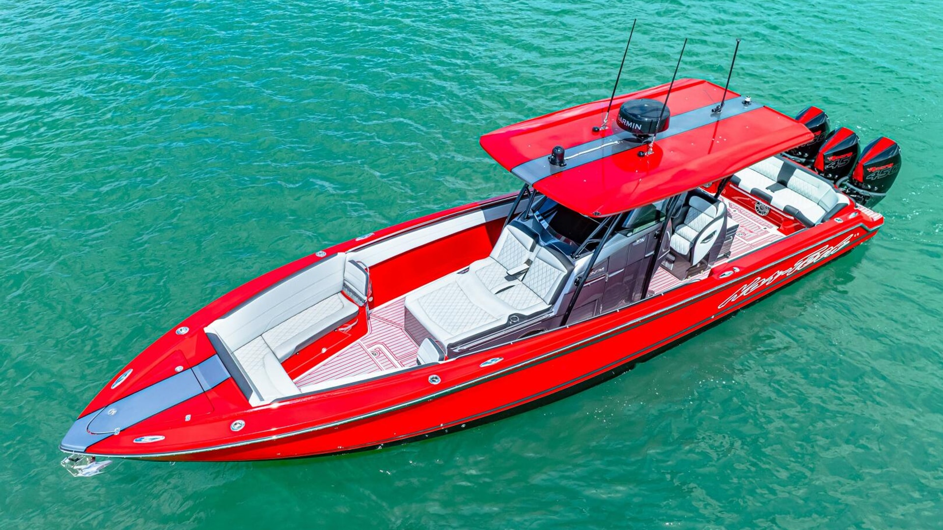 Turn heads and rule the waves with this stunning red 2022 39 Nor-Tech Sport Boat – a fusion of luxury, performance, and bold design. Powered by triple Mercury Racing outboards, this high-performance center console delivers exhilarating speed and precision handling, whether you're cruising the coast or chasing the horizon.