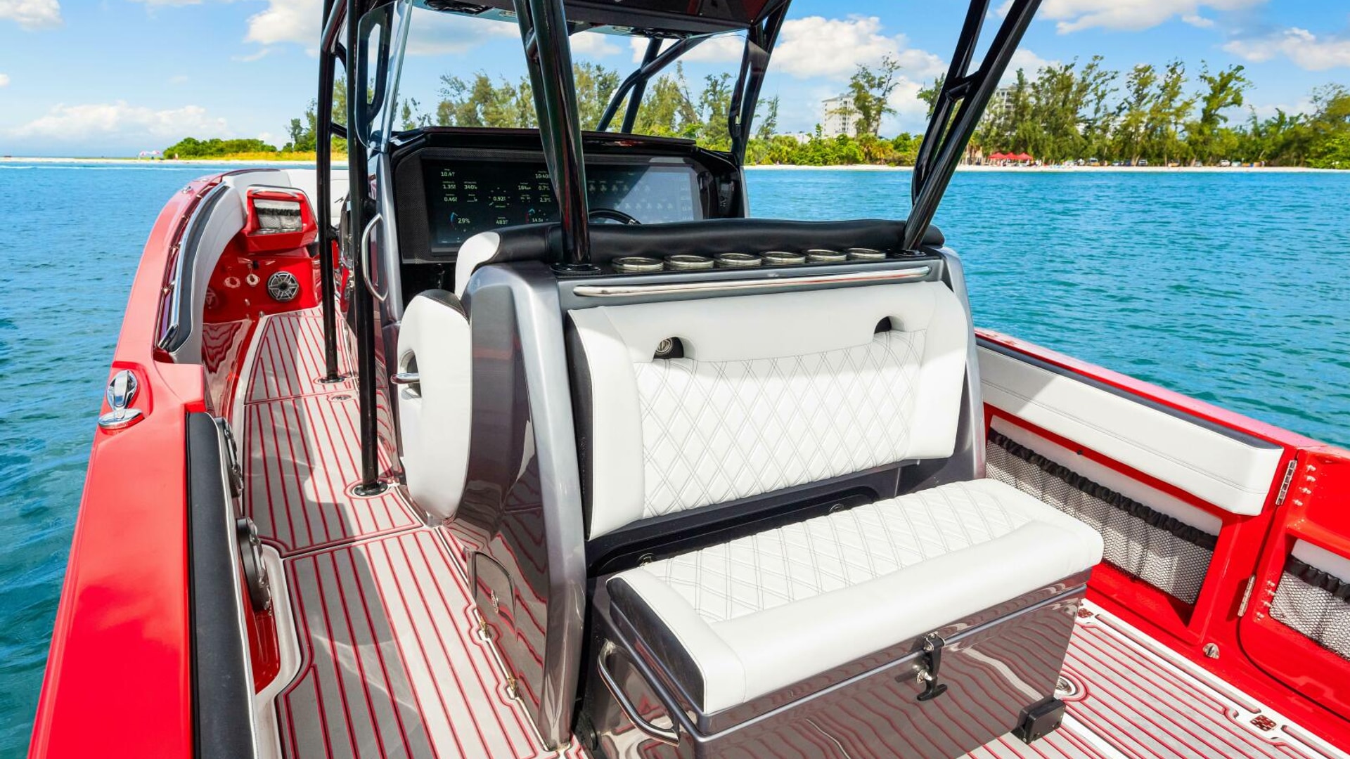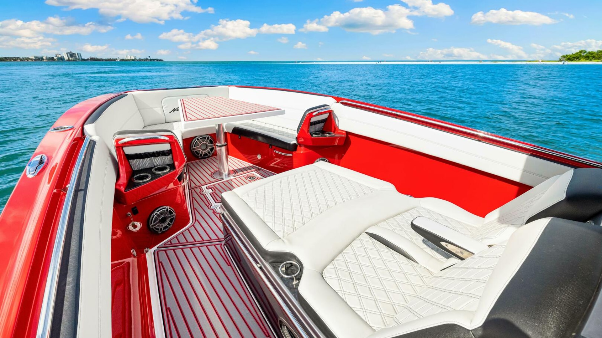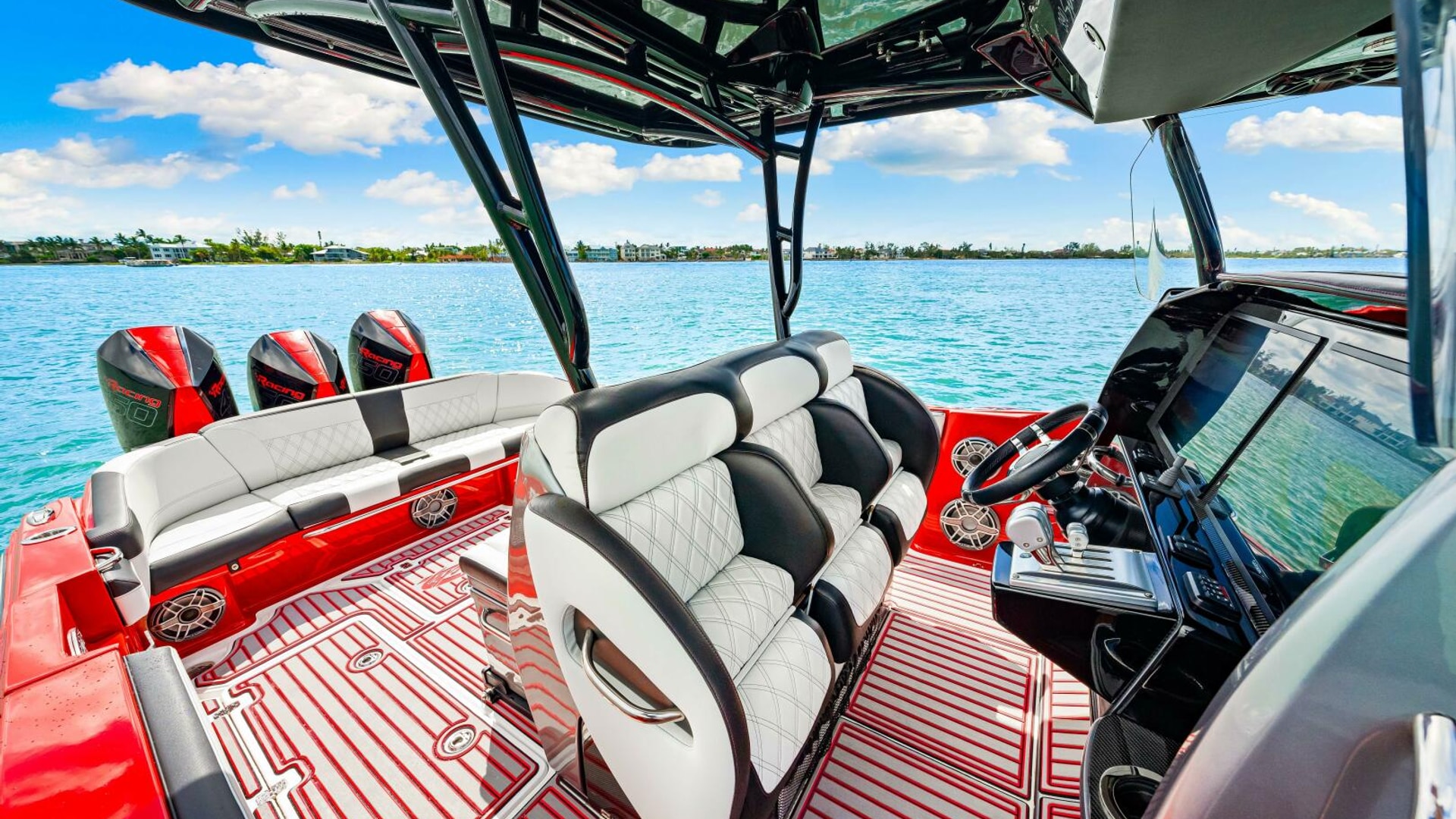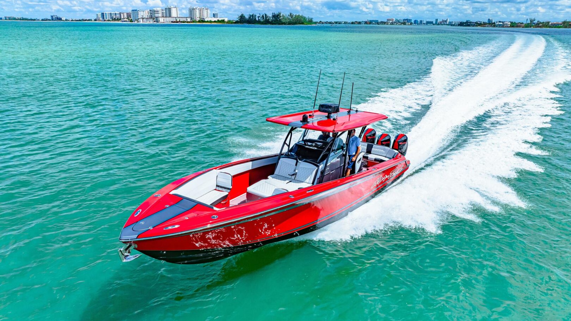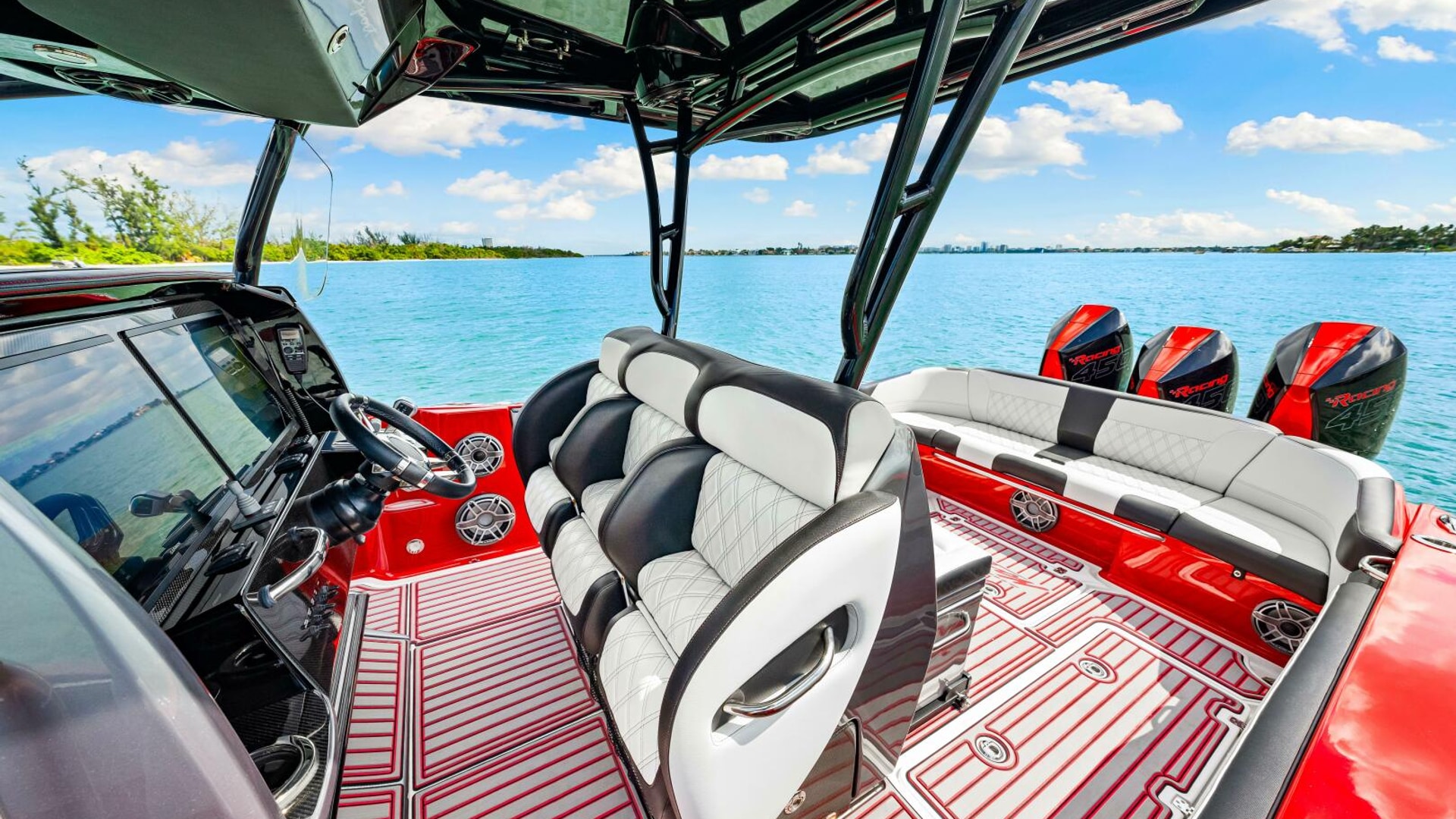 Turn heads and rule the waves with this stunning red 2022 39 Nor-Tech Sport Boat – a fusion of luxury, performance, and bold design. Powered by triple Mercury Racing outboards, this high-performance center console delivers exhilarating speed and precision handling, whether you're cruising the coast or chasing the horizon.