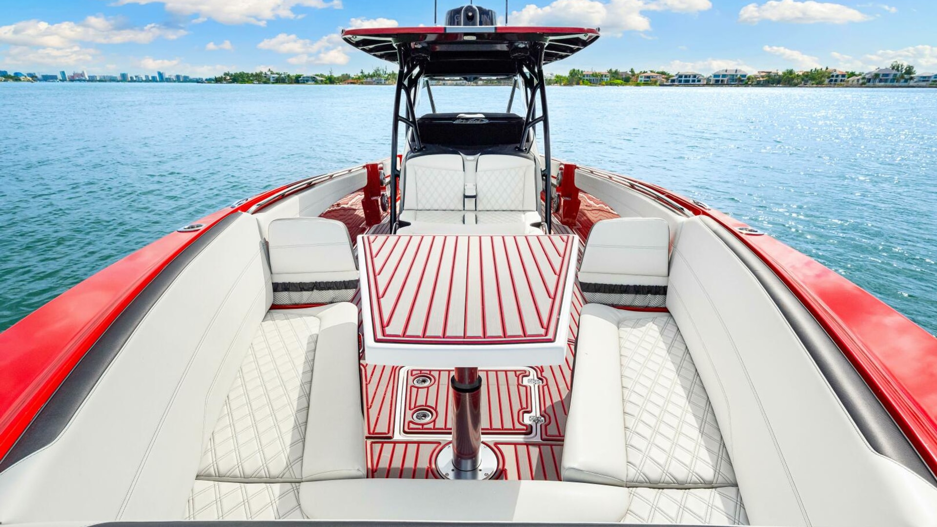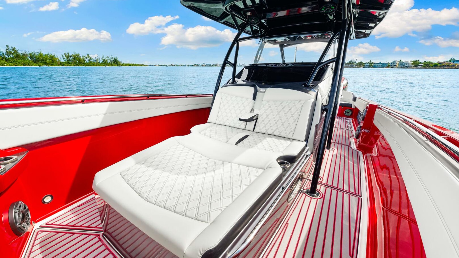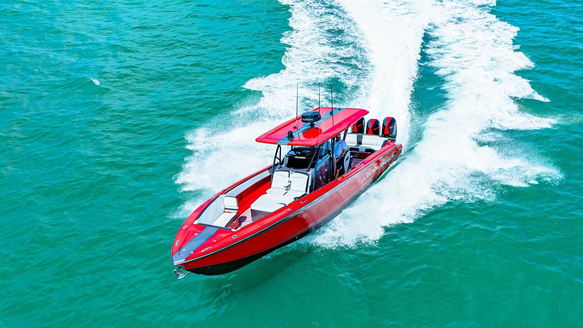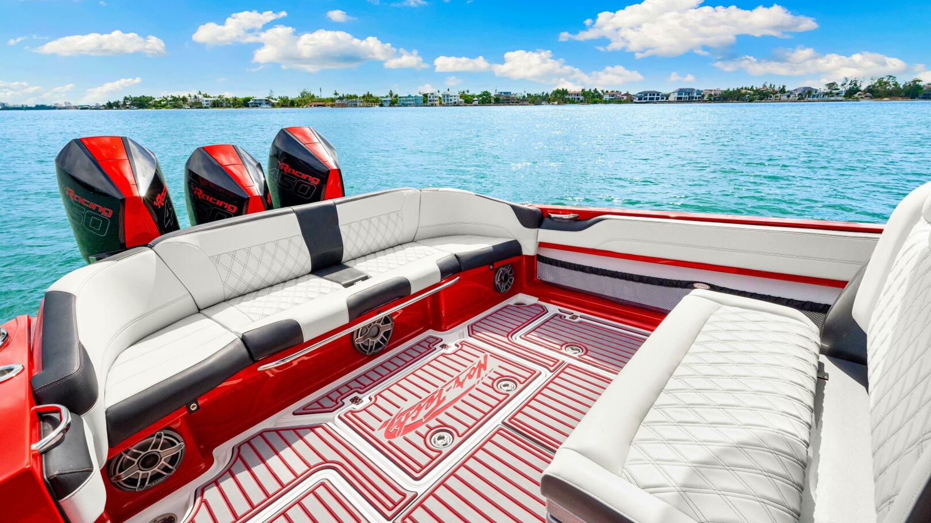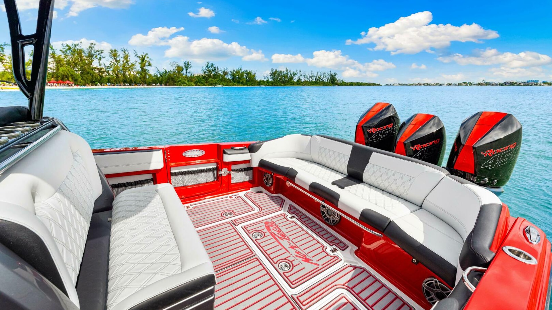 Turn heads and rule the waves with this stunning red 2022 39 Nor-Tech Sport Boat – a fusion of luxury, performance, and bold design. Powered by triple Mercury Racing outboards, this high-performance center console delivers exhilarating speed and precision handling, whether you're cruising the coast or chasing the horizon.