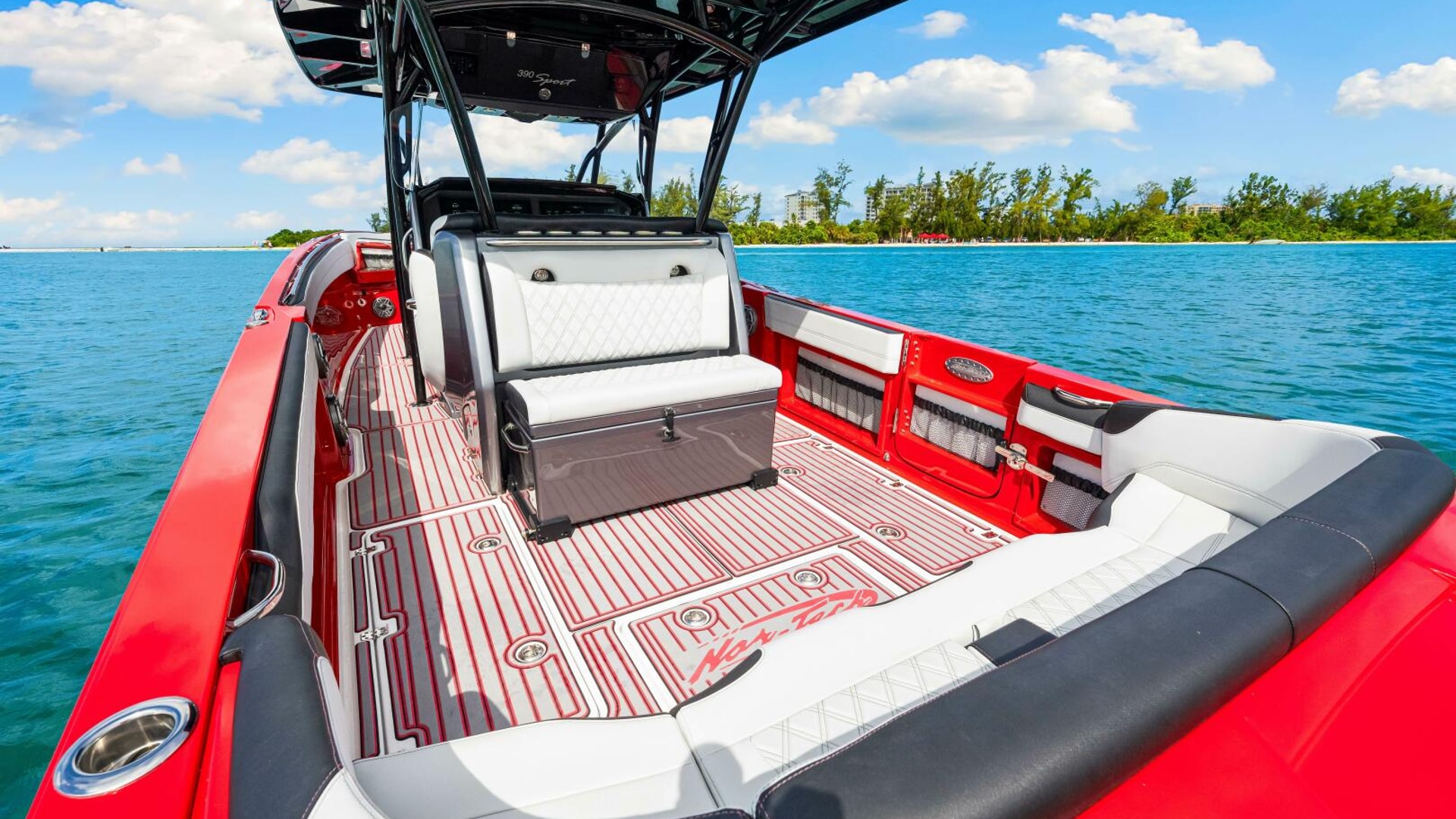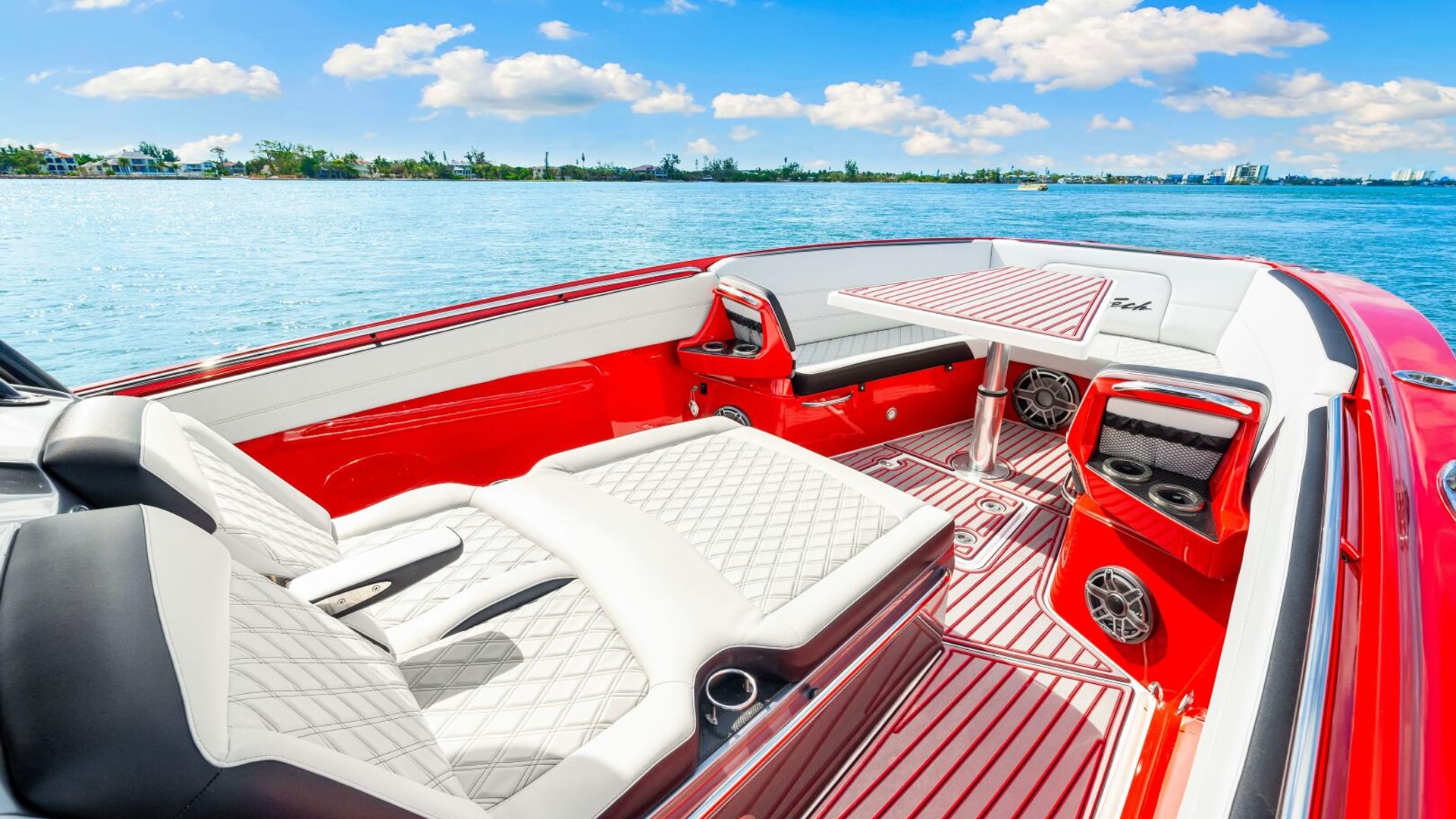 - Spacious Layout with bow lounge seating, aft club sport configuration, and second-row helm seats