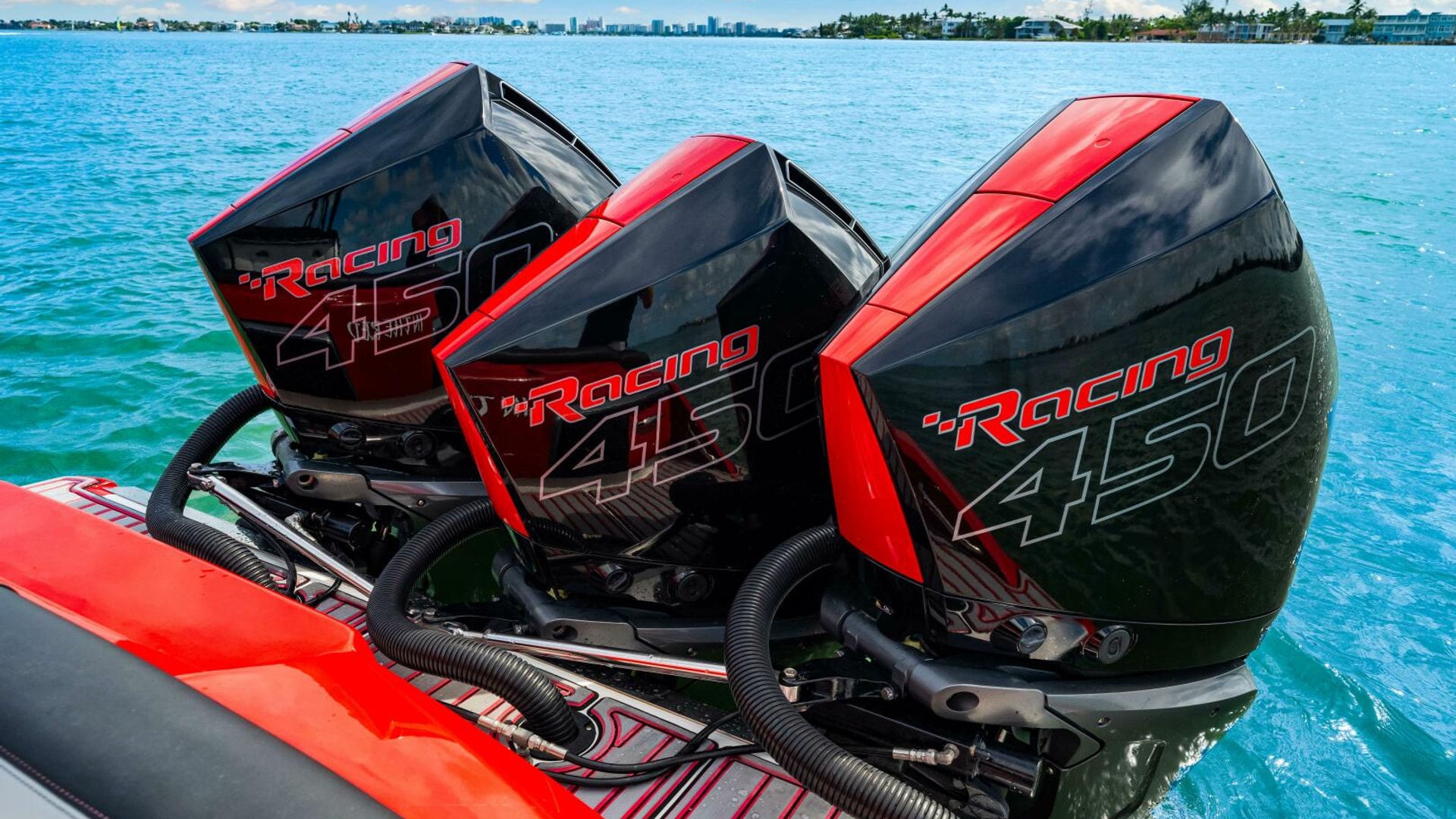 - Triple Mercury Racing 450 Motors. Under 200 hours
