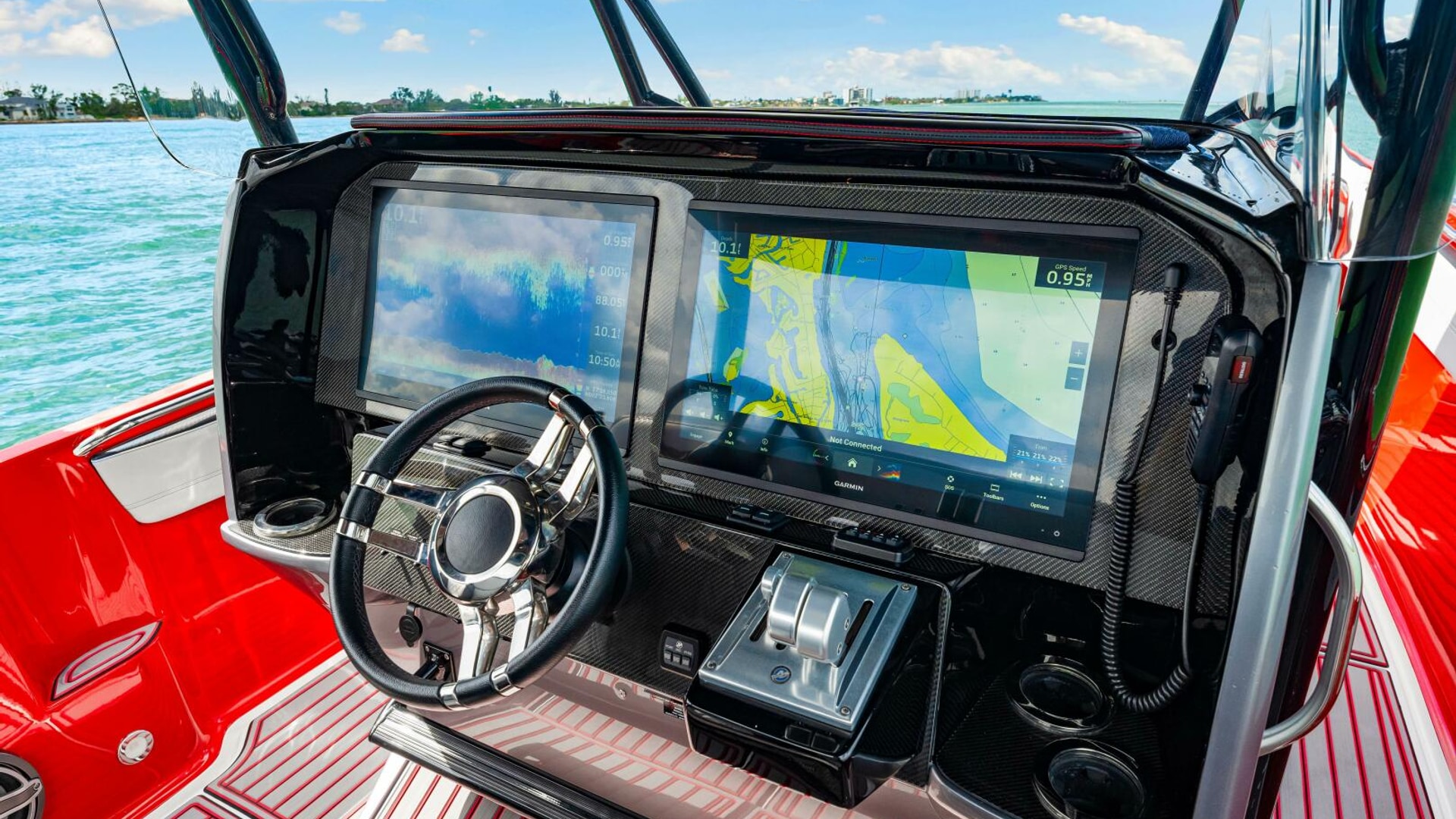 - Advanced Helm Station with dual Garmin displays and JL Audio system