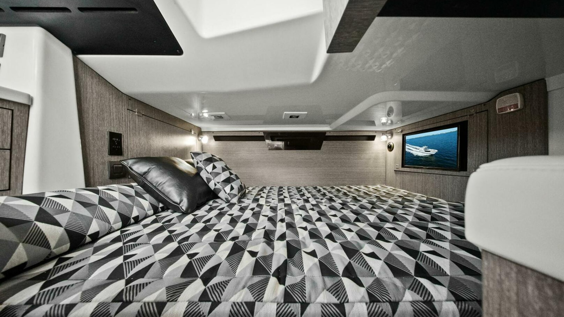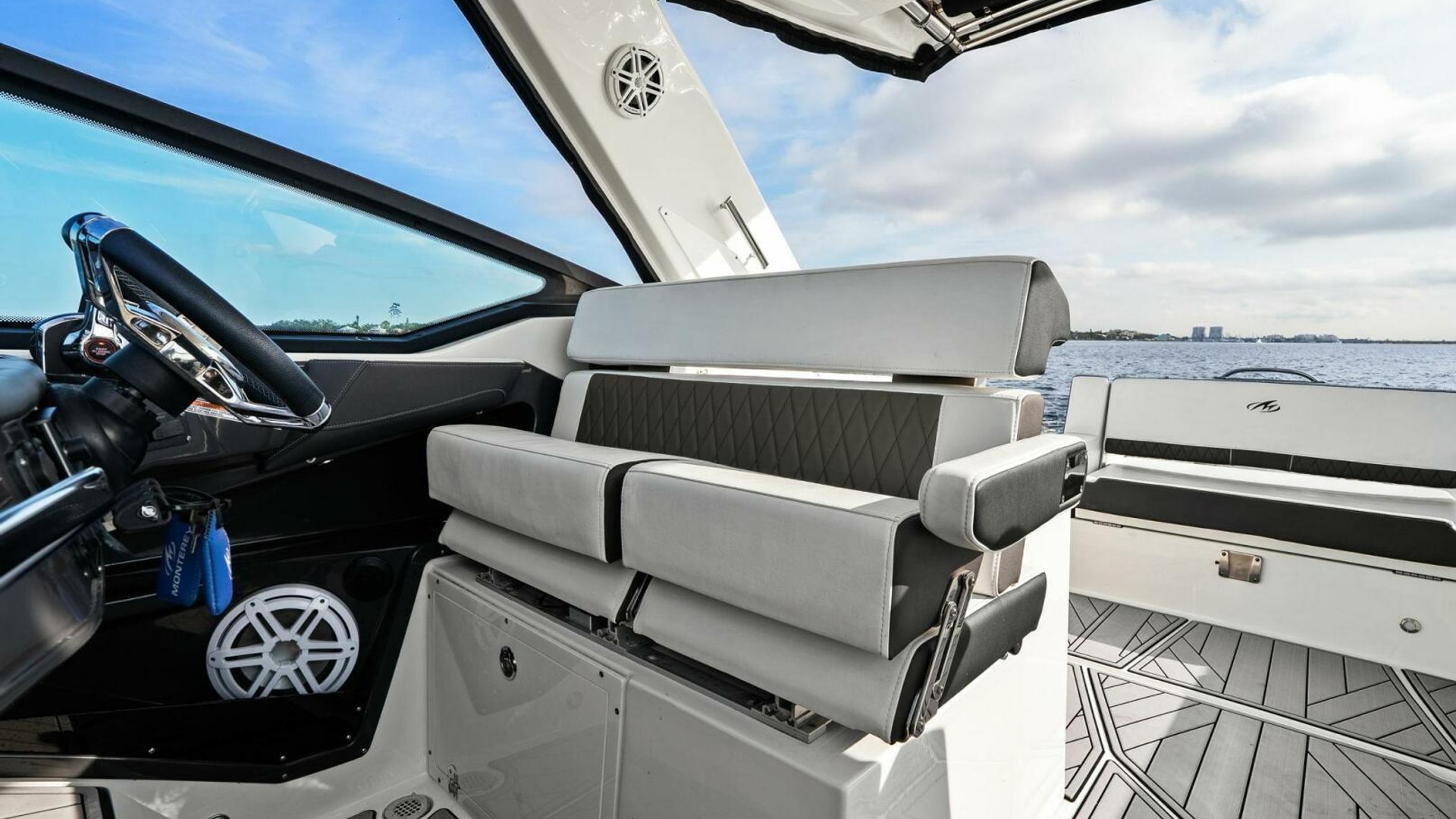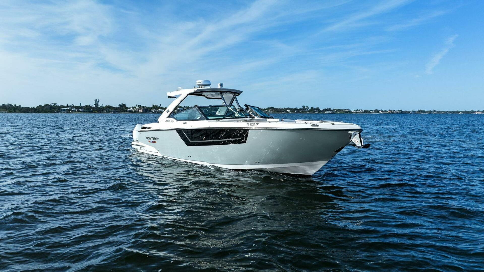 Monterey incorporates the best features for cruising the coastline with all the comforts for a day trip or overnight stay with this model. It has the size and range to make a Florida Keys excursion from Tampa Bay or a Bahamas crossing. Skyhook and Joystick control helps an owner look like a pro while waiting for bridges to open or coming into the dock with a steady breeze. The Cabin is comfortable and the Head is roomy. I was impressed with the creature comforts and performance and look forward to the final sea trial!