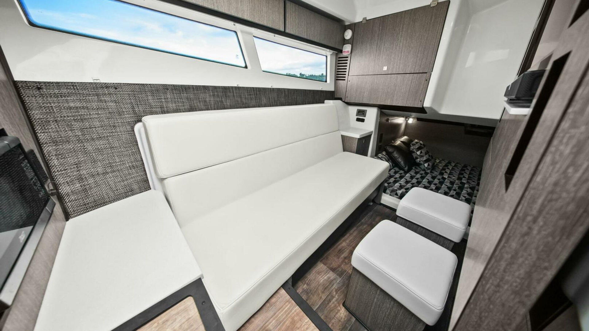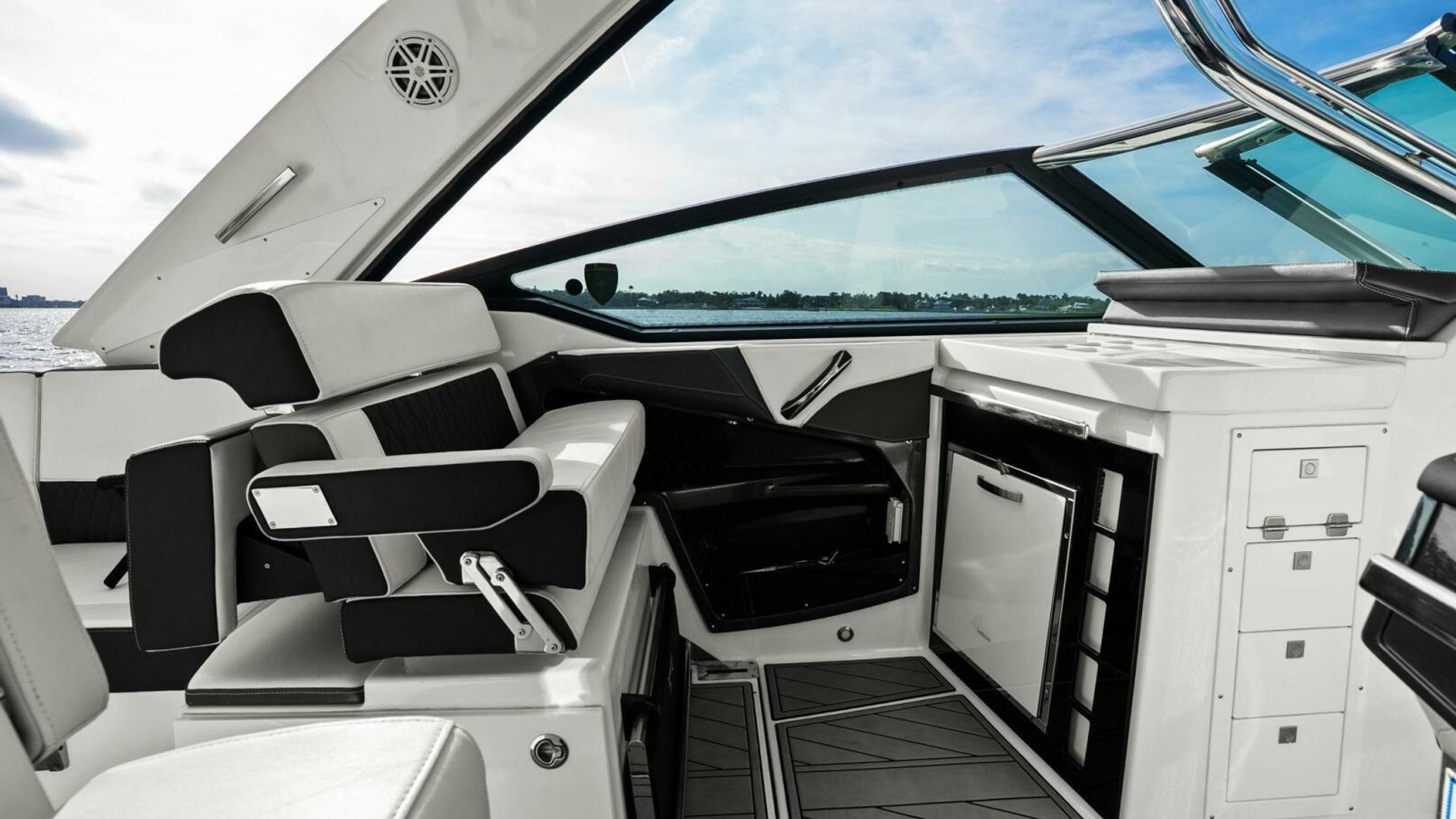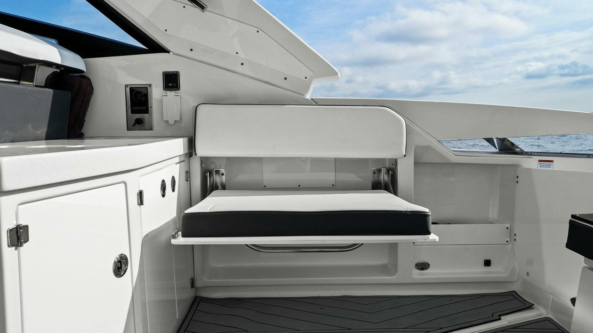 Monterey incorporates the best features for cruising the coastline with all the comforts for a day trip or overnight stay with this model. It has the size and range to make a Florida Keys excursion from Tampa Bay or a Bahamas crossing. Skyhook and Joystick control helps an owner look like a pro while waiting for bridges to open or coming into the dock with a steady breeze. The Cabin is comfortable and the Head is roomy. I was impressed with the creature comforts and performance and look forward to the final sea trial!