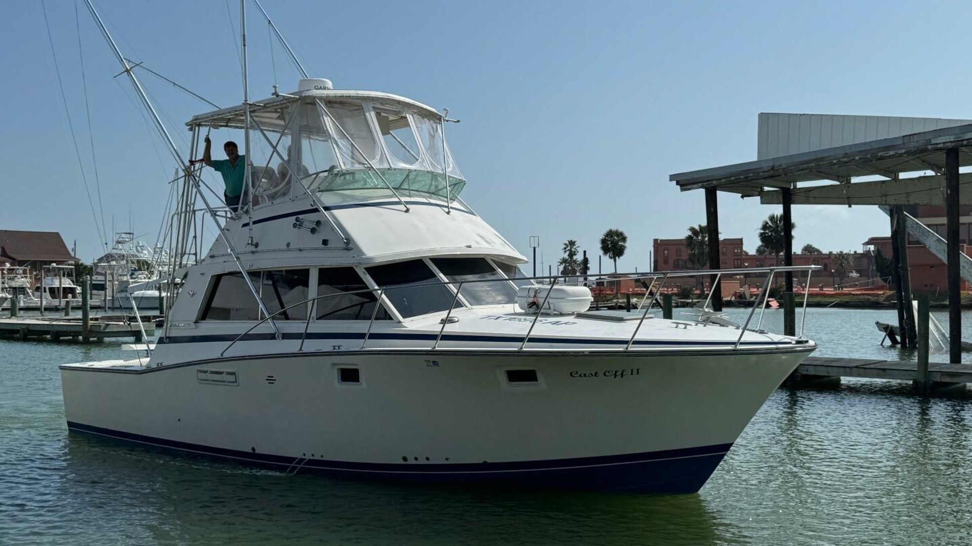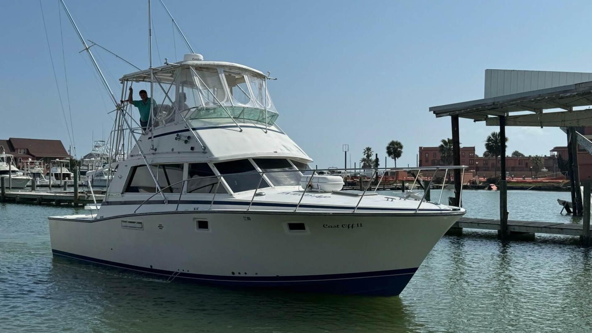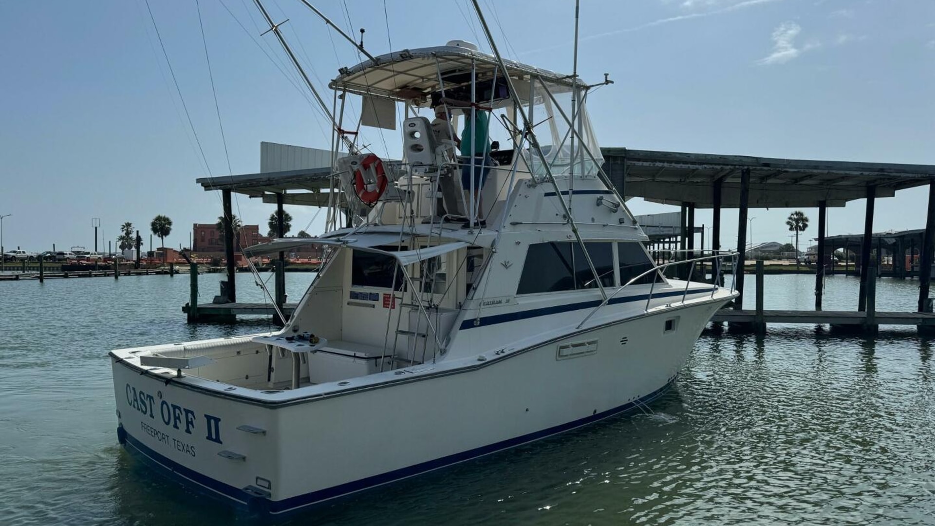 This proven charter boat is a reliable money-maker. "Cast Off II" is a classic 1983 Bertram 38, equipped with two rebuilt 450 Cummins engines from 2020. The boat features excellent electronics, a new Dometic head, and high-quality outriggers. It has recently received a new bottom job and new zincs. Fishing gear and the charter company are available separately.
