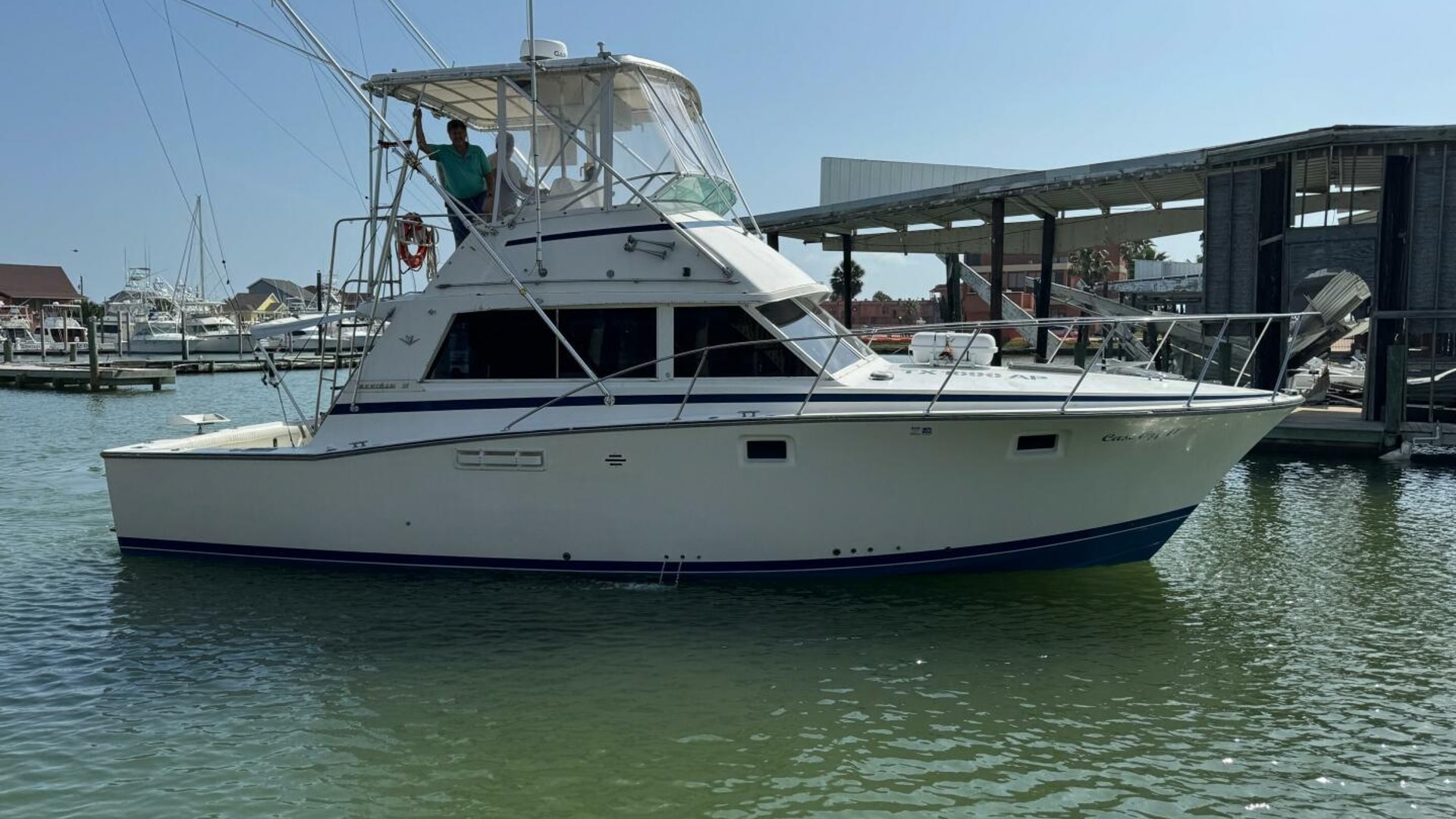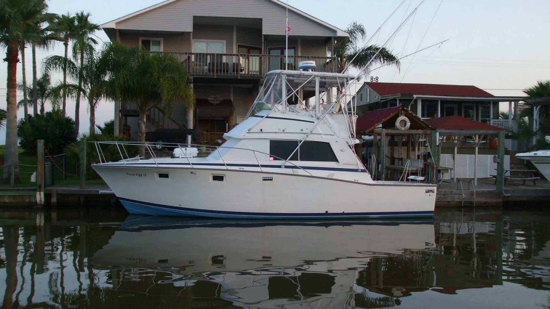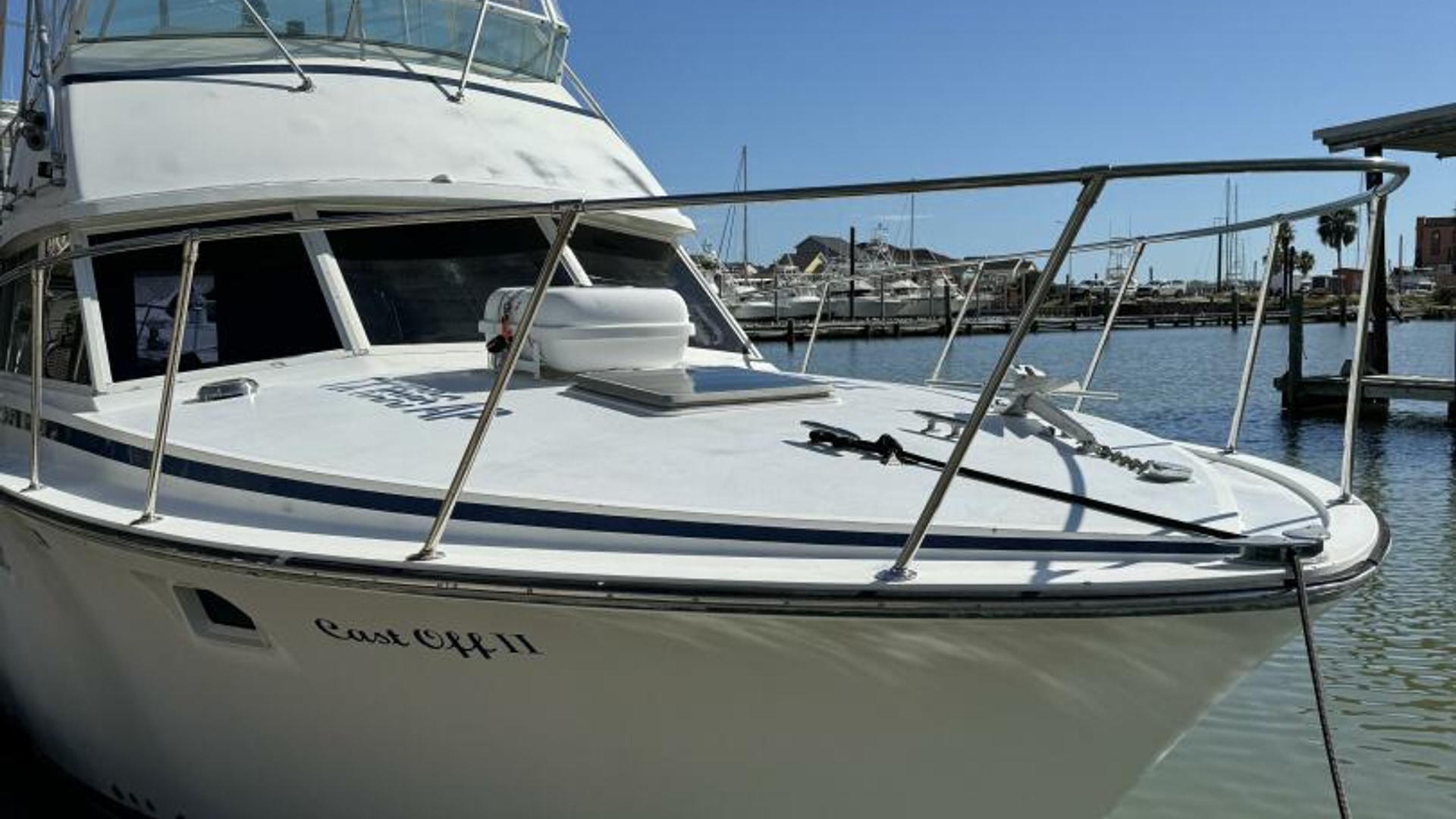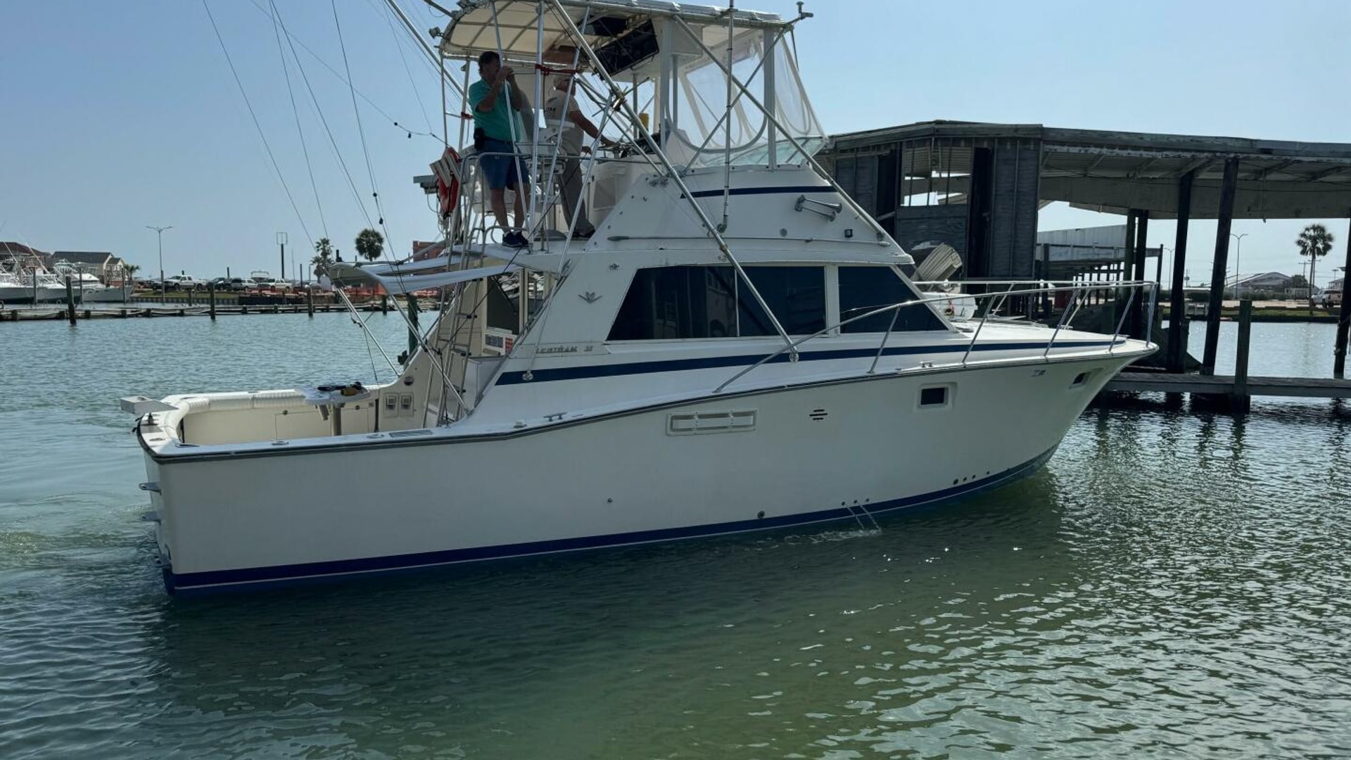 This proven charter boat is a reliable money-maker. "Cast Off II" is a classic 1983 Bertram 38, equipped with two rebuilt 450 Cummins engines from 2020. The boat features excellent electronics, a new Dometic head, and high-quality outriggers. It has recently received a new bottom job and new zincs. Fishing gear and the charter company are available separately.