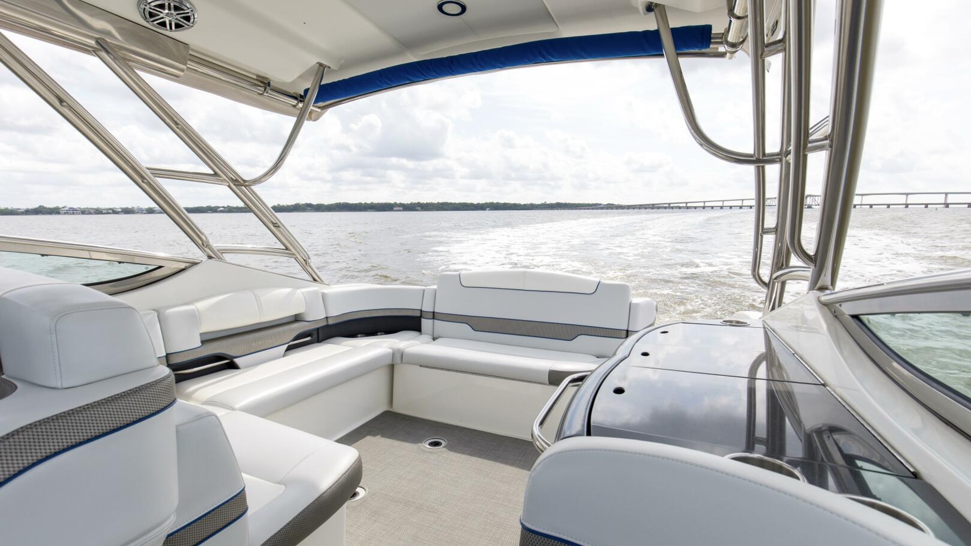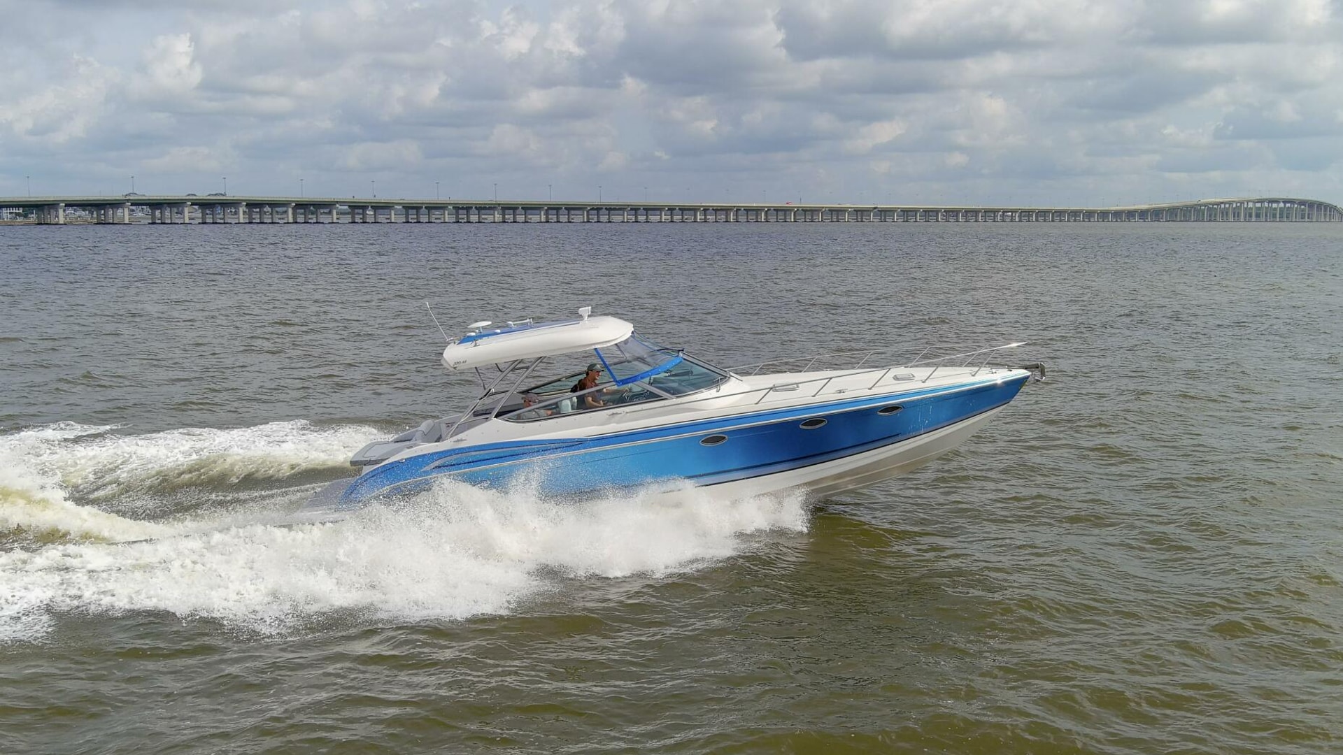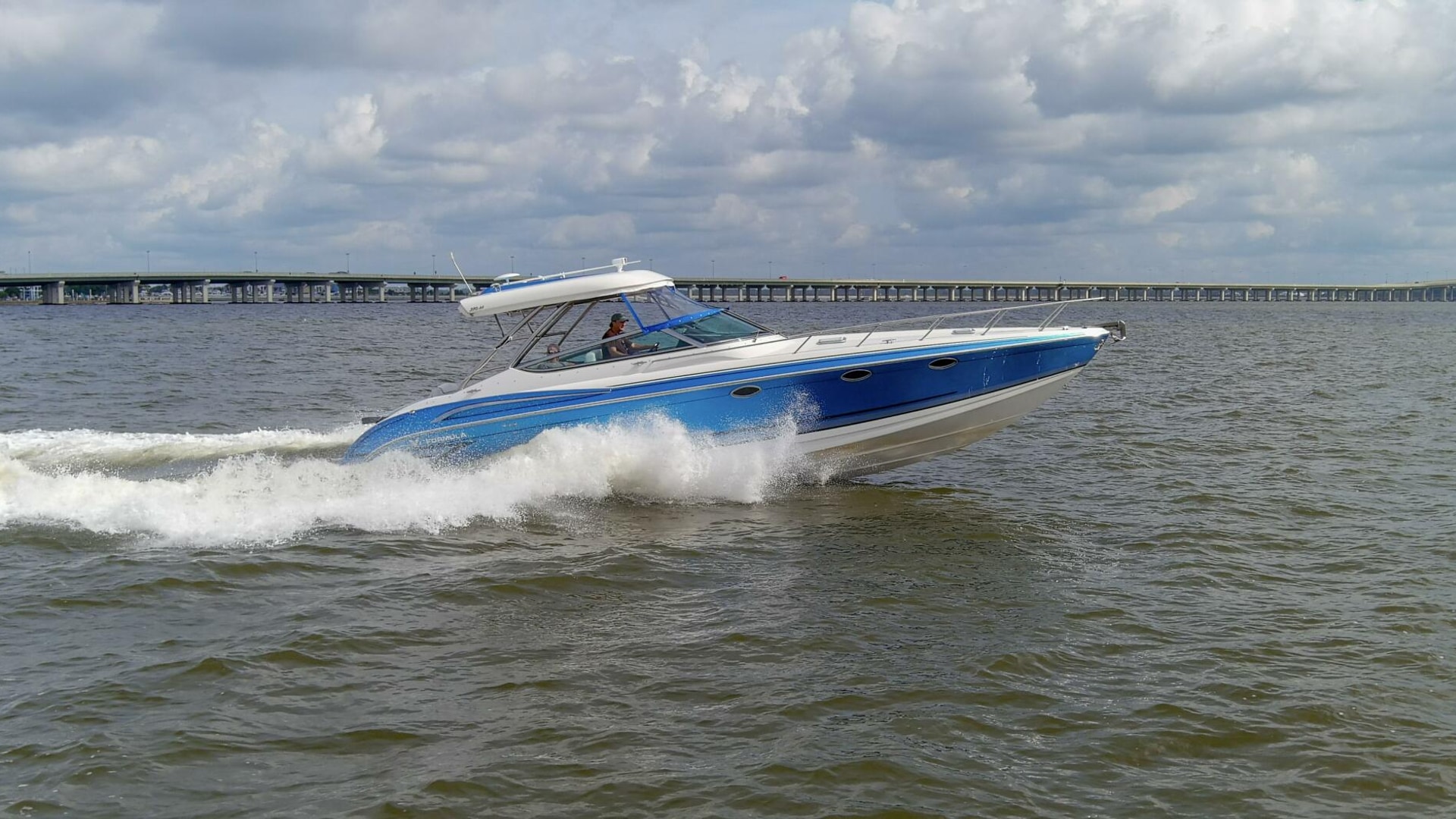 Bluebird has been a freshwater boat most of her life, and she shows. She is powered by twin low-hour Mercury Racing 520 engines. This cruiser is perfect for a fun day out on the water or an overnight with the family.