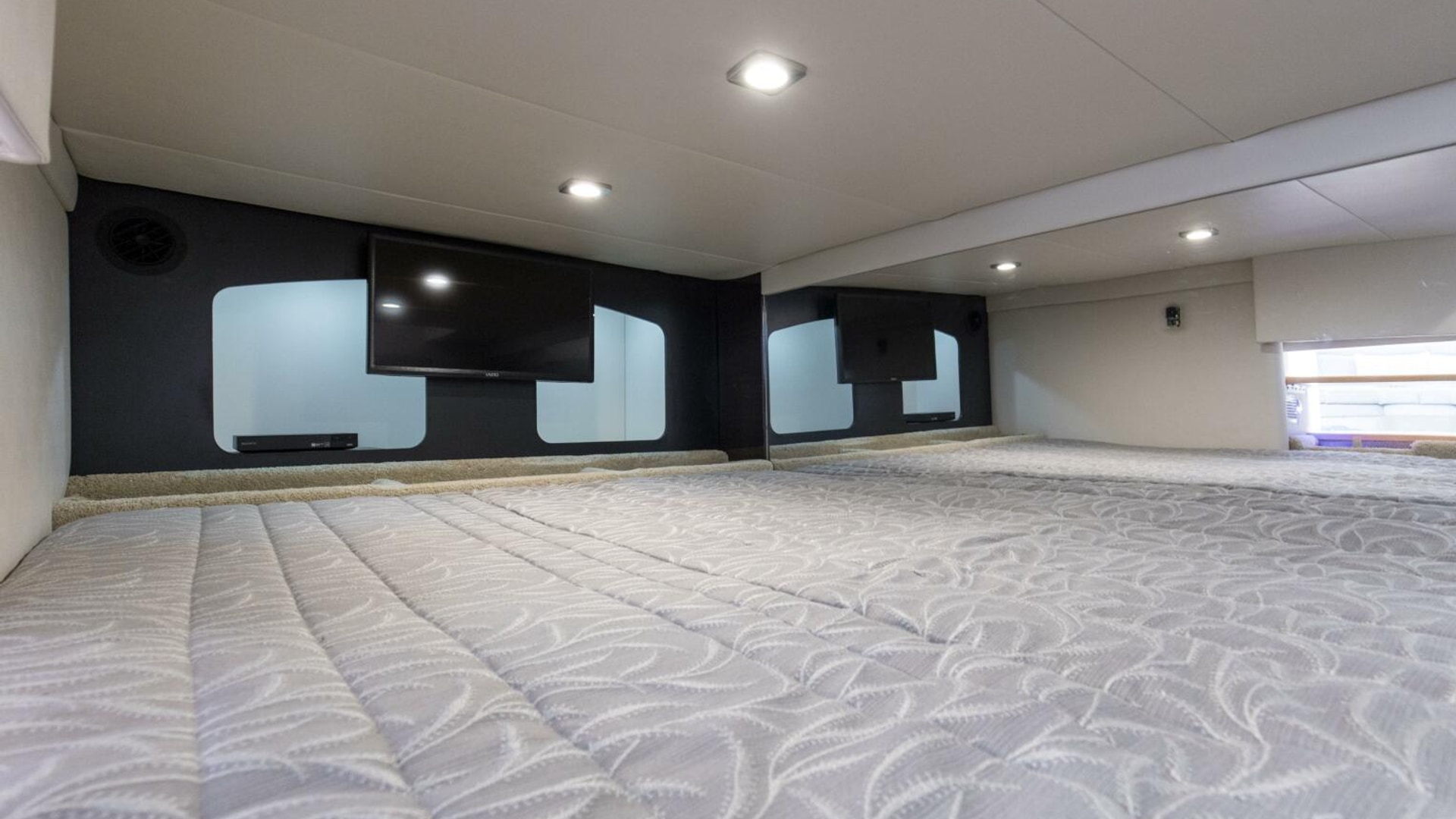 - Aft cabin stateroom/queen-size berth w/Sensus® memory foam mattress, full-width storage, cable TV receptacle, phone jack & 120V outlets