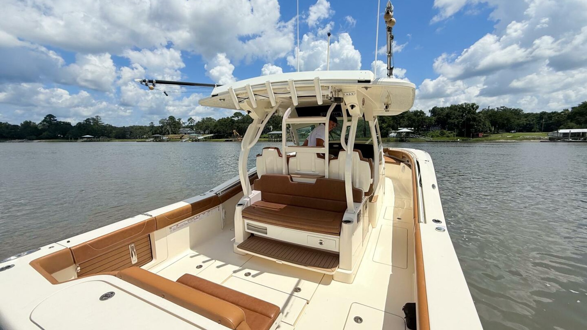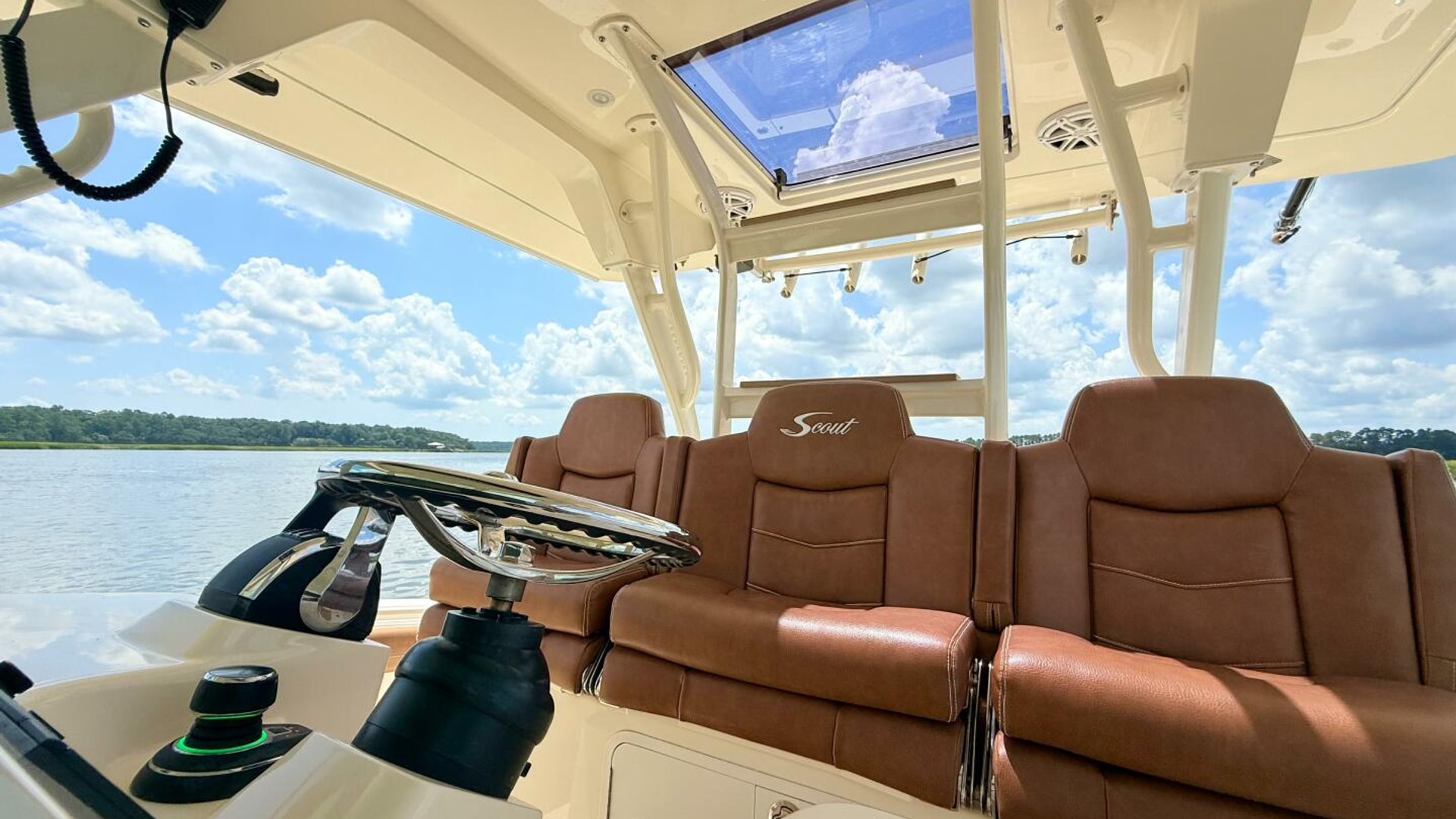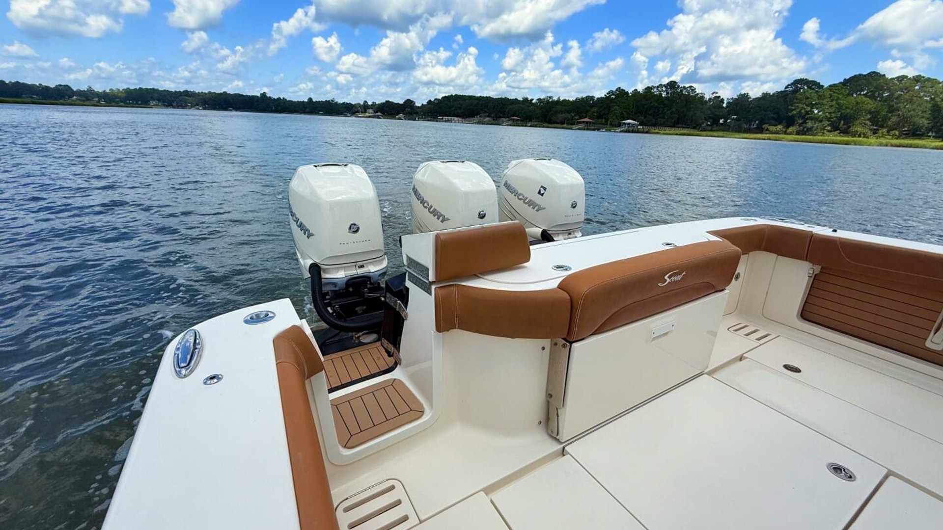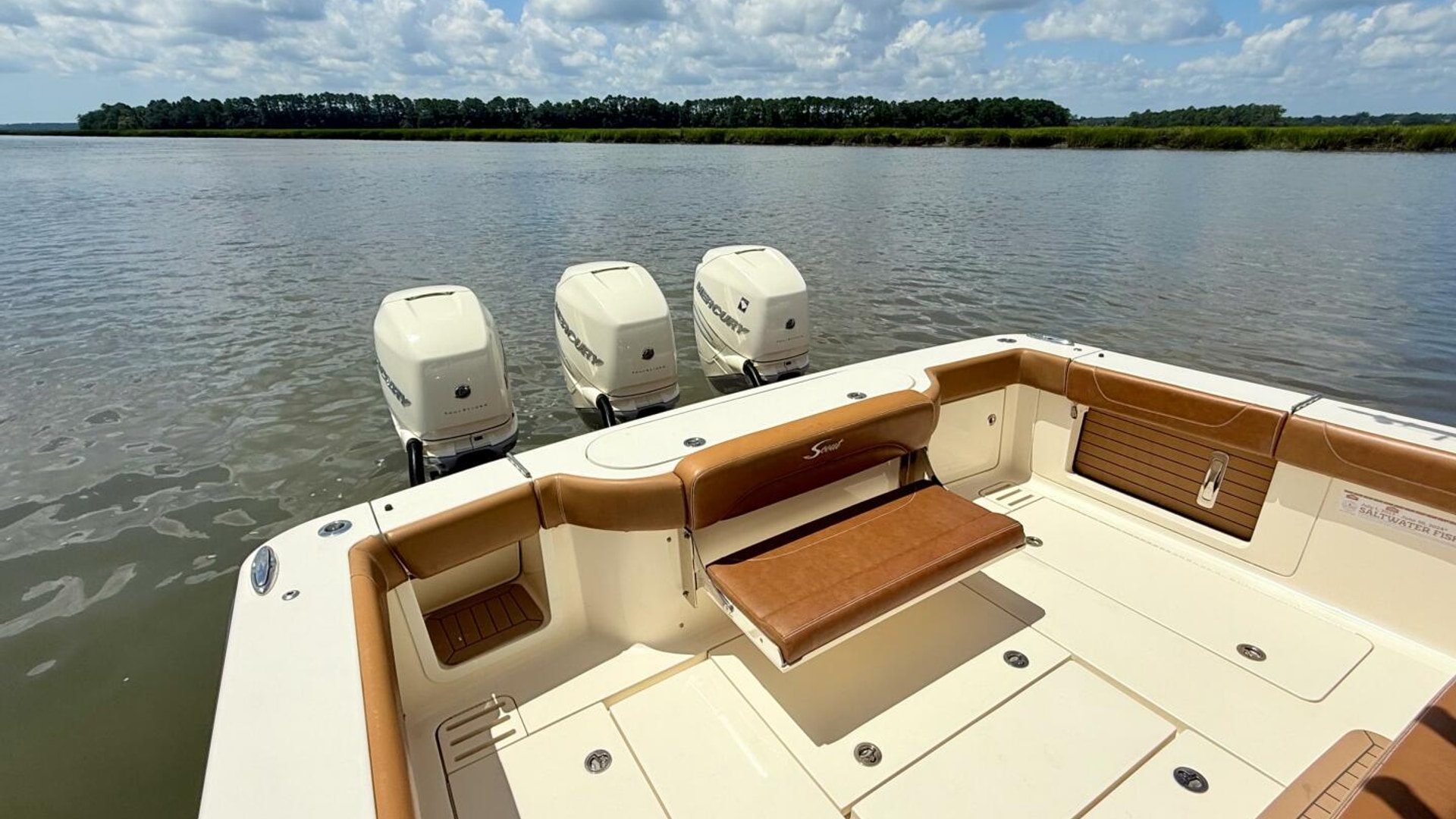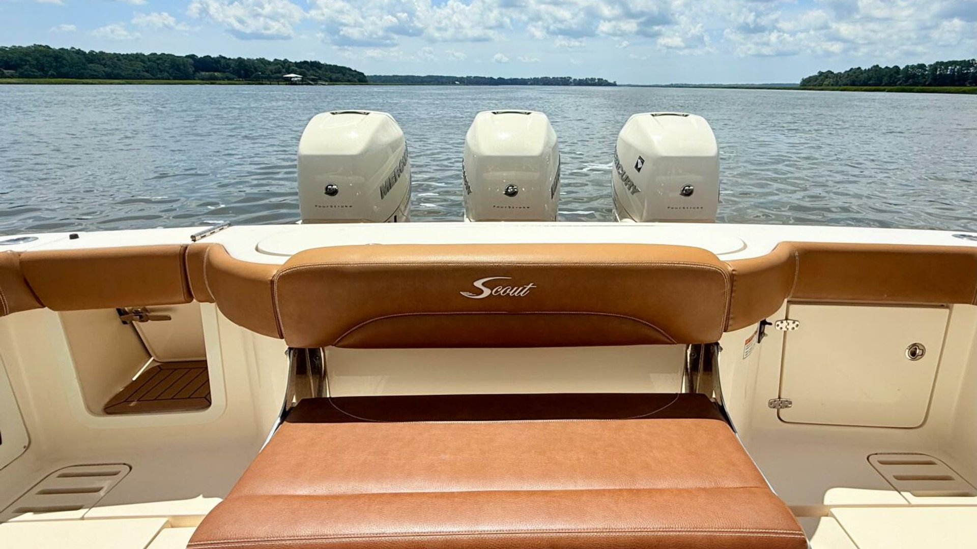 This 2020 Scout 380 LXF is a premium 38'6" center console that blends luxury, performance, and offshore capability. Built with epoxy-infused fiberglass and a double-stepped hull, it delivers excellent speed and efficiency, often powered by triple Mercury 350s for speeds over 50 mph. Key features include a spacious deck with bolstered seating, dual 92-gallon fish boxes, livewell, , and a fully equipped helm with triple Garmin displays. Below deck, the air-conditioned cabin offers a queen berth, enclosed head, galley, and 32″ TV. A Seakeeper 3 stabilizer and 404-gallon fuel capacity round out this versatile, high-end fishing and cruising machine.