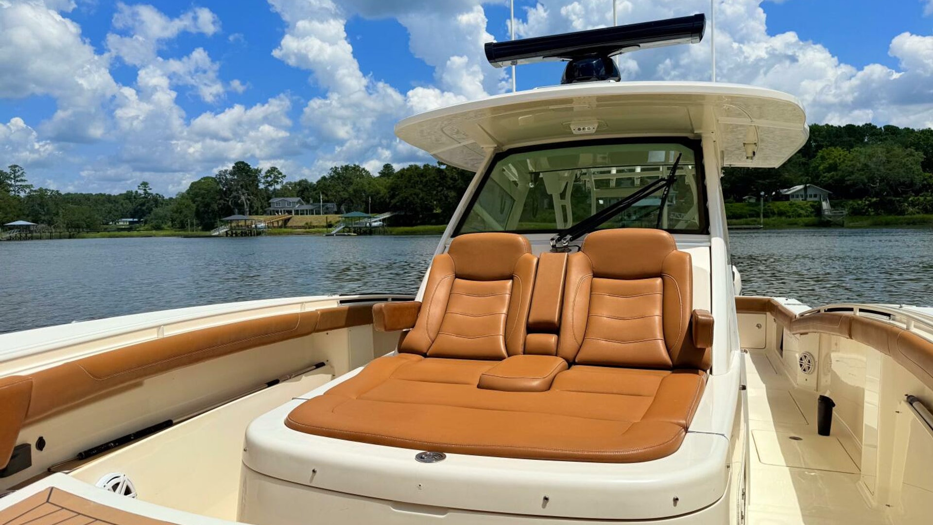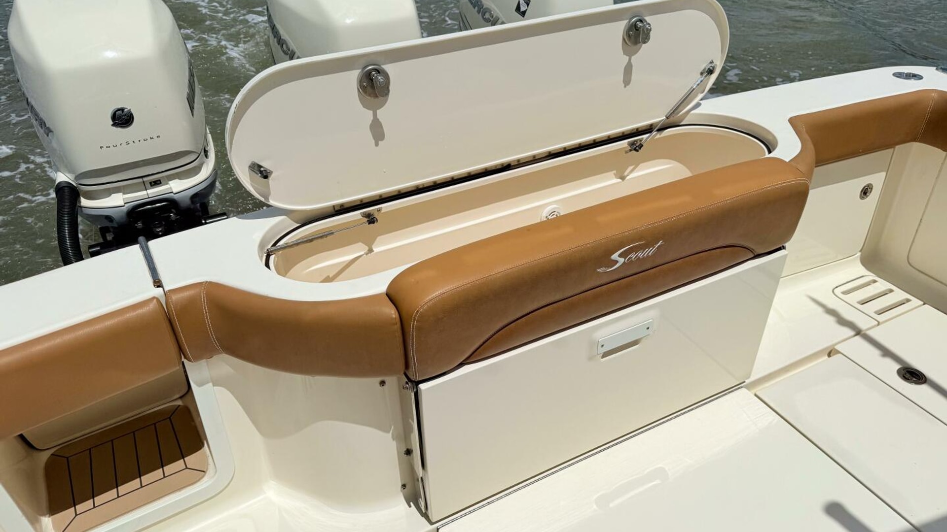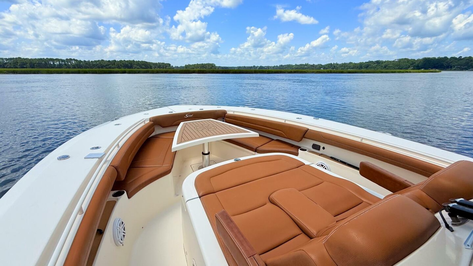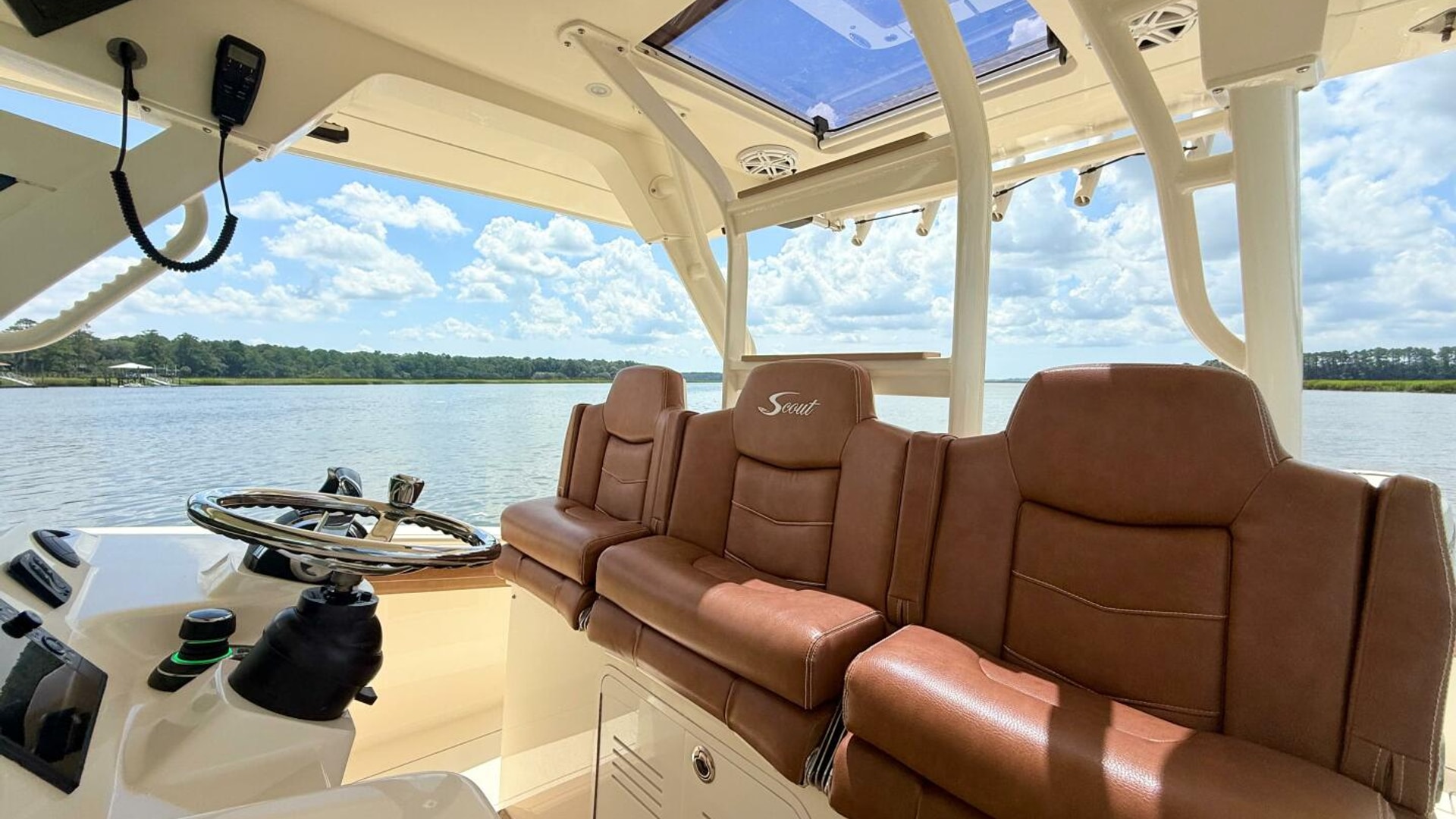 This 2020 Scout 380 LXF is a premium 38'6" center console that blends luxury, performance, and offshore capability. Built with epoxy-infused fiberglass and a double-stepped hull, it delivers excellent speed and efficiency, often powered by triple Mercury 350s for speeds over 50 mph. Key features include a spacious deck with bolstered seating, dual 92-gallon fish boxes, livewell, , and a fully equipped helm with triple Garmin displays. Below deck, the air-conditioned cabin offers a queen berth, enclosed head, galley, and 32″ TV. A Seakeeper 3 stabilizer and 404-gallon fuel capacity round out this versatile, high-end fishing and cruising machine.