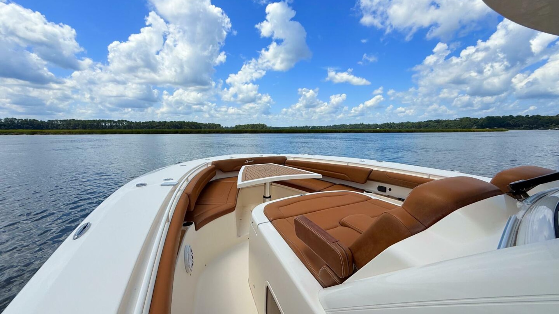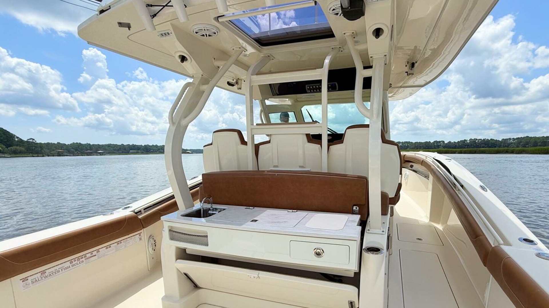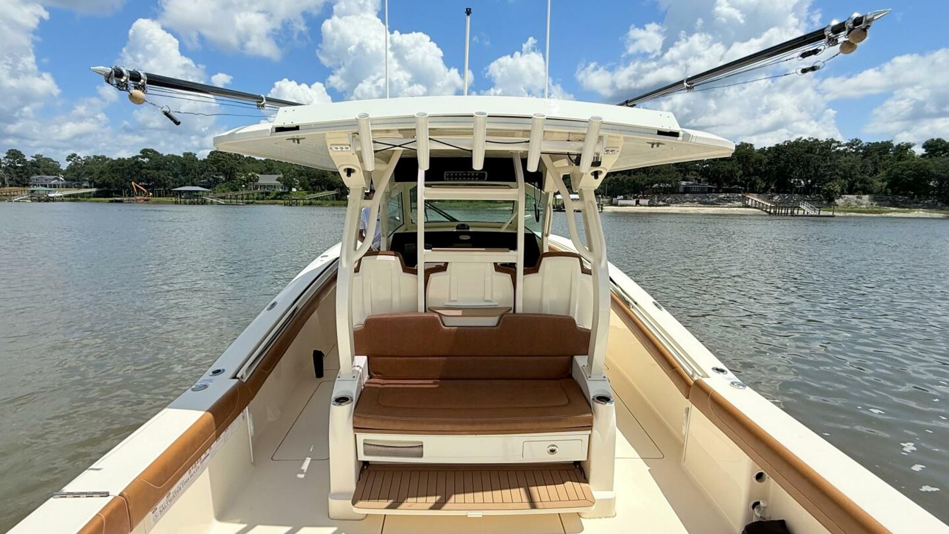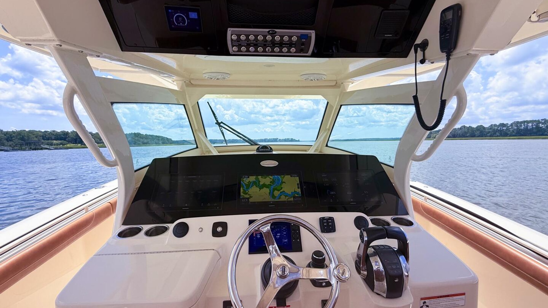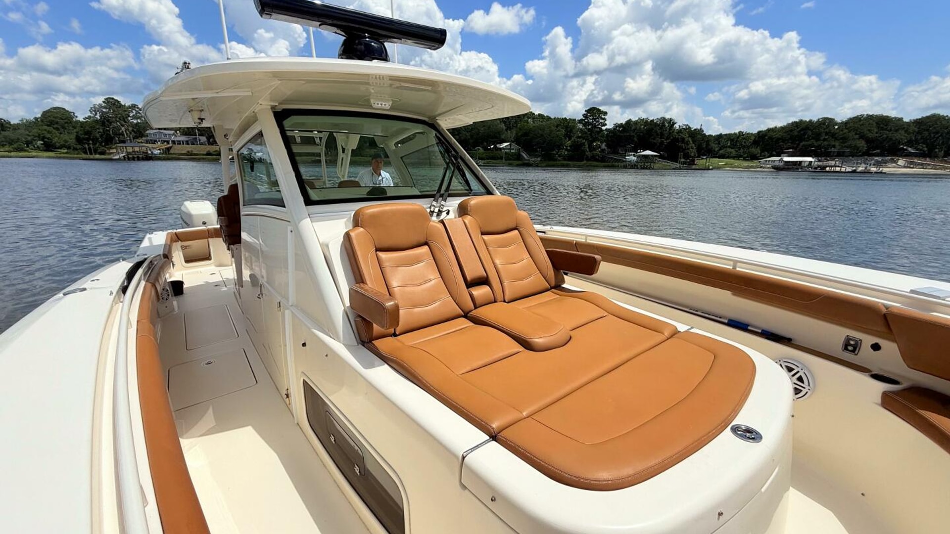 This 2020 Scout 380 LXF is a premium 38'6" center console that blends luxury, performance, and offshore capability. Built with epoxy-infused fiberglass and a double-stepped hull, it delivers excellent speed and efficiency, often powered by triple Mercury 350s for speeds over 50 mph. Key features include a spacious deck with bolstered seating, dual 92-gallon fish boxes, livewell, , and a fully equipped helm with triple Garmin displays. Below deck, the air-conditioned cabin offers a queen berth, enclosed head, galley, and 32″ TV. A Seakeeper 3 stabilizer and 404-gallon fuel capacity round out this versatile, high-end fishing and cruising machine.