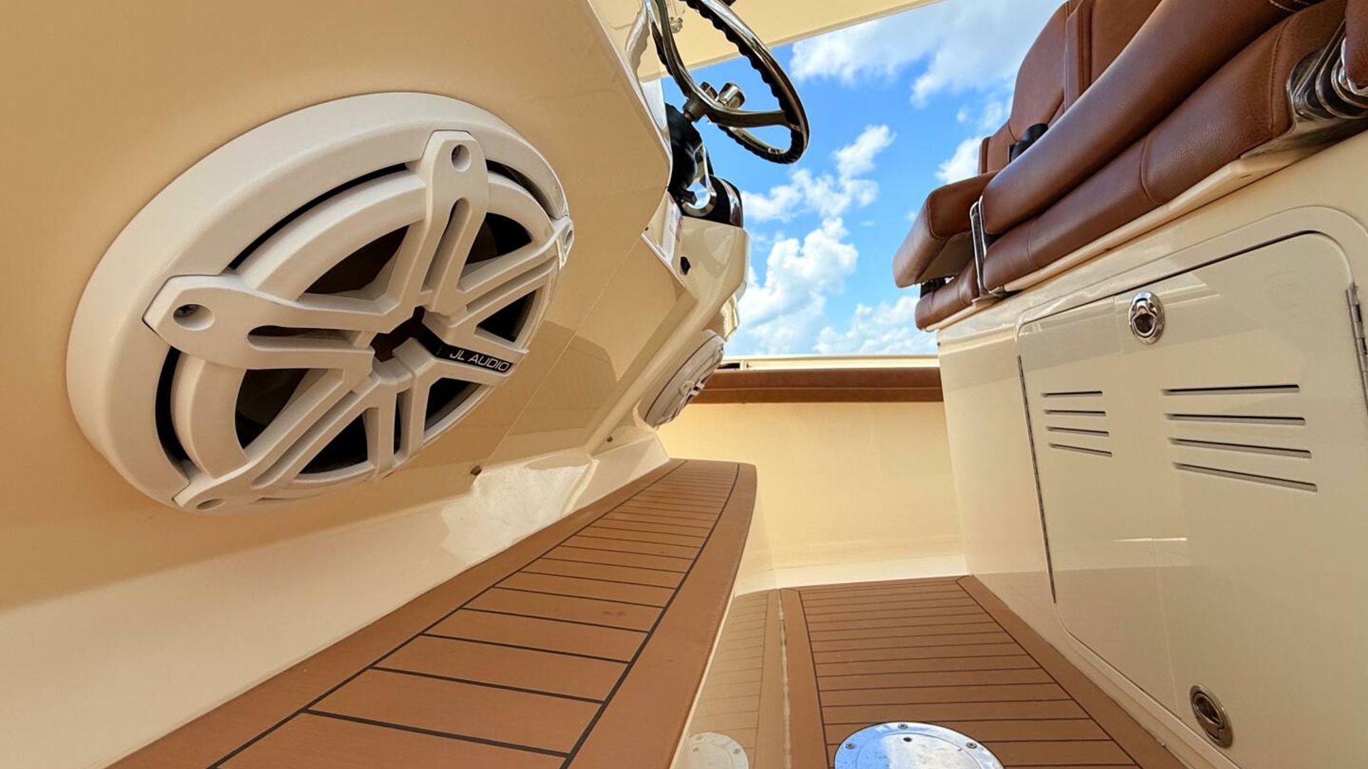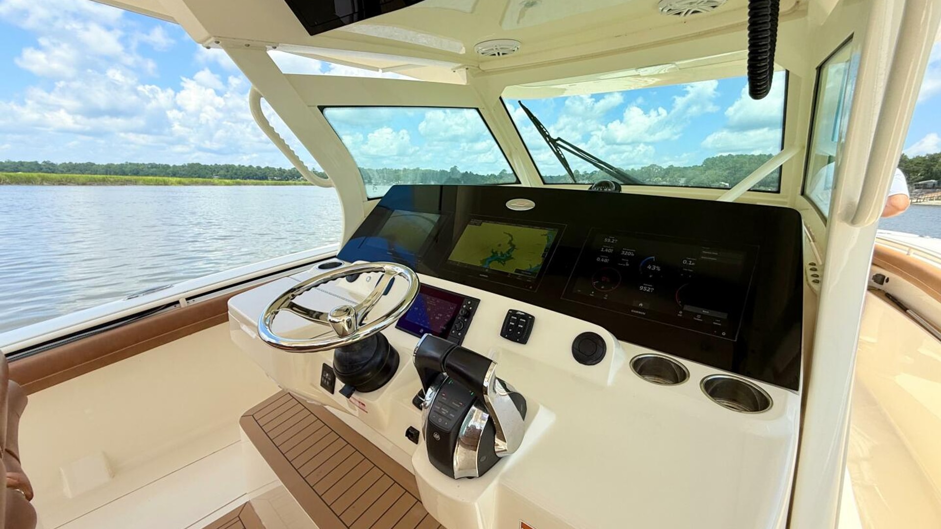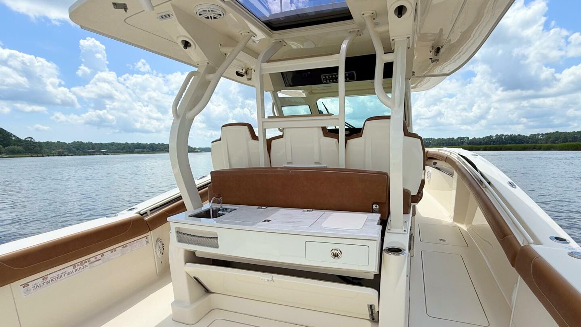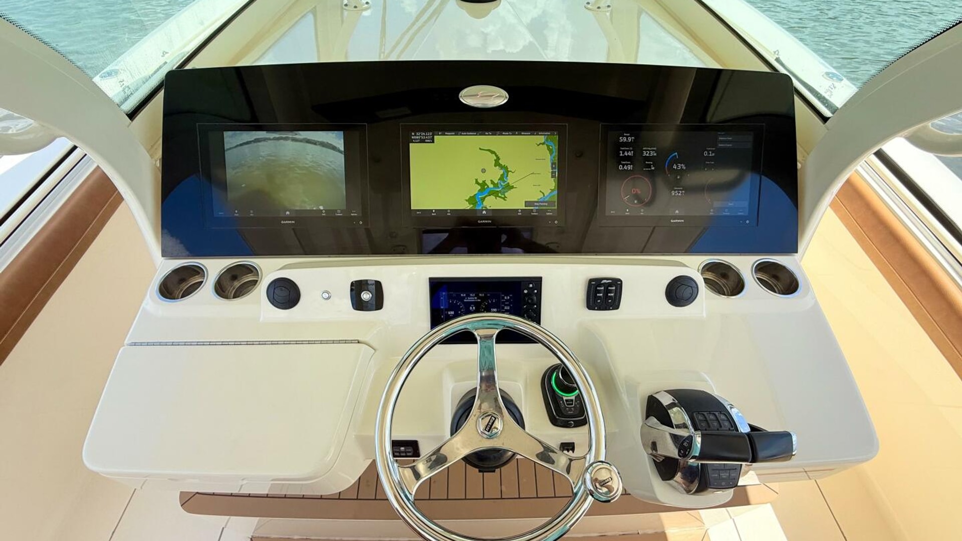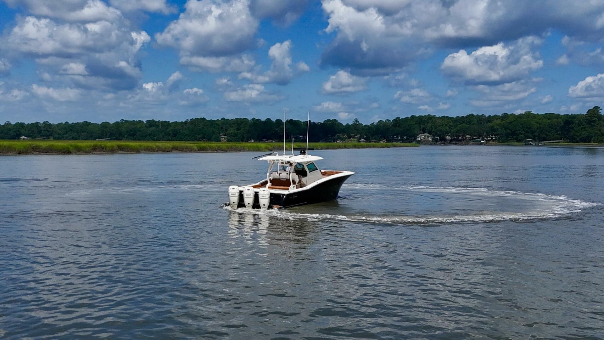 This 2020 Scout 380 LXF is a premium 38'6" center console that blends luxury, performance, and offshore capability. Built with epoxy-infused fiberglass and a double-stepped hull, it delivers excellent speed and efficiency, often powered by triple Mercury 350s for speeds over 50 mph. Key features include a spacious deck with bolstered seating, dual 92-gallon fish boxes, livewell, , and a fully equipped helm with triple Garmin displays. Below deck, the air-conditioned cabin offers a queen berth, enclosed head, galley, and 32″ TV. A Seakeeper 3 stabilizer and 404-gallon fuel capacity round out this versatile, high-end fishing and cruising machine.