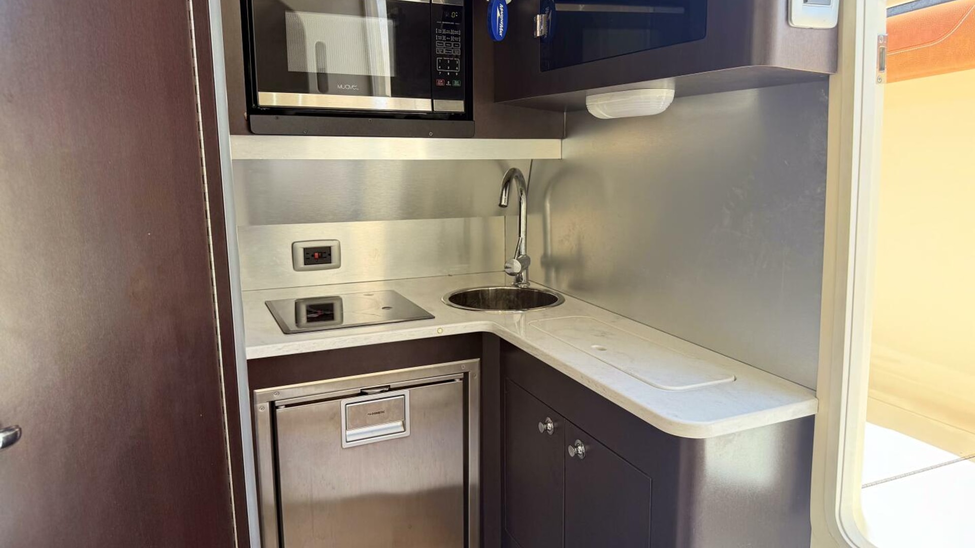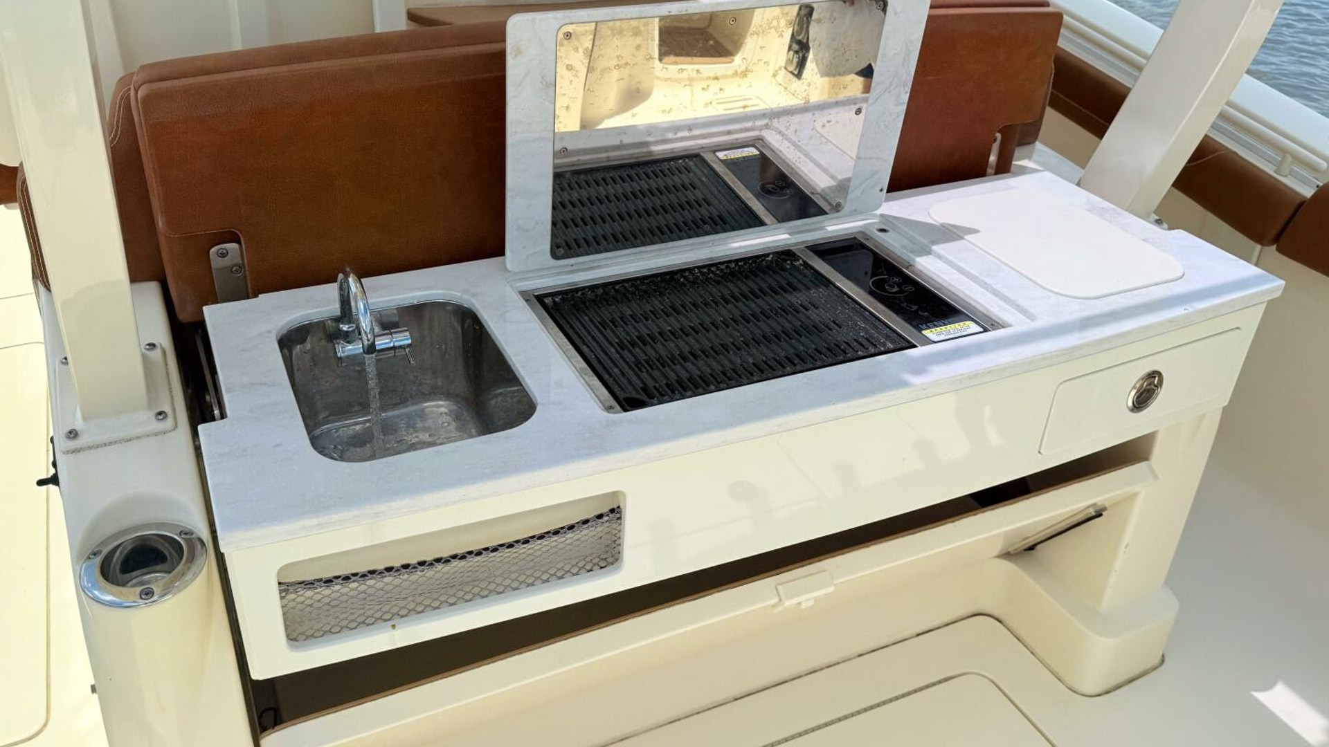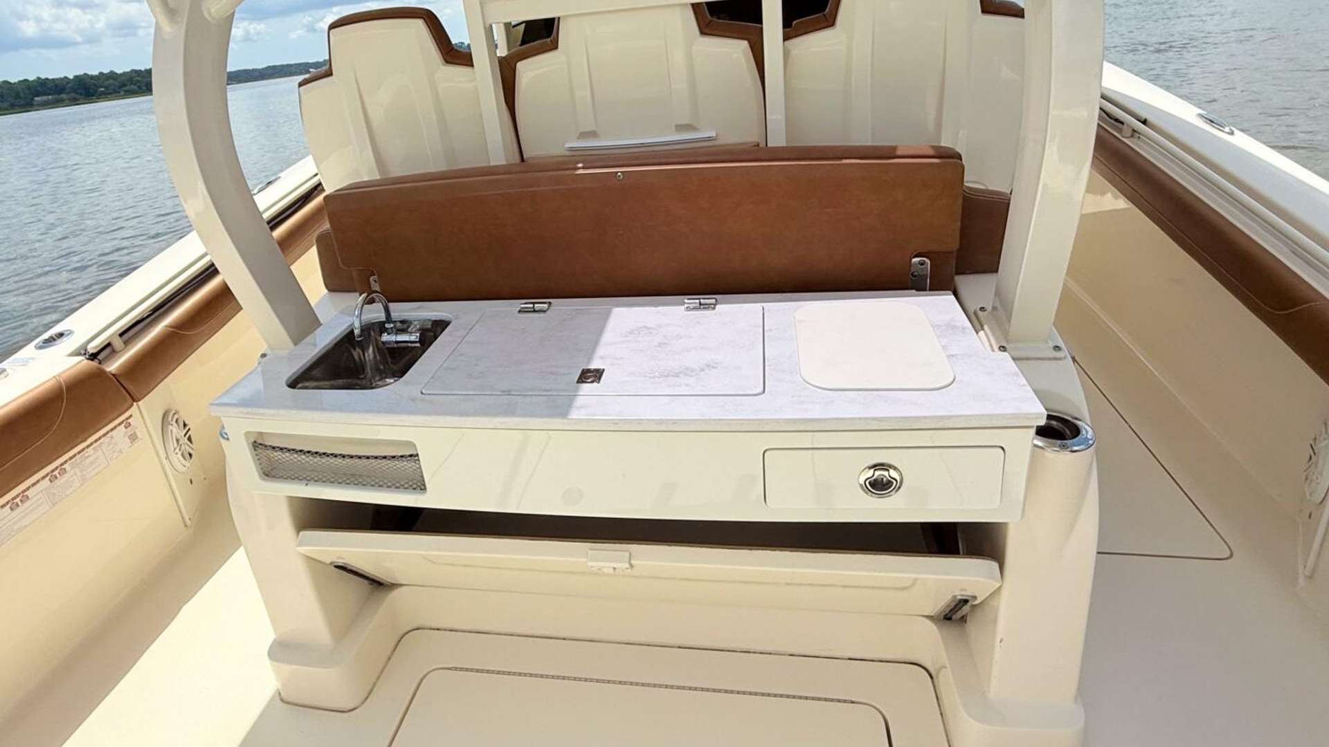 - Raised Aft Facing Lounge Seat in Leaning Post w/ Clear Ice Maker, Drawer
