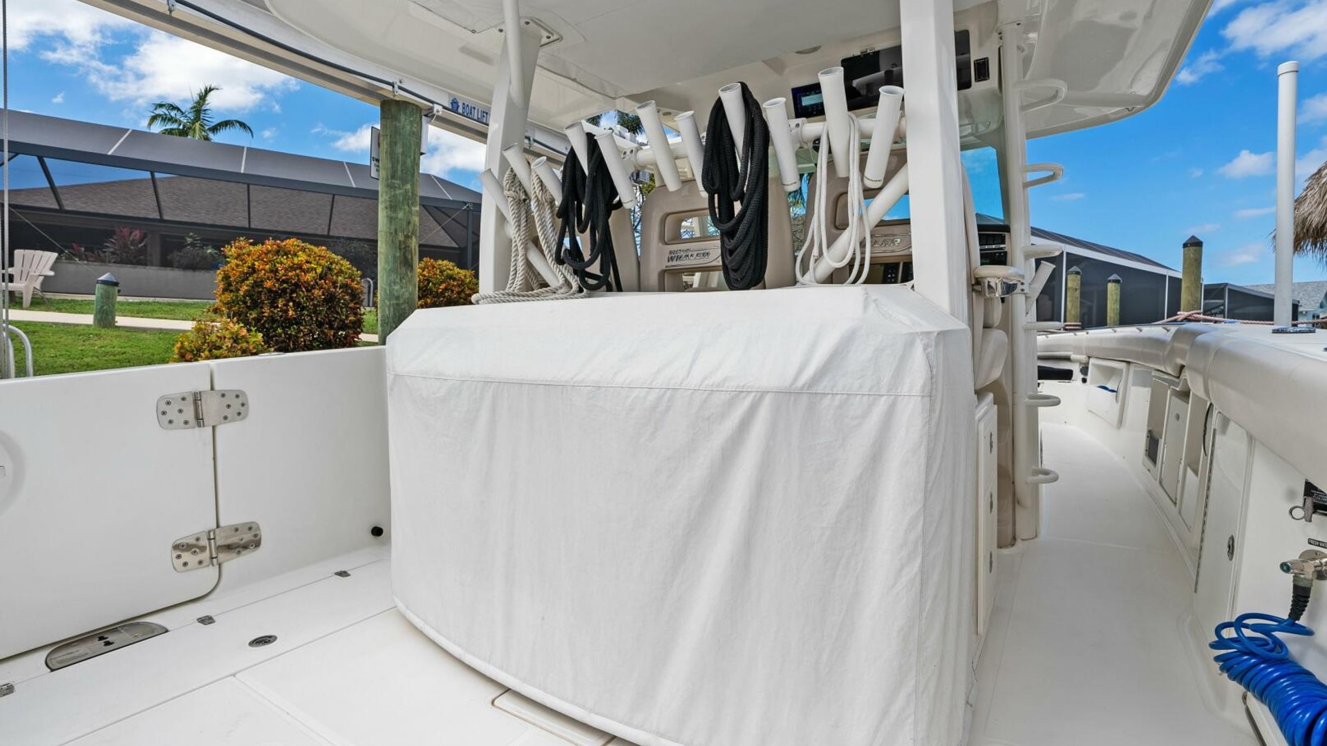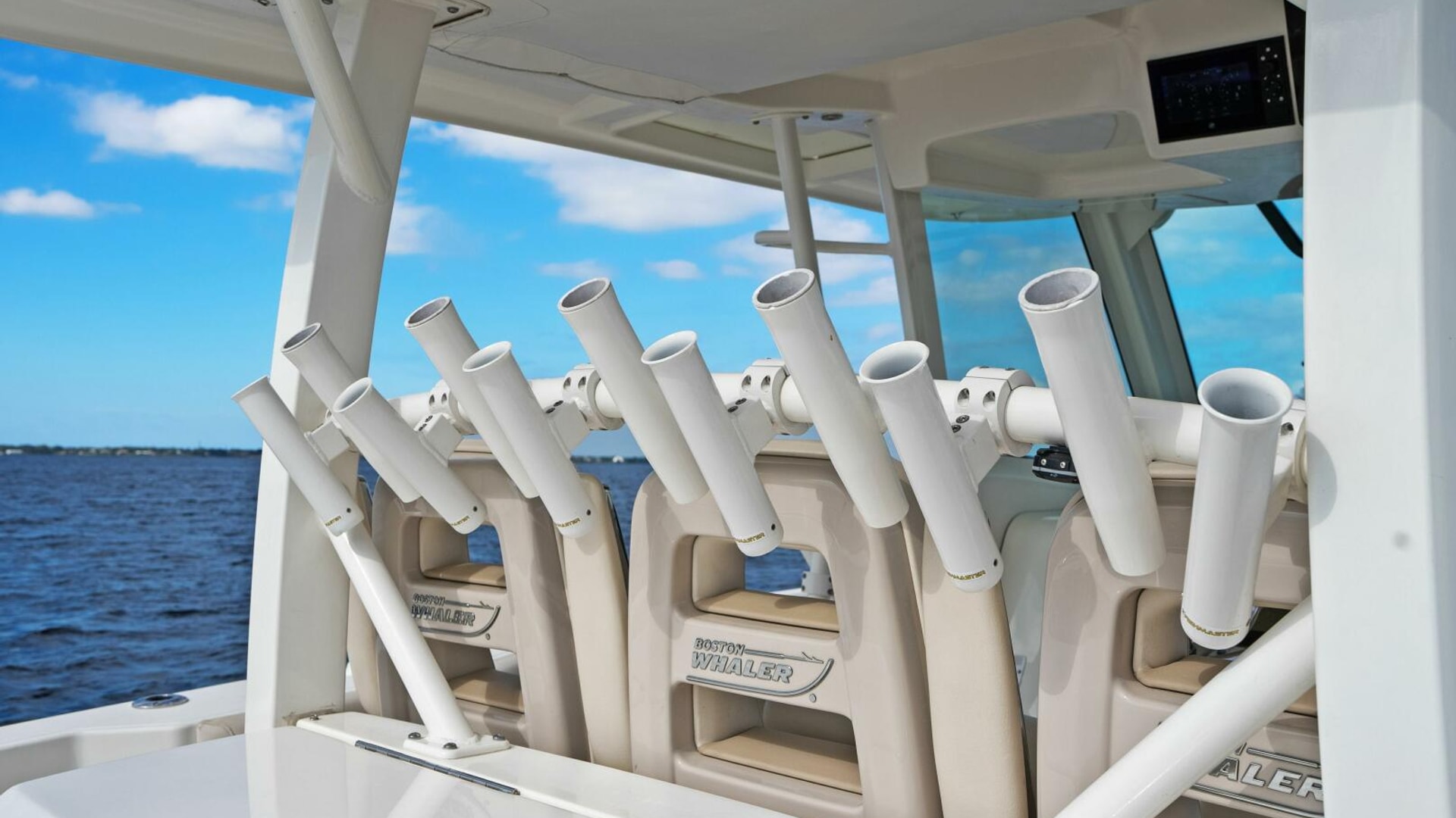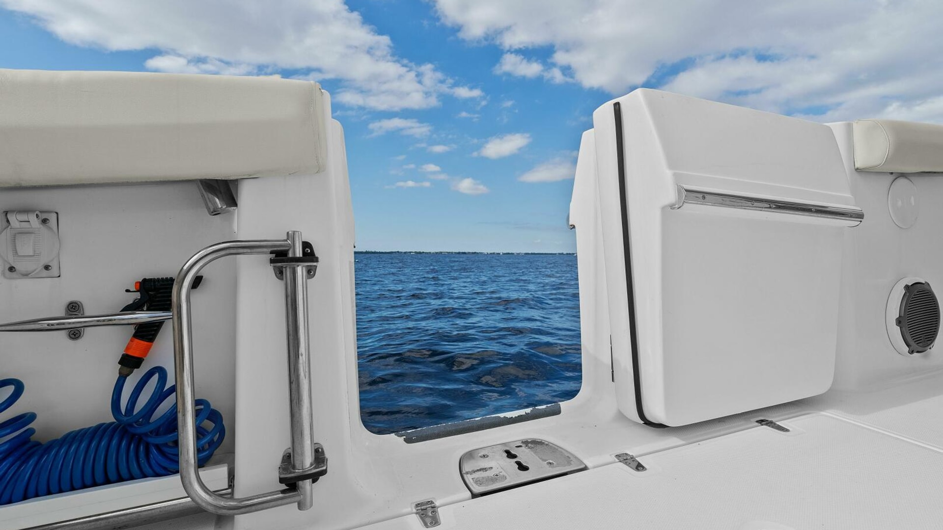 Equipped with premium electronics, including dual Raymarine Axiom 16” displays, a 3D transducer, Raymarine Magnum open array radar, Ray 50 VHF with 8’ antenna, and a Fusion stereo system, you’ll have everything you need for confident navigation and entertainment offshore.
