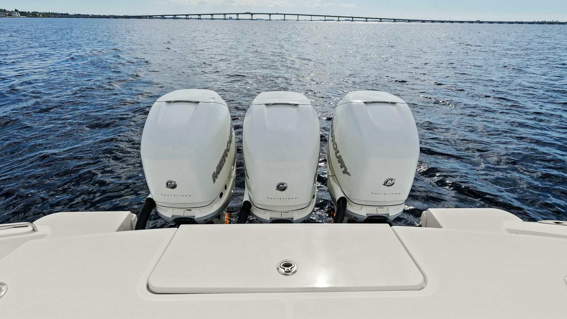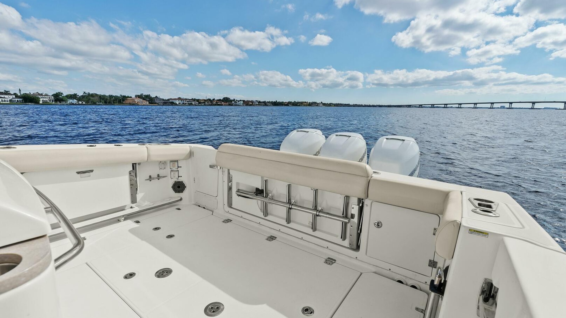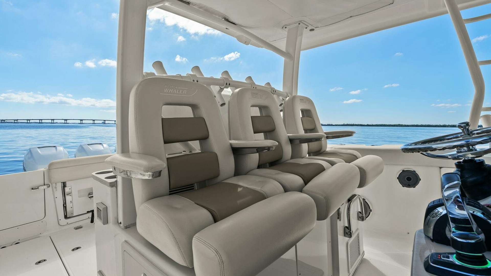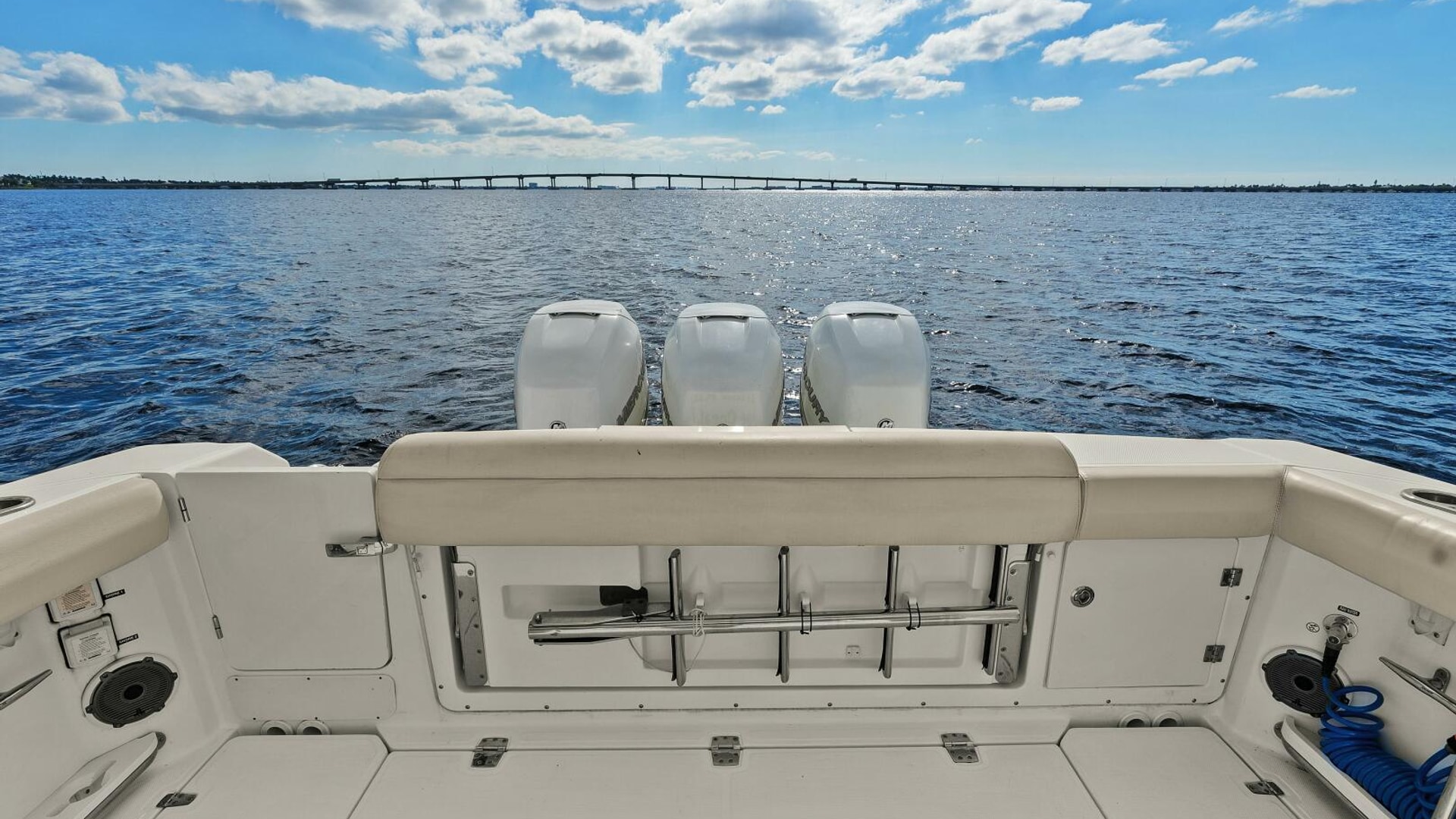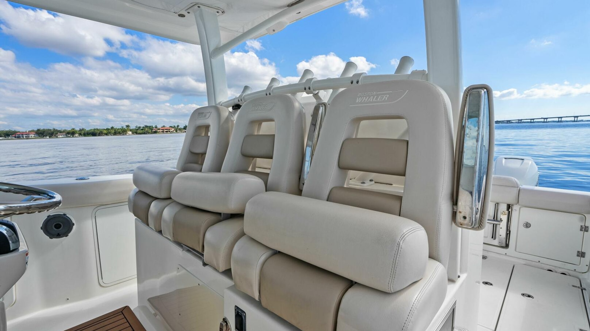 This 2019 Boston Whaler 380 Outrage "Lima Kilo" delivers the perfect combination of performance, luxury, and versatility—ready for any adventure on the water. Meticulously maintained and consistently serviced, this vessel shows just 505 hours on triple Mercury 350 Verado engines.