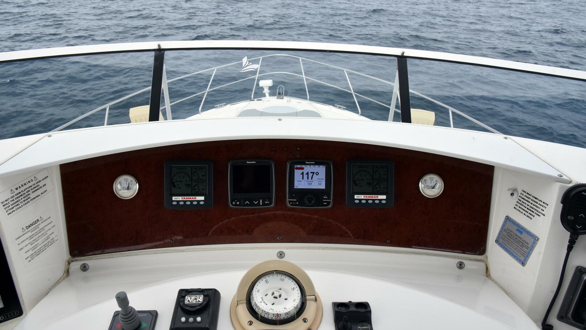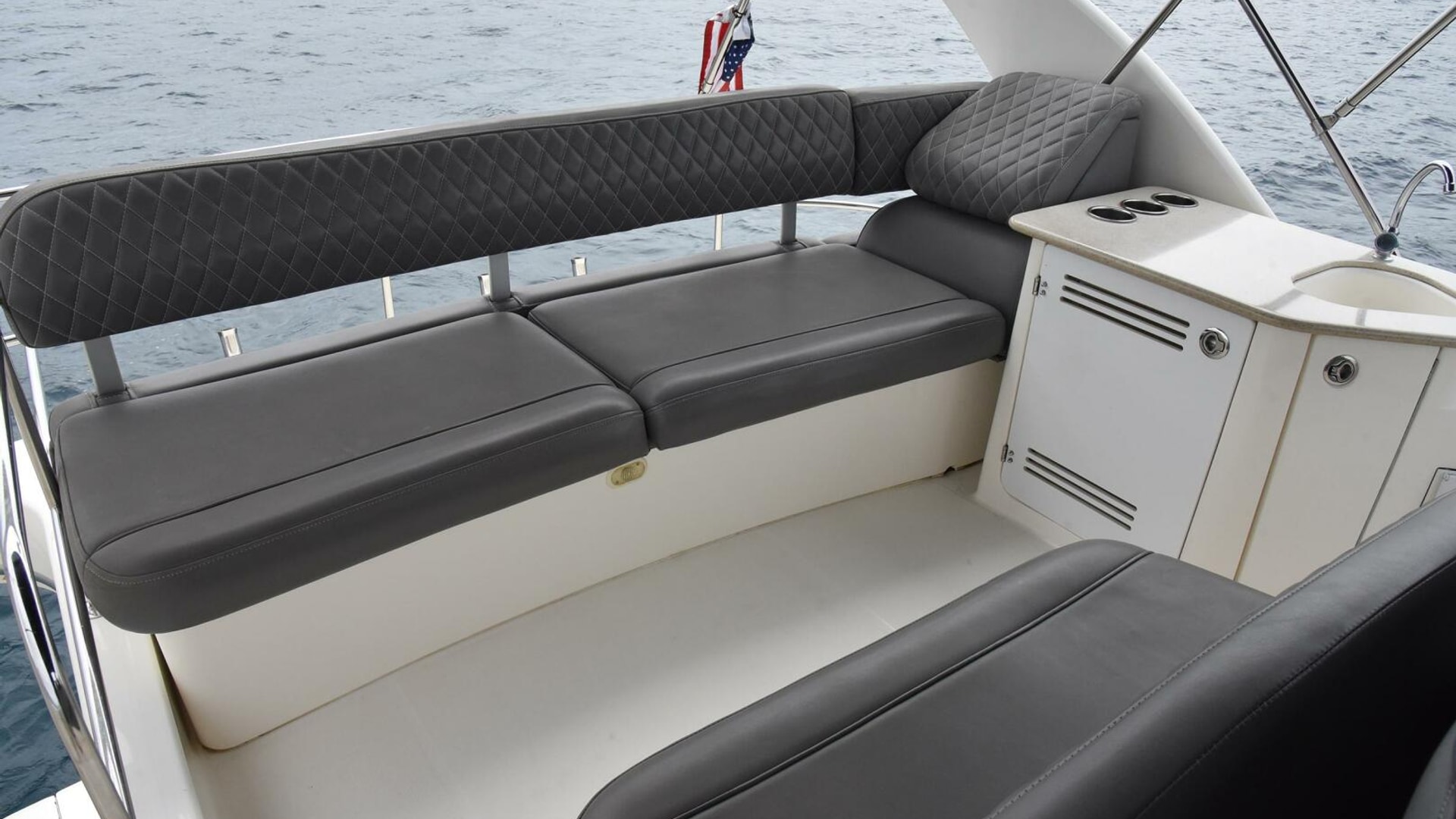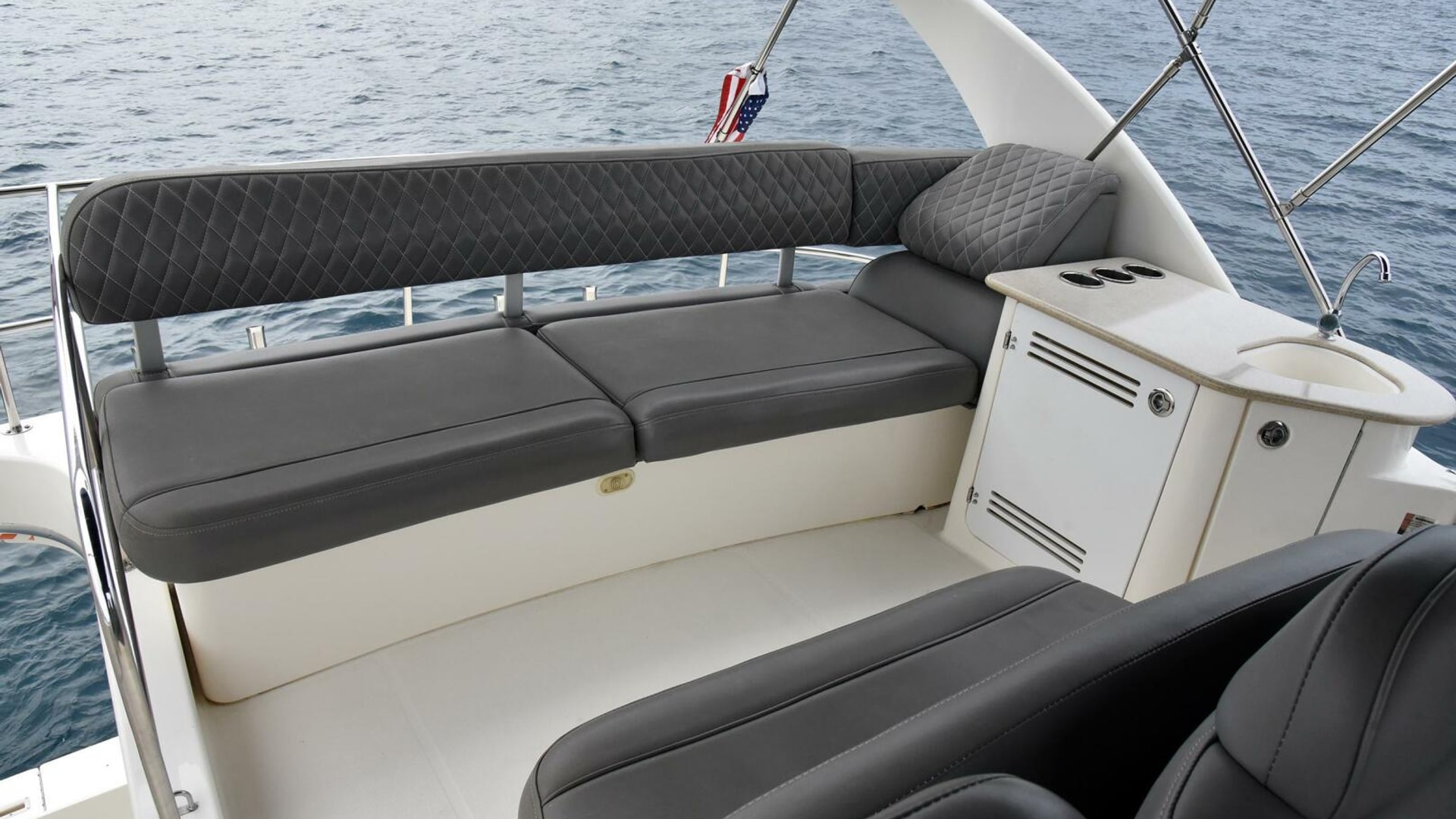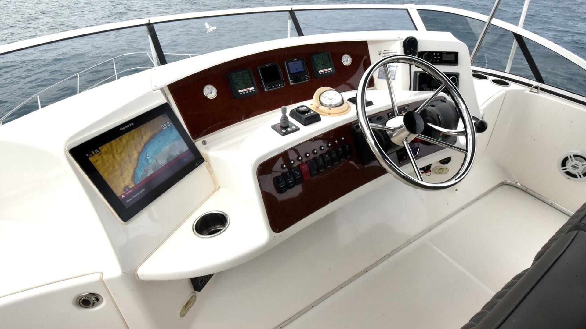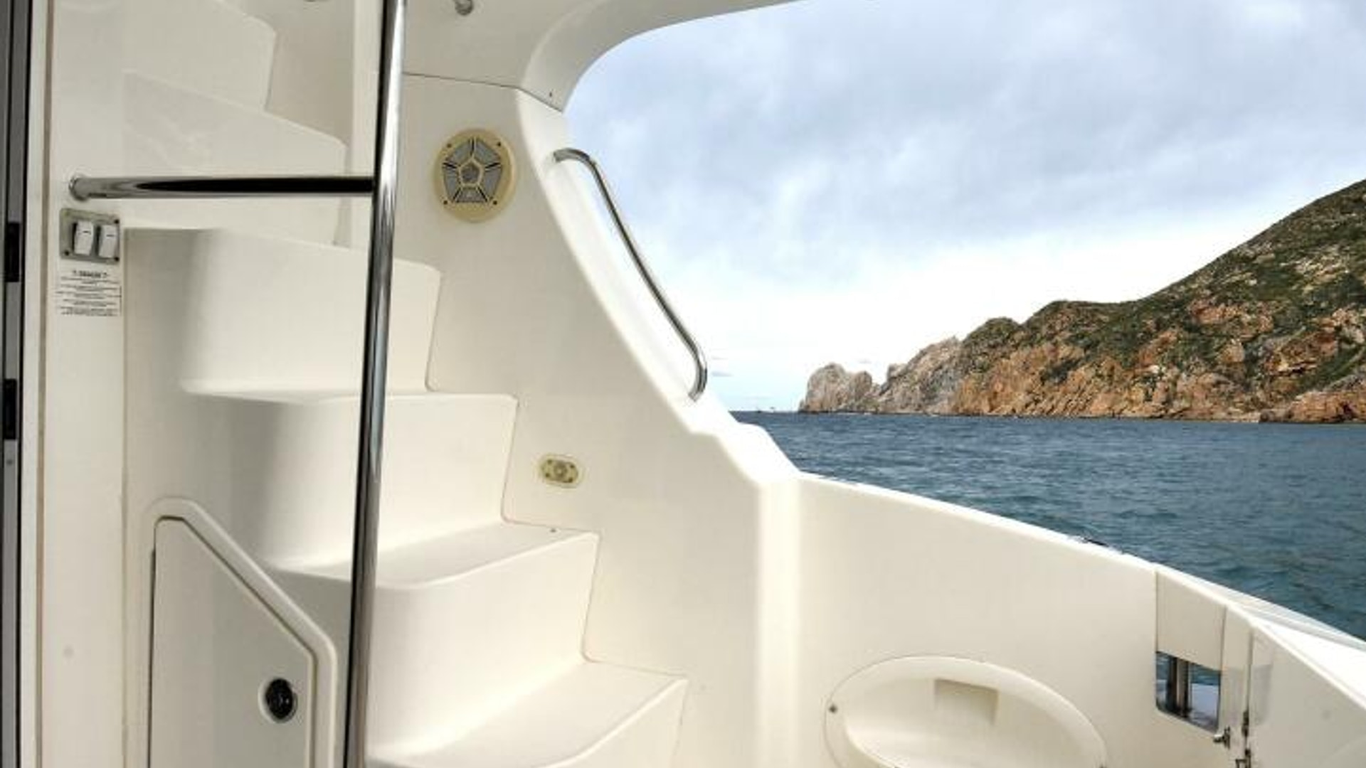 Powered for reliable cruising and equipped with a bow thruster, PURA VIDA makes docking and close-quarters maneuvering simple and stress-free. Her handling is smooth and responsive, providing a confident and comfortable ride. From the elevated bridge, you’ll enjoy excellent visibility and an open-air helm that enhances the overall cruising experience. Once up on plane, she runs quietly and efficiently, reflecting Silverton’s attention to hull design and engineering.
