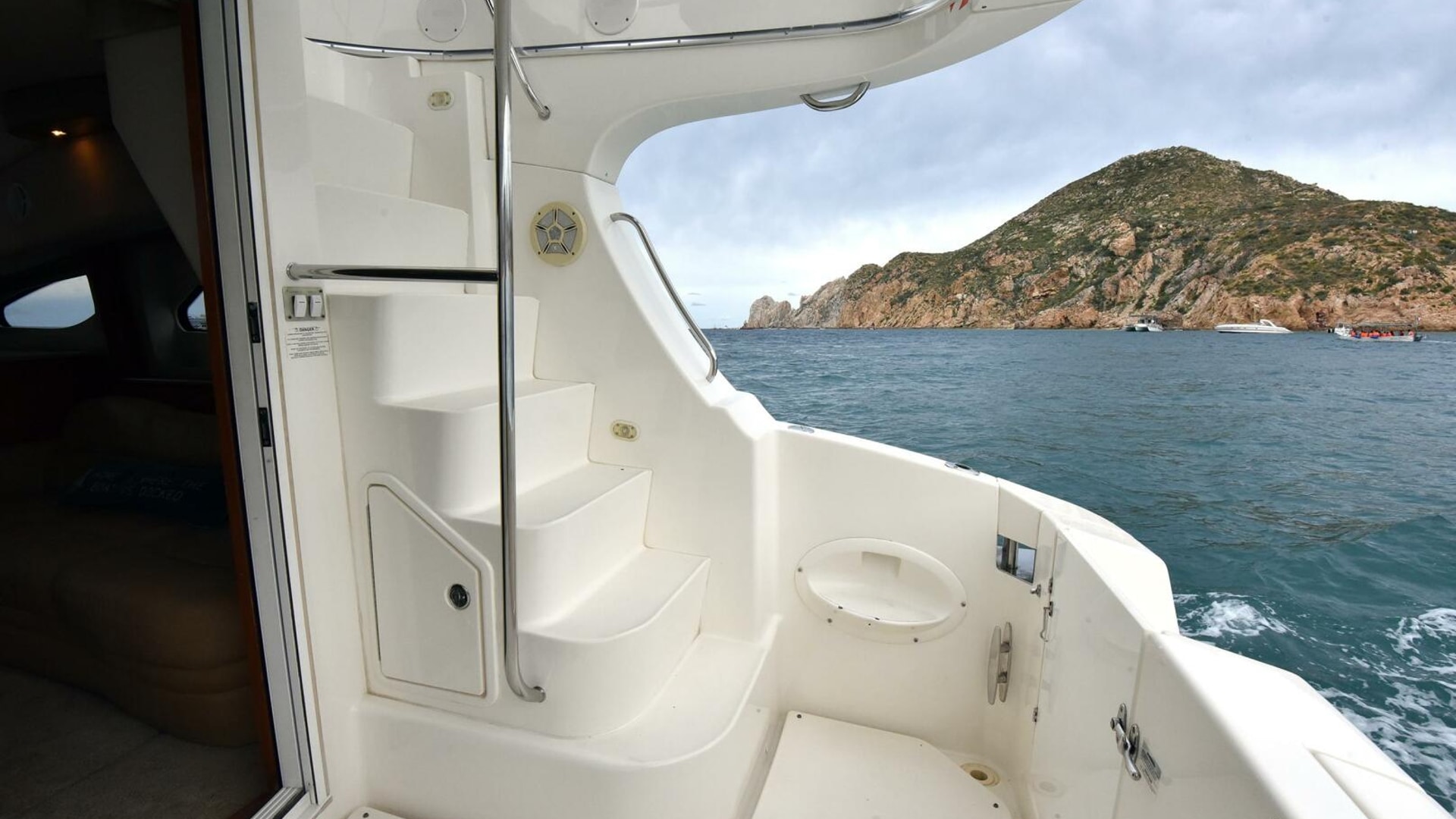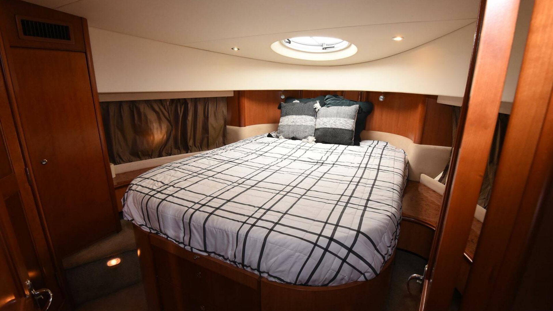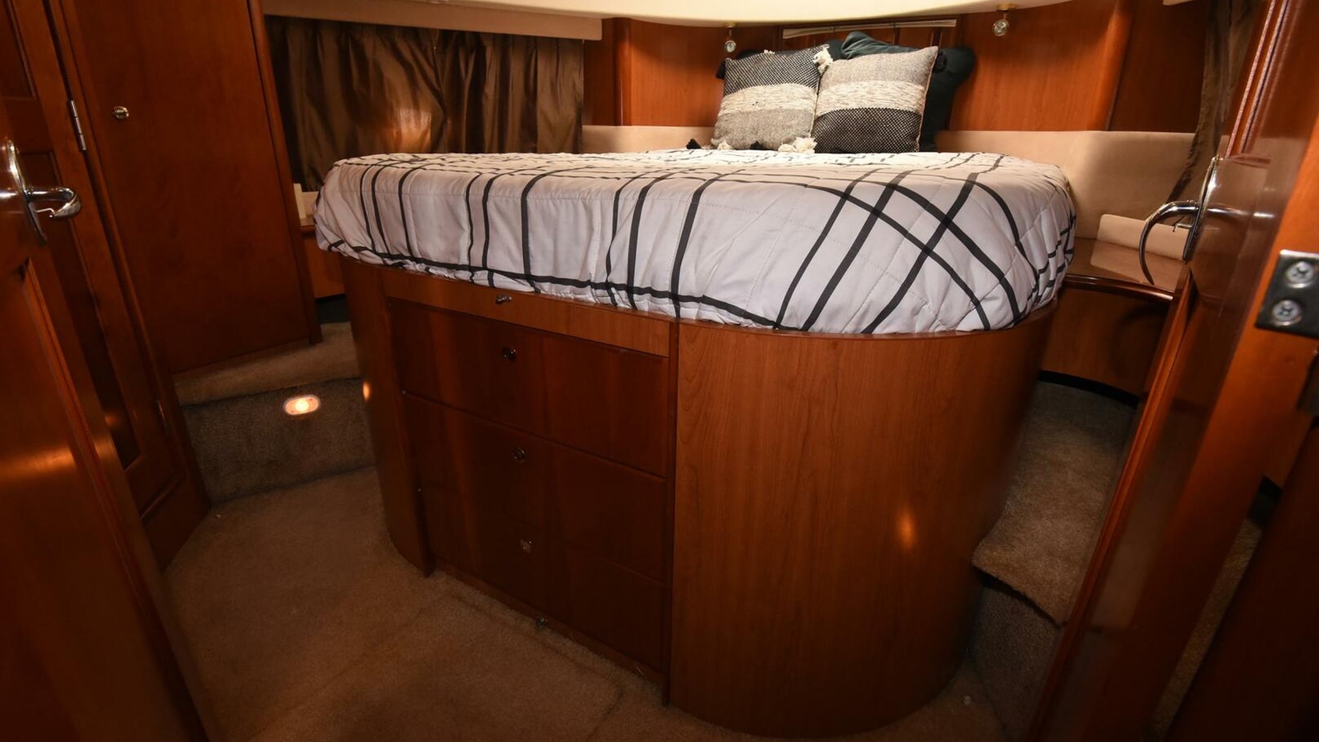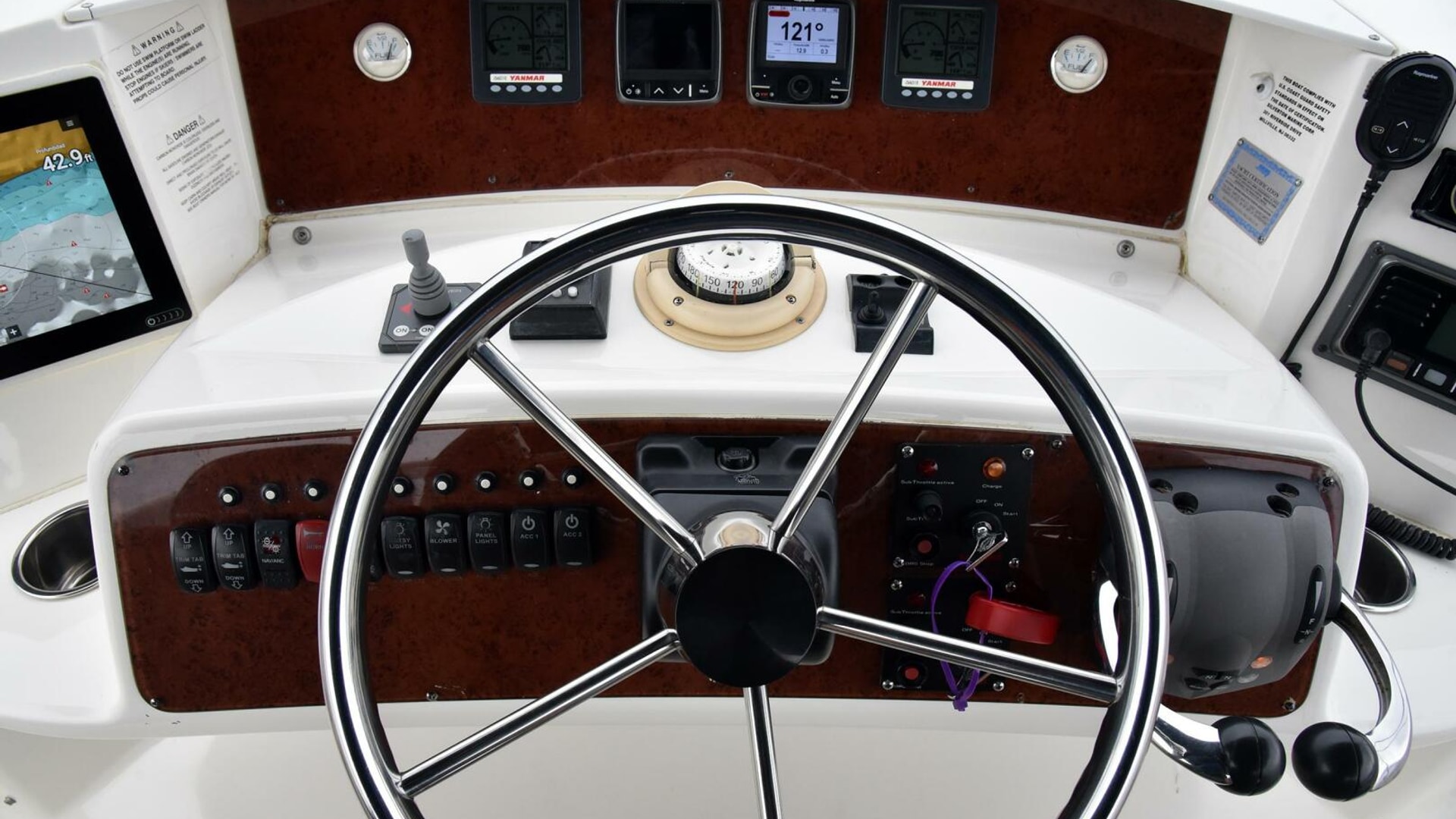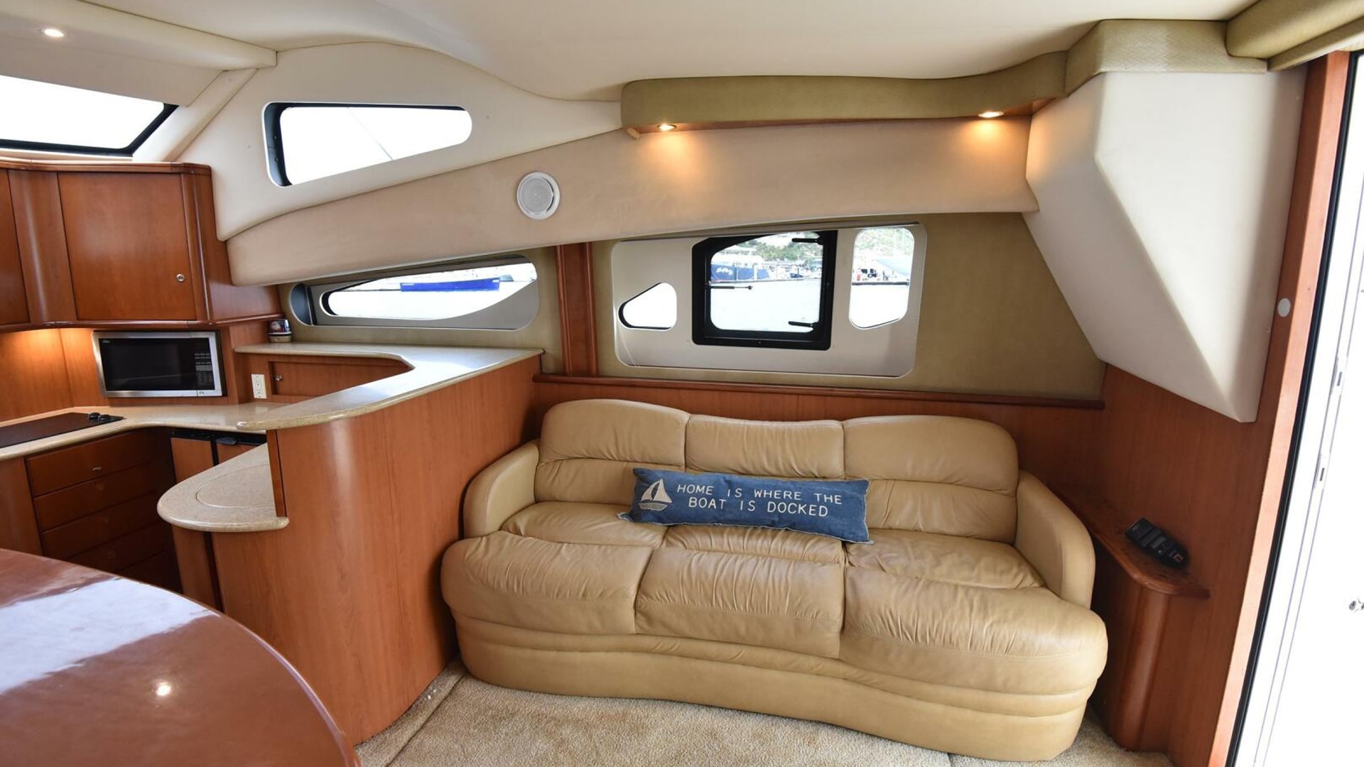 Powered for reliable cruising and equipped with a bow thruster, PURA VIDA makes docking and close-quarters maneuvering simple and stress-free. Her handling is smooth and responsive, providing a confident and comfortable ride. From the elevated bridge, you’ll enjoy excellent visibility and an open-air helm that enhances the overall cruising experience. Once up on plane, she runs quietly and efficiently, reflecting Silverton’s attention to hull design and engineering.