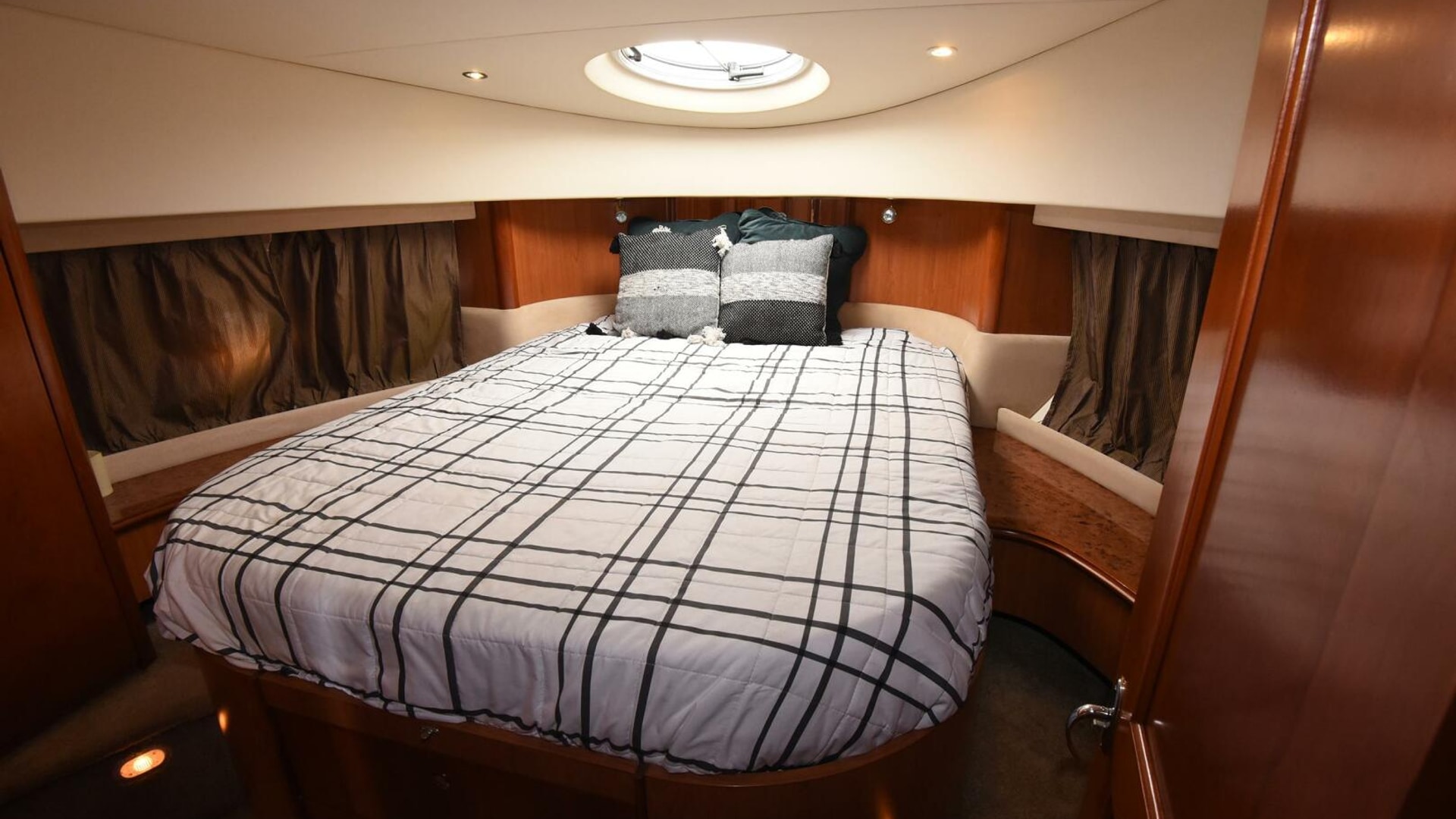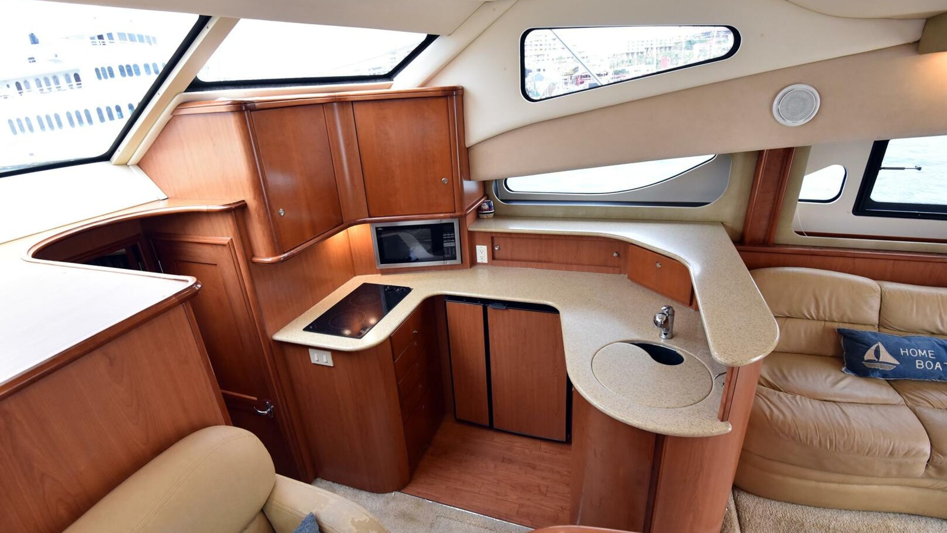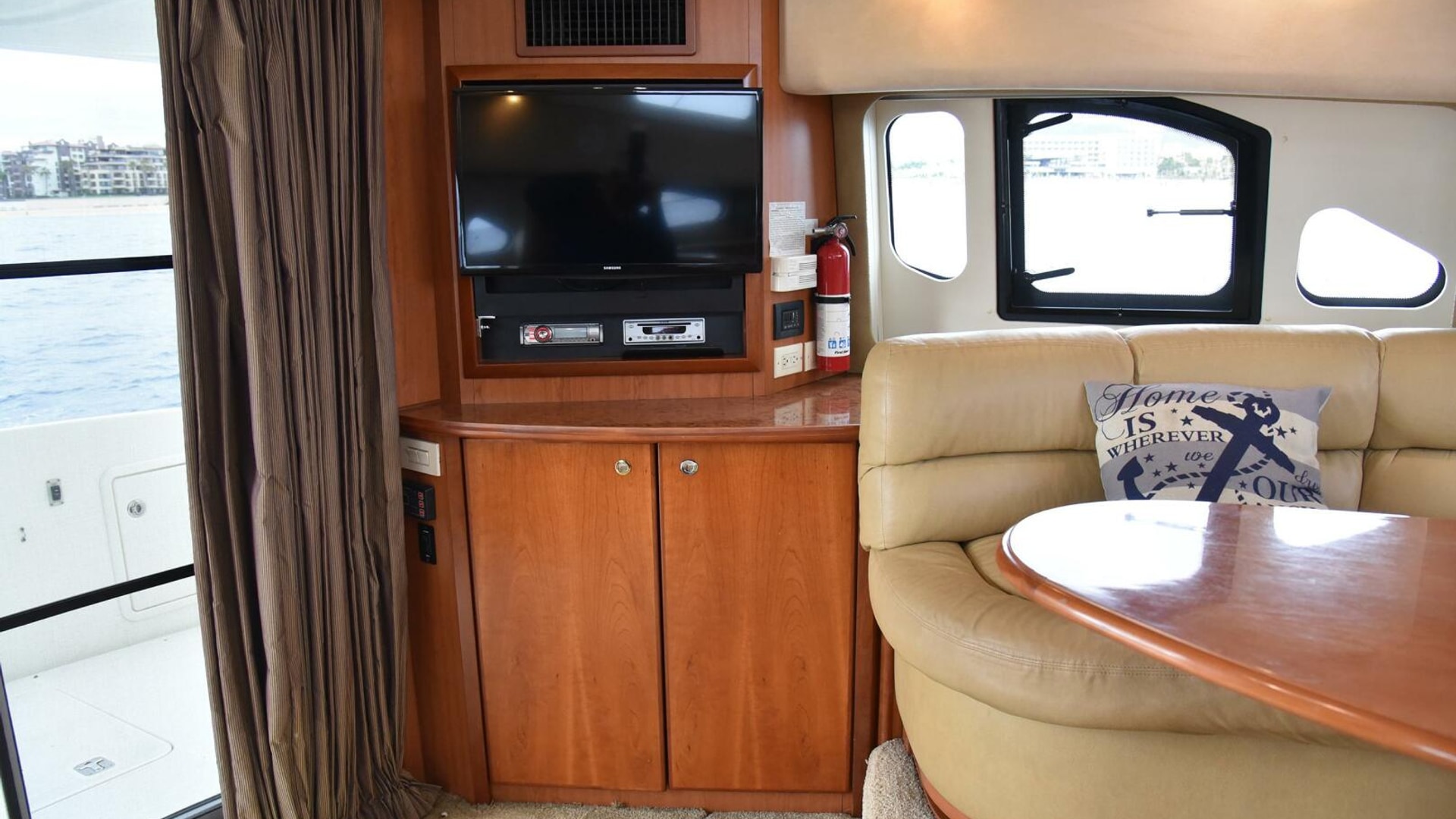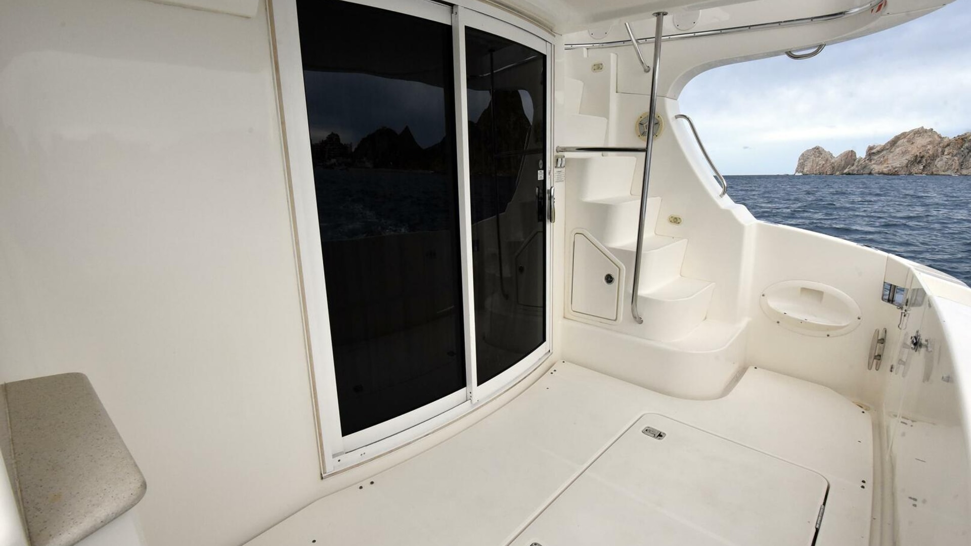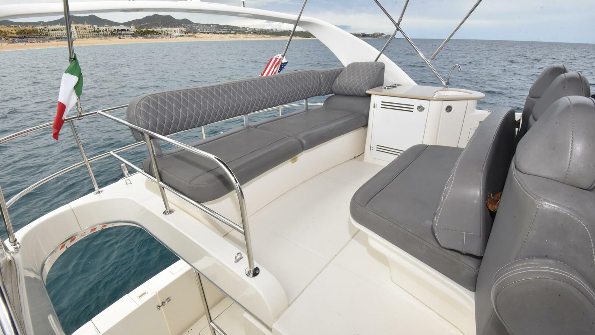 Powered for reliable cruising and equipped with a bow thruster, PURA VIDA makes docking and close-quarters maneuvering simple and stress-free. Her handling is smooth and responsive, providing a confident and comfortable ride. From the elevated bridge, you’ll enjoy excellent visibility and an open-air helm that enhances the overall cruising experience. Once up on plane, she runs quietly and efficiently, reflecting Silverton’s attention to hull design and engineering.