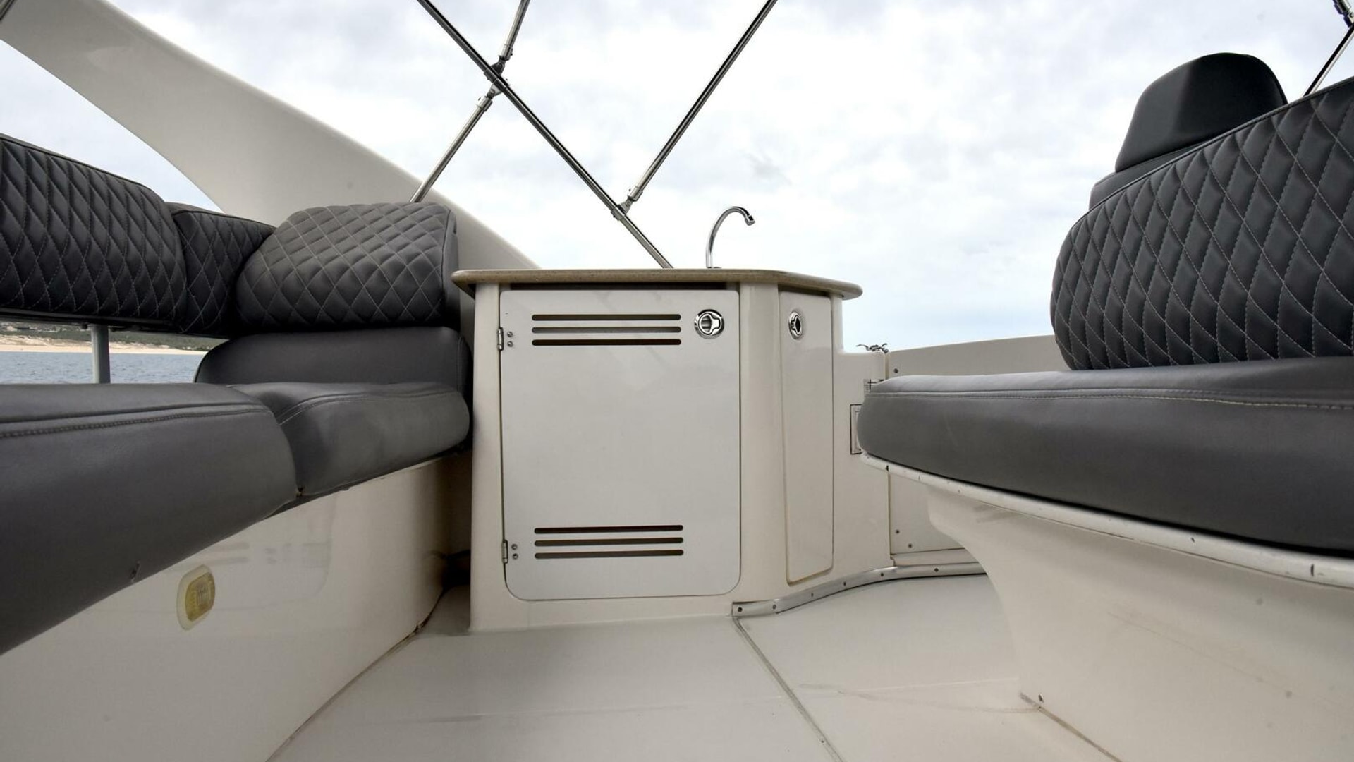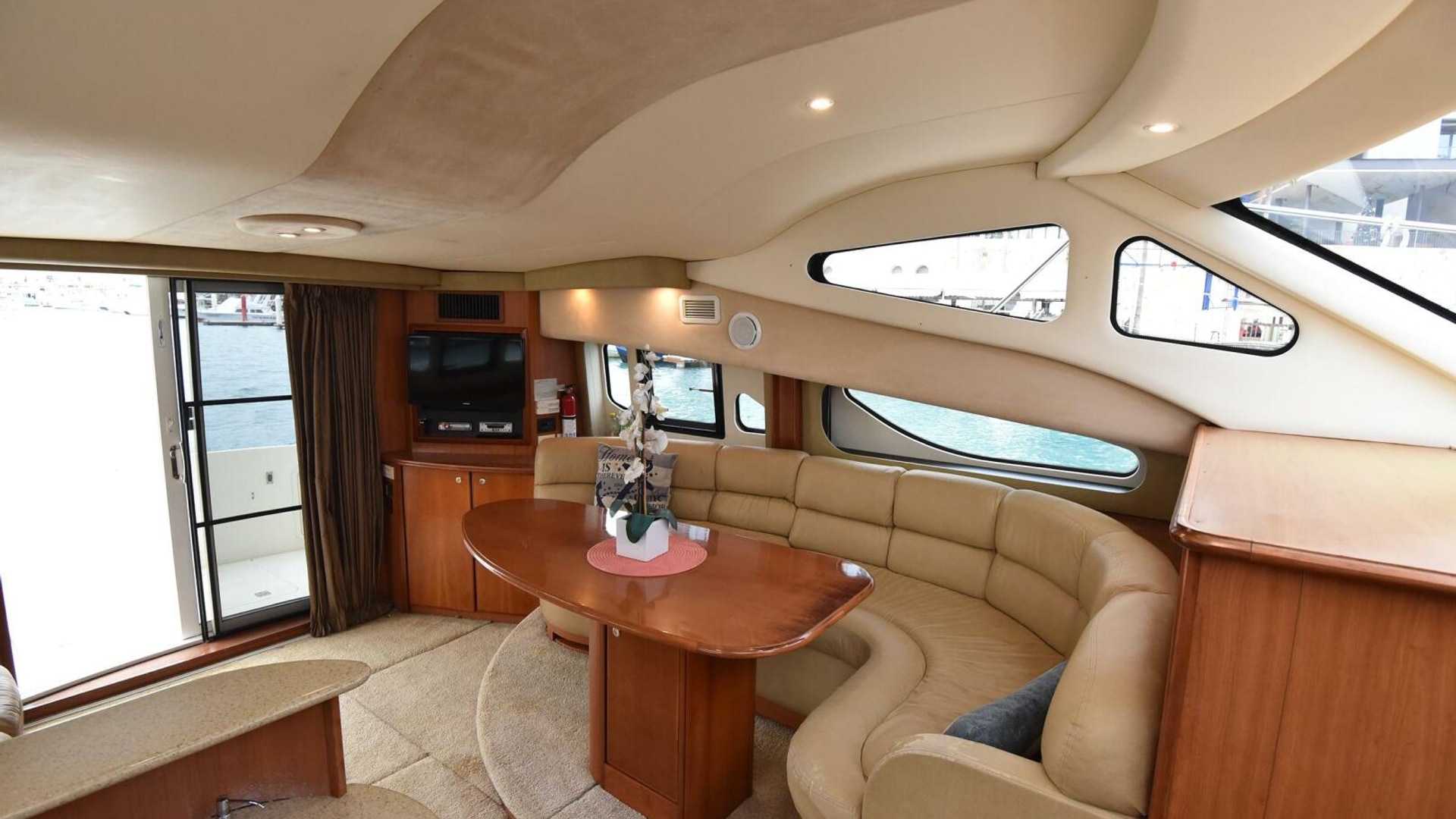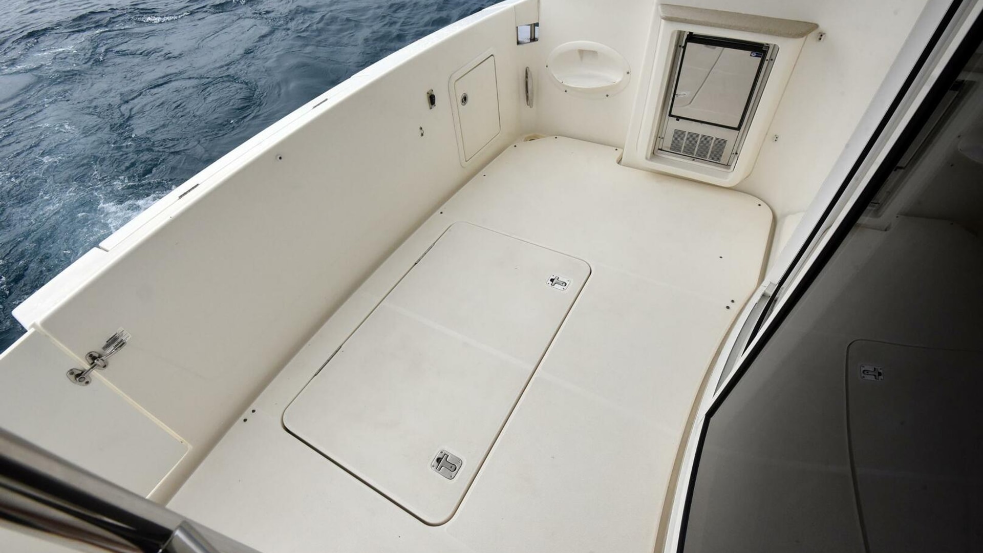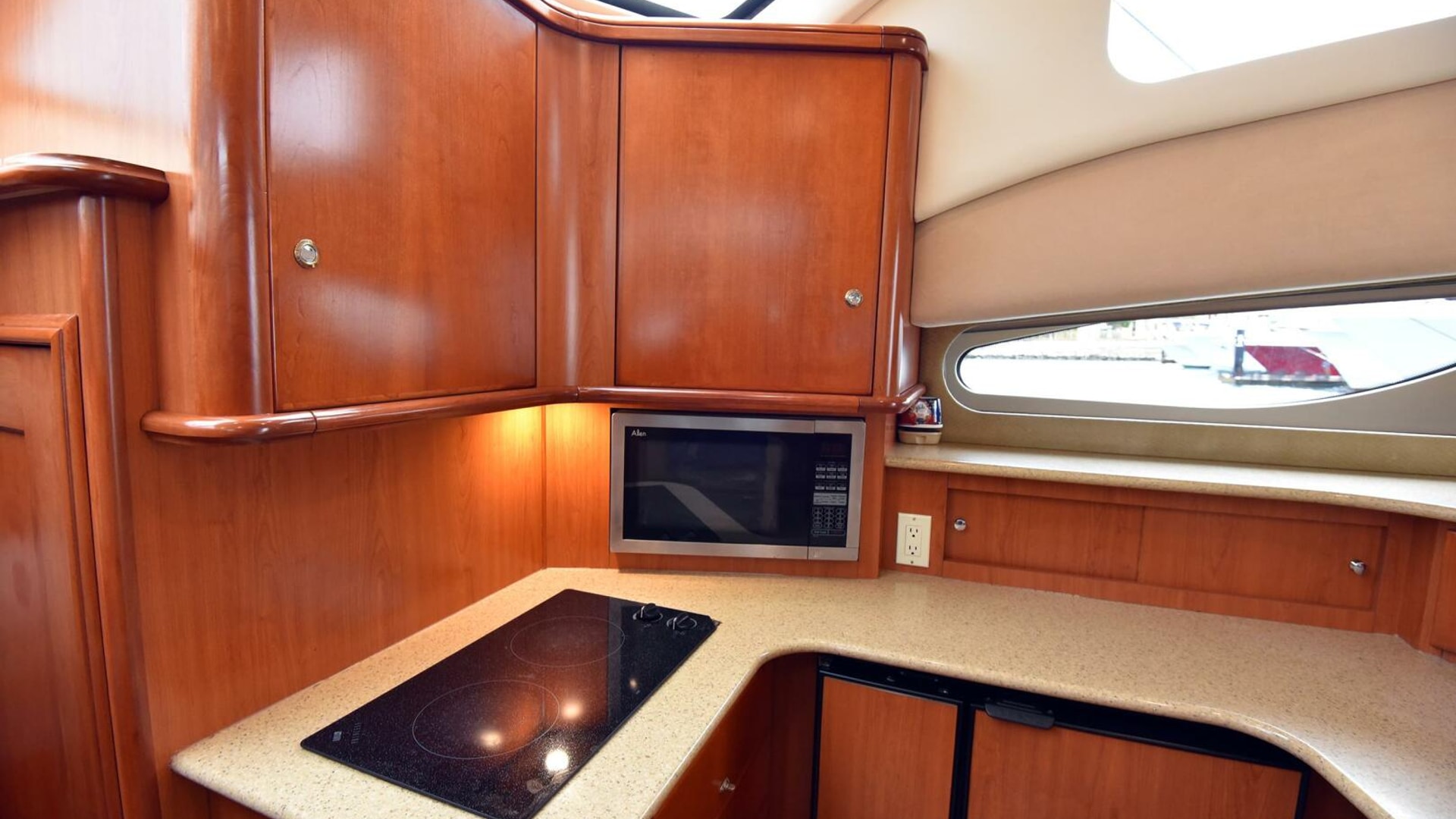 Powered for reliable cruising and equipped with a bow thruster, PURA VIDA makes docking and close-quarters maneuvering simple and stress-free. Her handling is smooth and responsive, providing a confident and comfortable ride. From the elevated bridge, you’ll enjoy excellent visibility and an open-air helm that enhances the overall cruising experience. Once up on plane, she runs quietly and efficiently, reflecting Silverton’s attention to hull design and engineering.