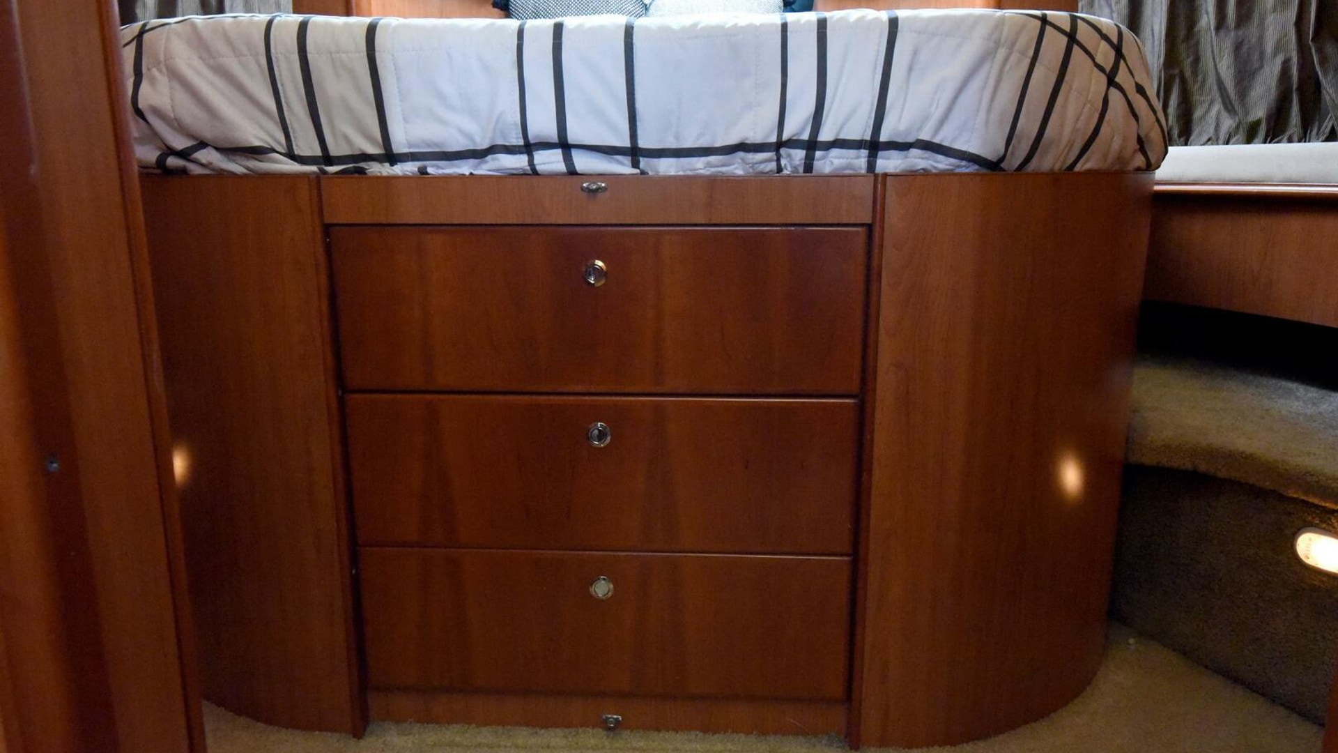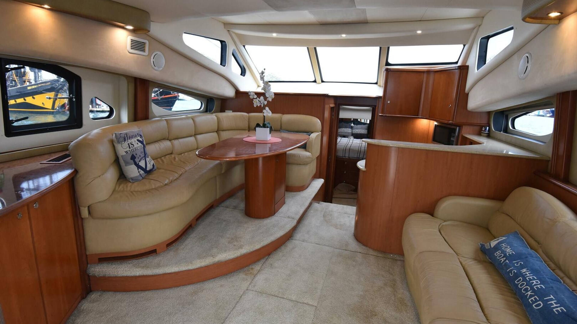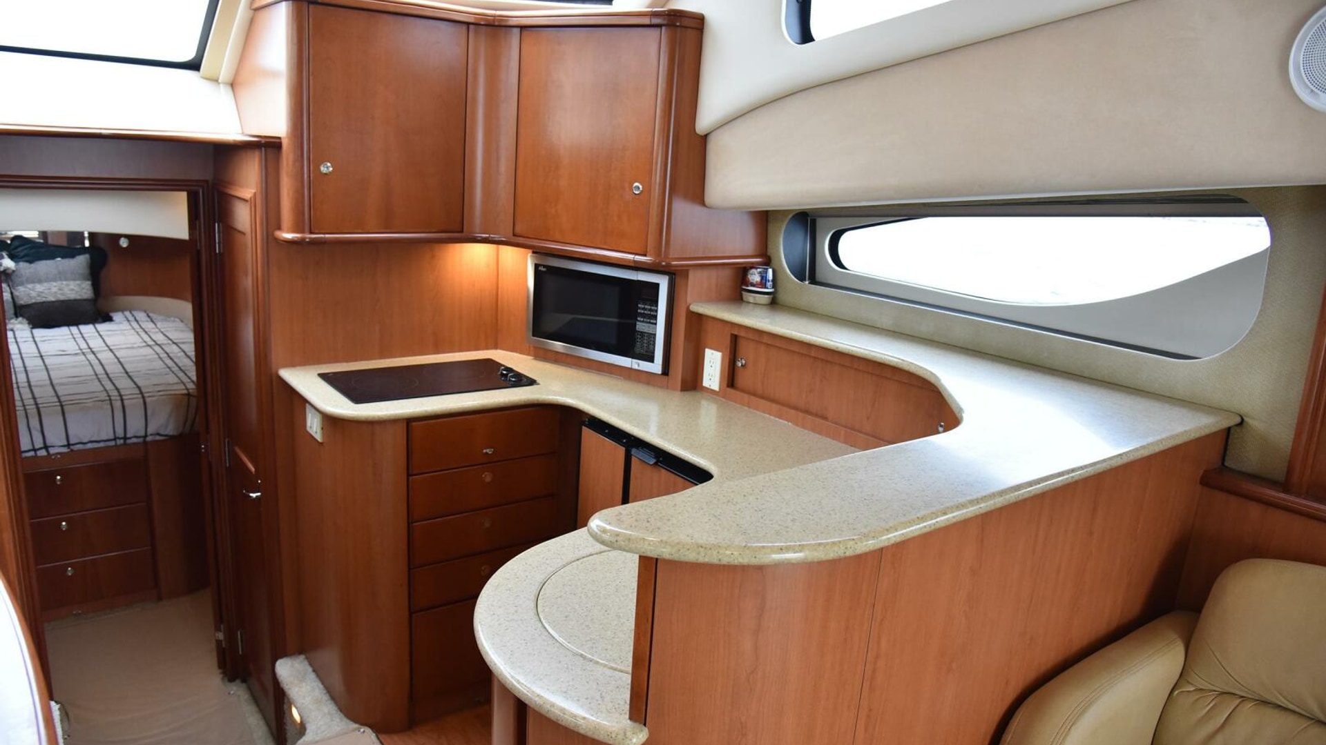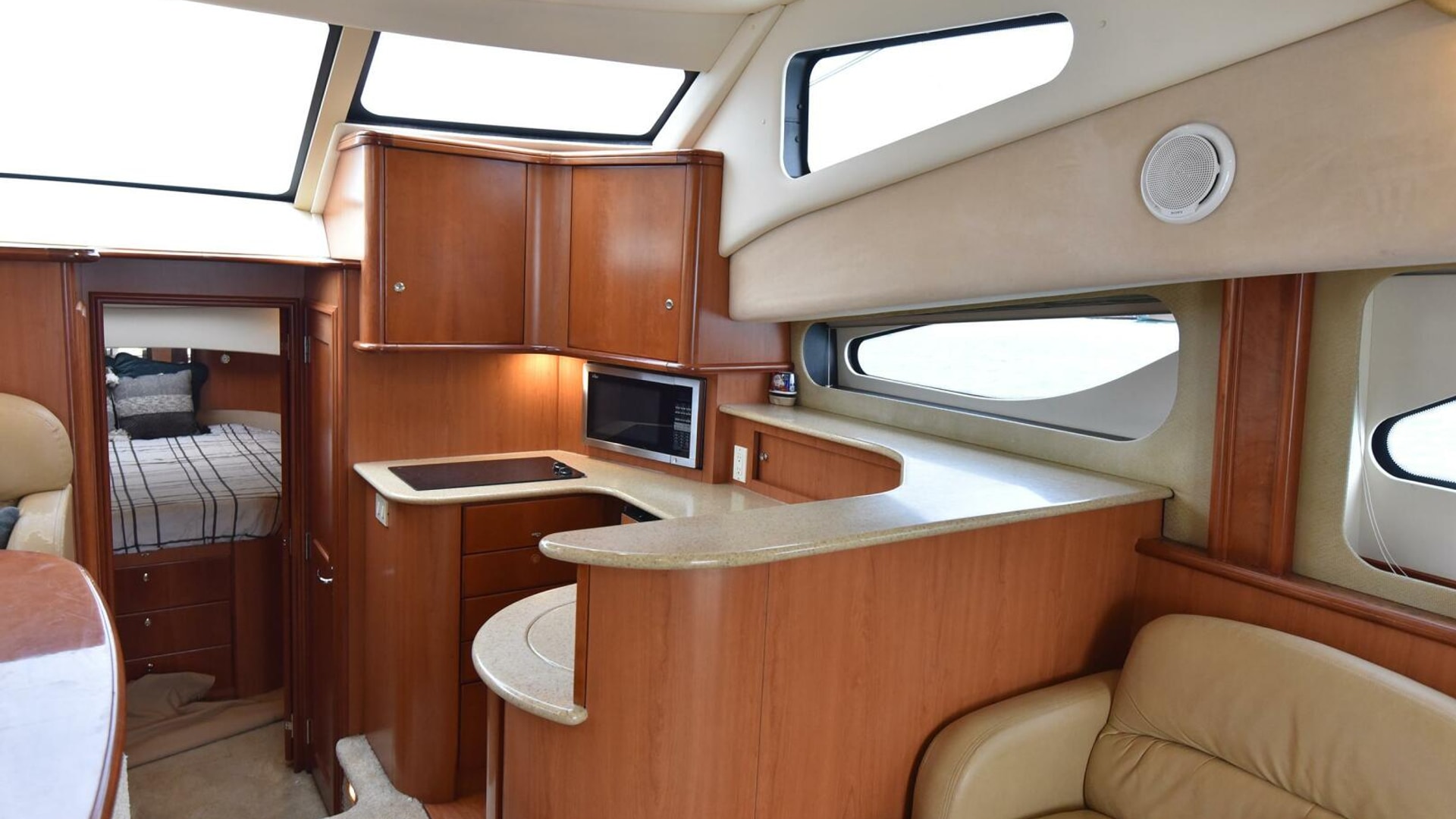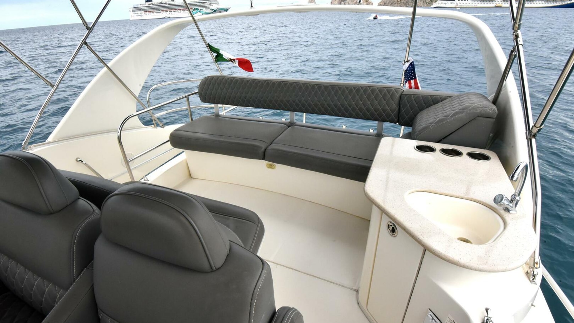Powered for reliable cruising and equipped with a bow thruster, PURA VIDA makes docking and close-quarters maneuvering simple and stress-free. Her handling is smooth and responsive, providing a confident and comfortable ride. From the elevated bridge, you’ll enjoy excellent visibility and an open-air helm that enhances the overall cruising experience. Once up on plane, she runs quietly and efficiently, reflecting Silverton’s attention to hull design and engineering.