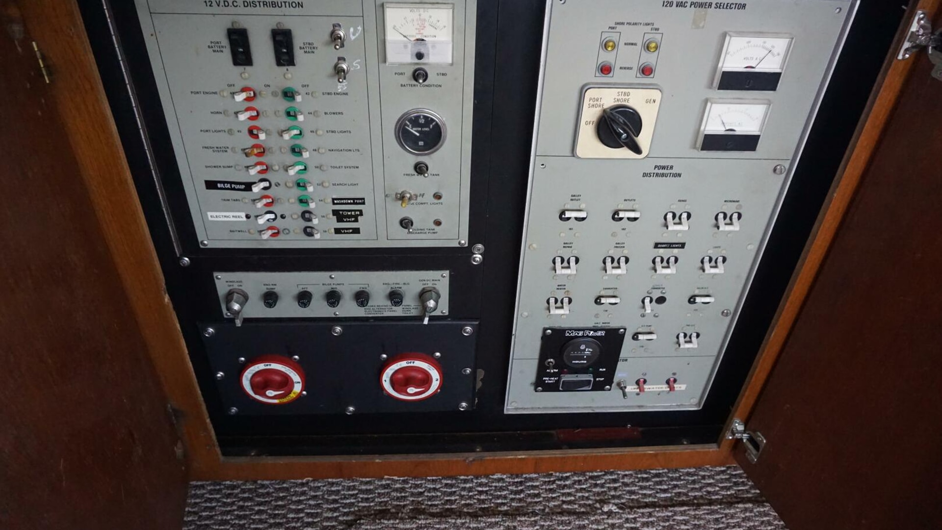 - Alarm System, fire, bilge, oil pressure and engine temp, gear oil temp and exhaust cooling