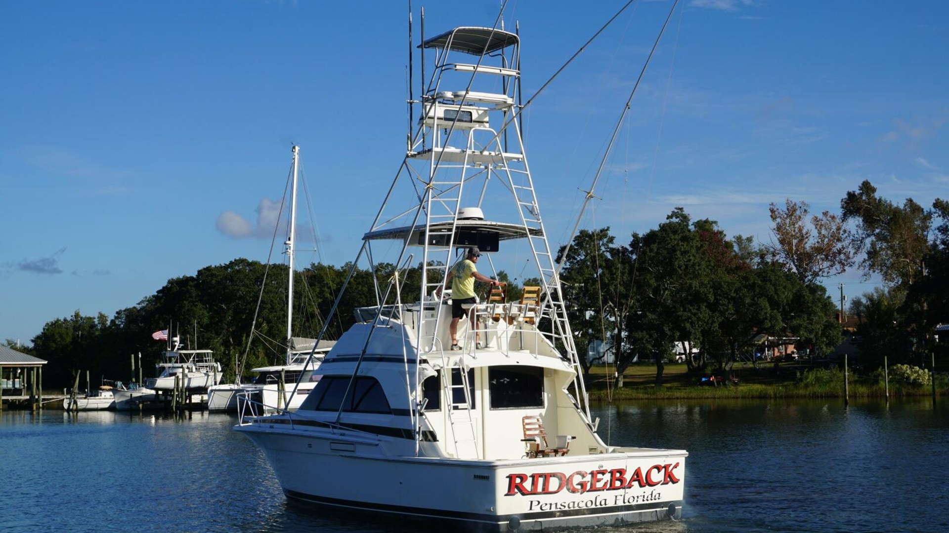 1987 37 Bertram Convertible “Ridgeback”. In the 80’s Bertram Yachts led the sportfishing industry with many innovative designs paving the way for the modern sportfish convertible. The excellent seakeeping ability of a Bertram is well-known around the globe by all serious sport fishermen. “RIDGEBACK” is a proven tournament winner with a long-standing pedigree along the Gulf Coast. Originally owned by Don Phillips, a Pensacola Big Game fishing club member and known as the “Heather D” this 37 Convertible brought many game winners to the scales over the years. The tradition continued when she became “RIDGEBACK” catching game winners in some of the Gulf Coast’s most prestigious tournaments such as the Emerald Coast Billfish Classic. “RIDGEBACK” was repowered during her “Heather D” days with Yanmar In-line 6-Cylinder 6LY2A-STP 440 hp main engines and upgraded with a MAS Power 8kW generator. Equipped to fish the most remote locations in the Gulf of Mexico “RIDGEBACK” is sure to help you find a game winner on your next fishing adventure.