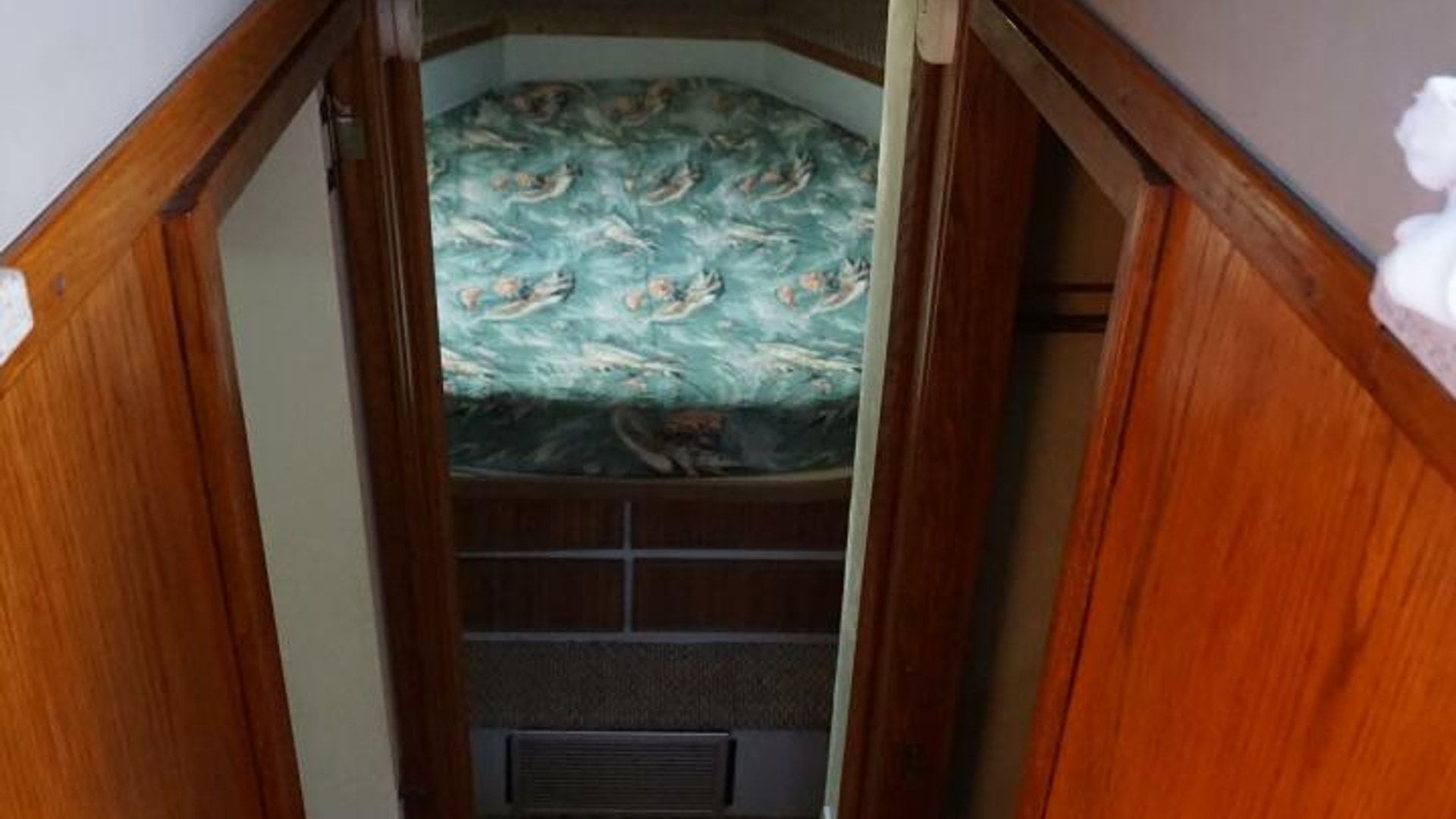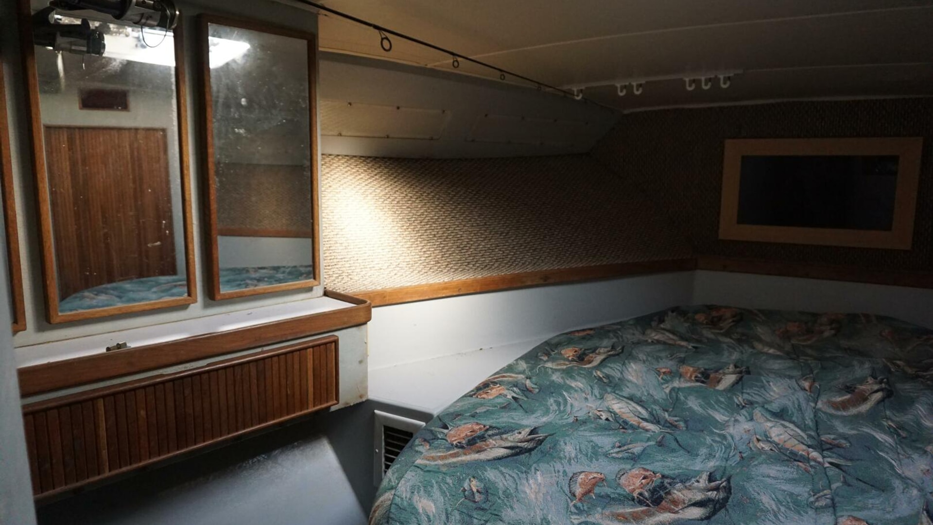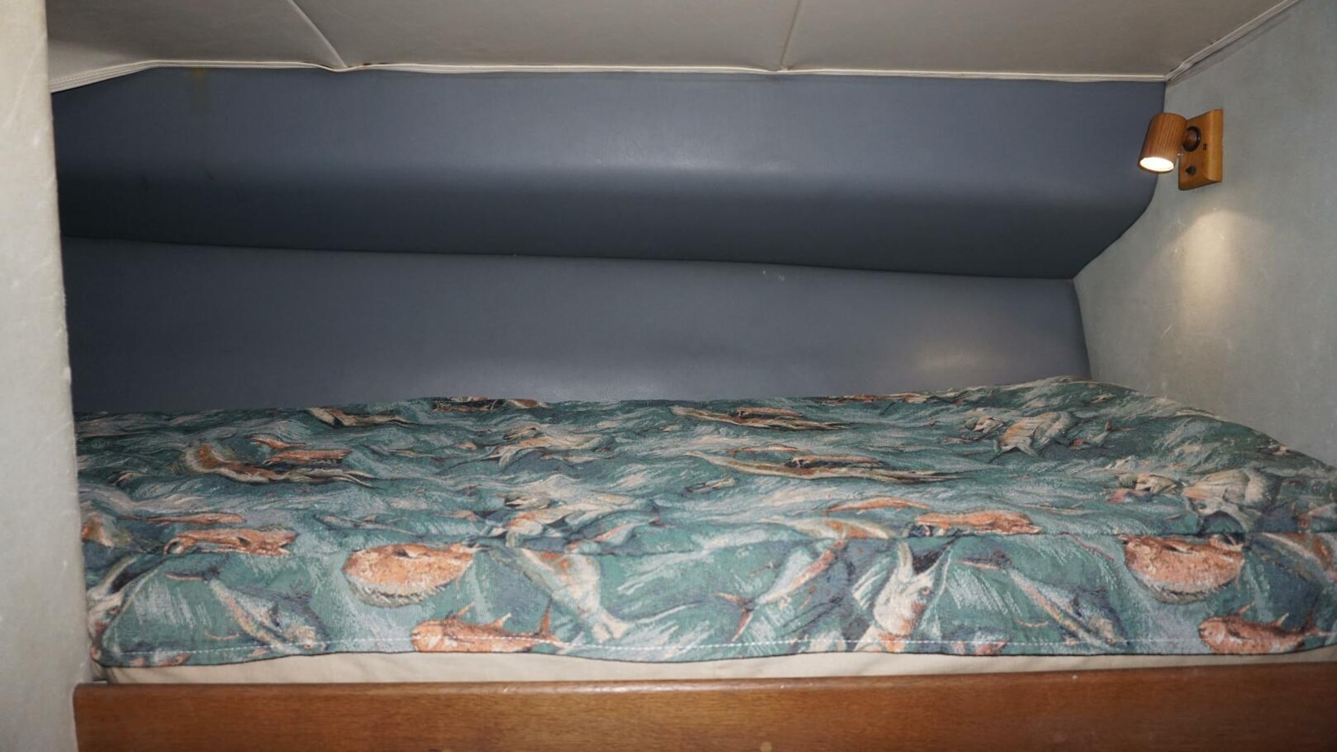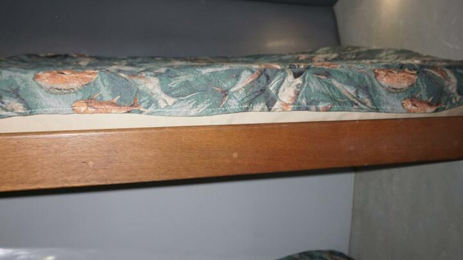 - Foam-backed vinyl-covered bulkheads with oak trim