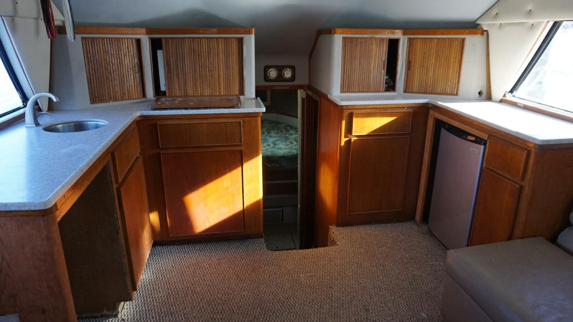 - Entrance from companionway with sliding door