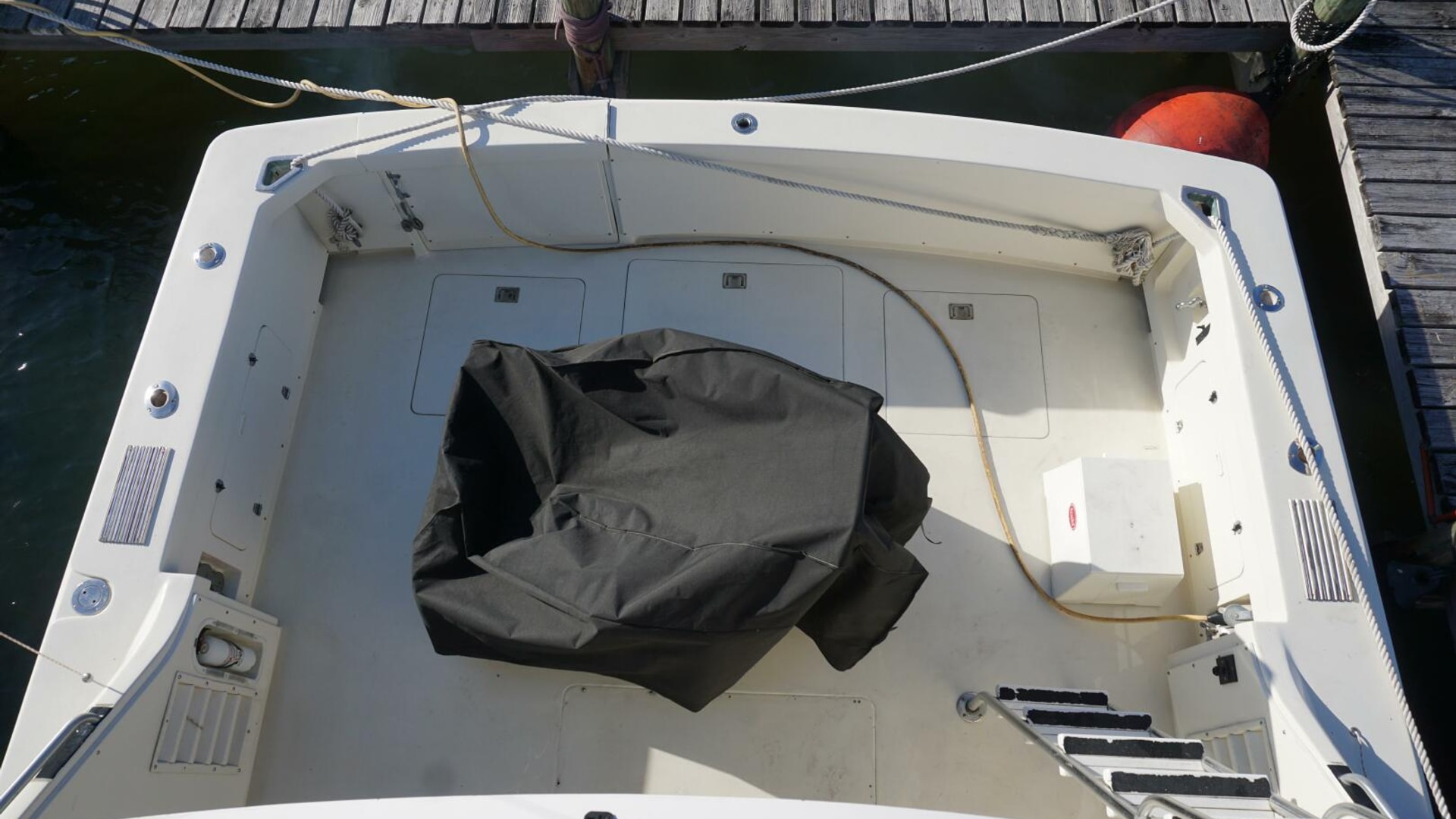 - Stowage lockers port and starboard with hinged doors