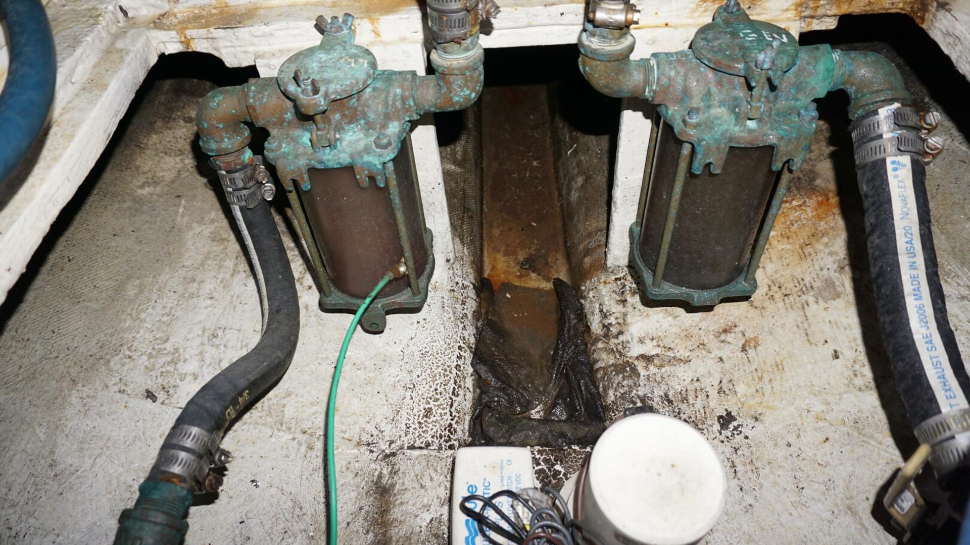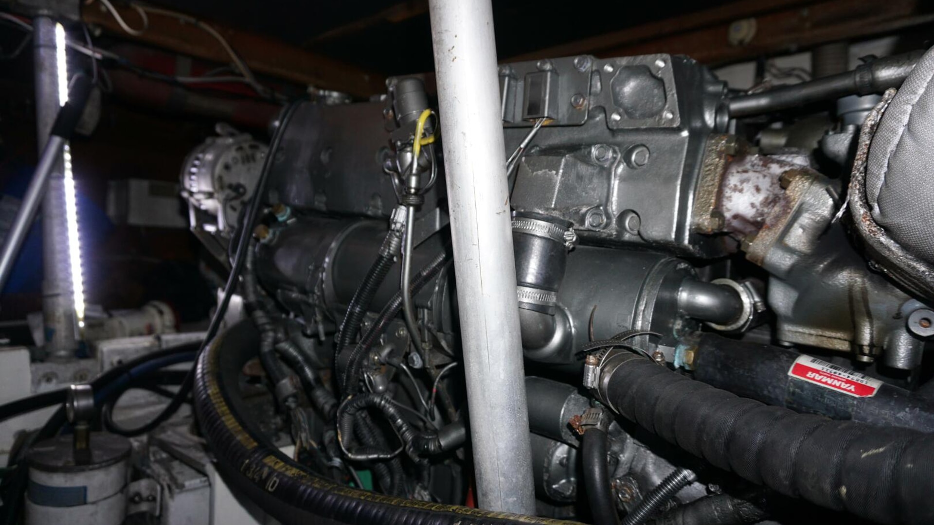 - 2018 Genset deck refitted and repainted under cockpit, New sea strainer bracket built and installed