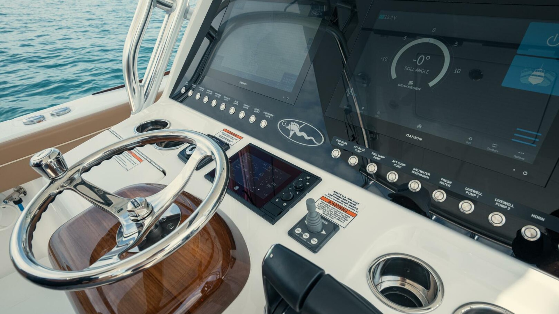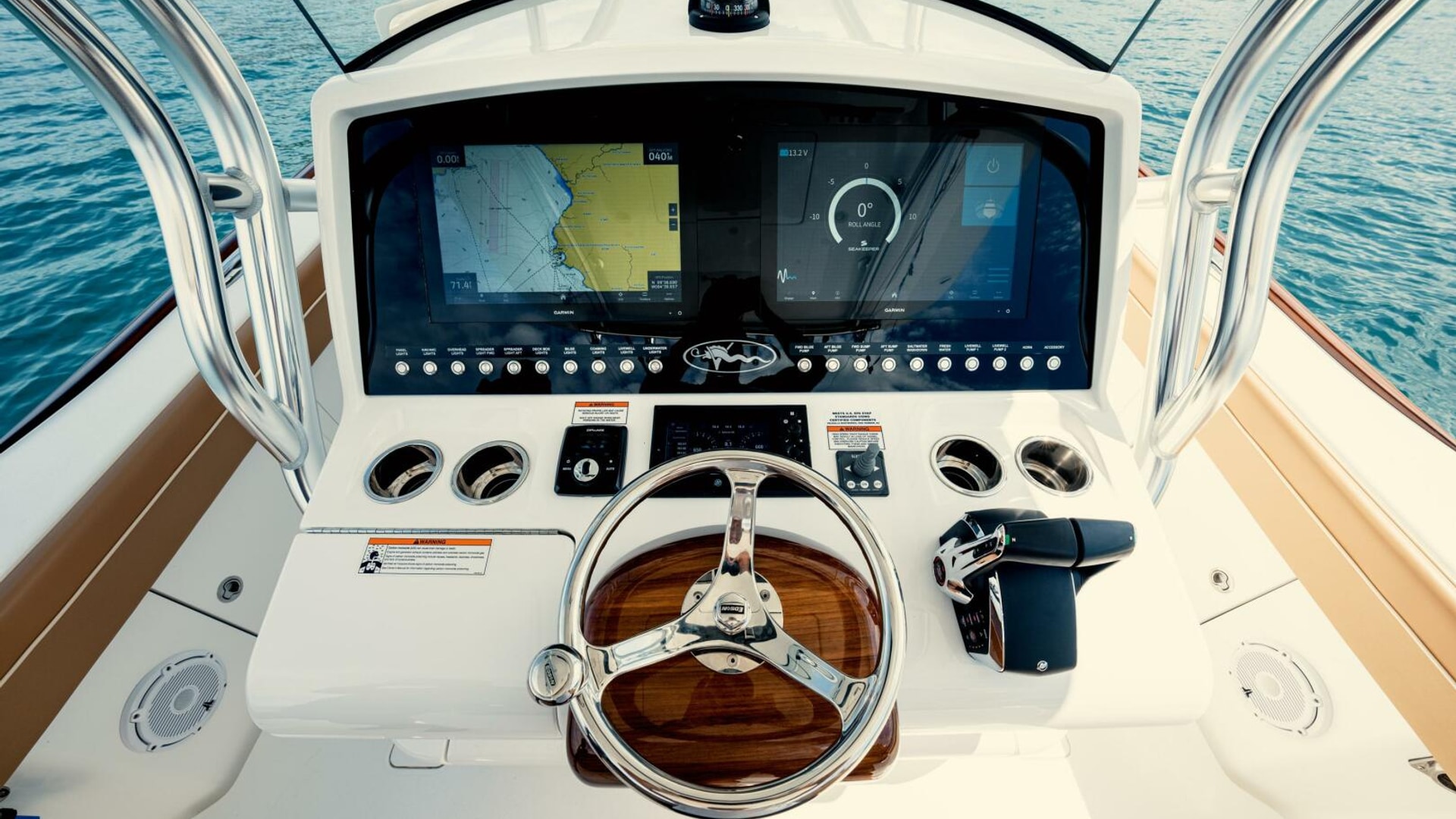 • Edson steering wheel with power knob polished stainless steel