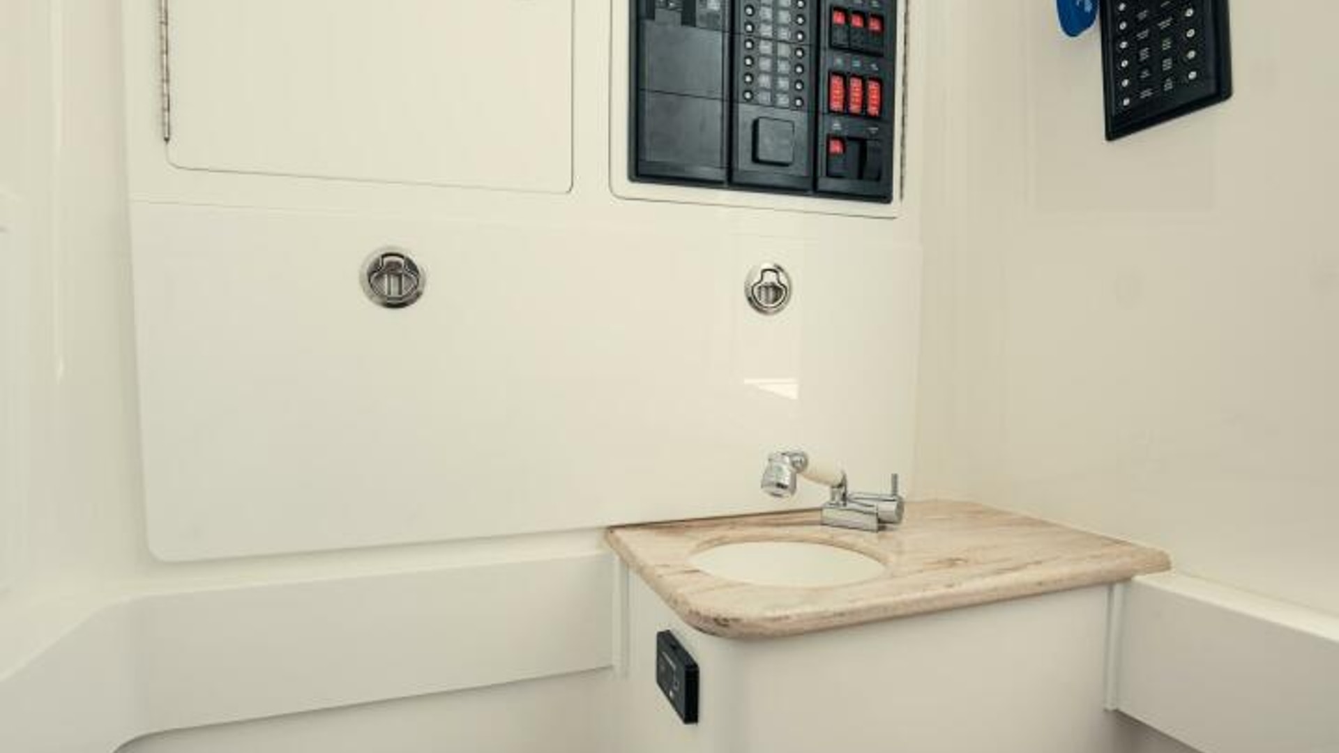 • Compass flush mounted at helm sink and retractable shower wand