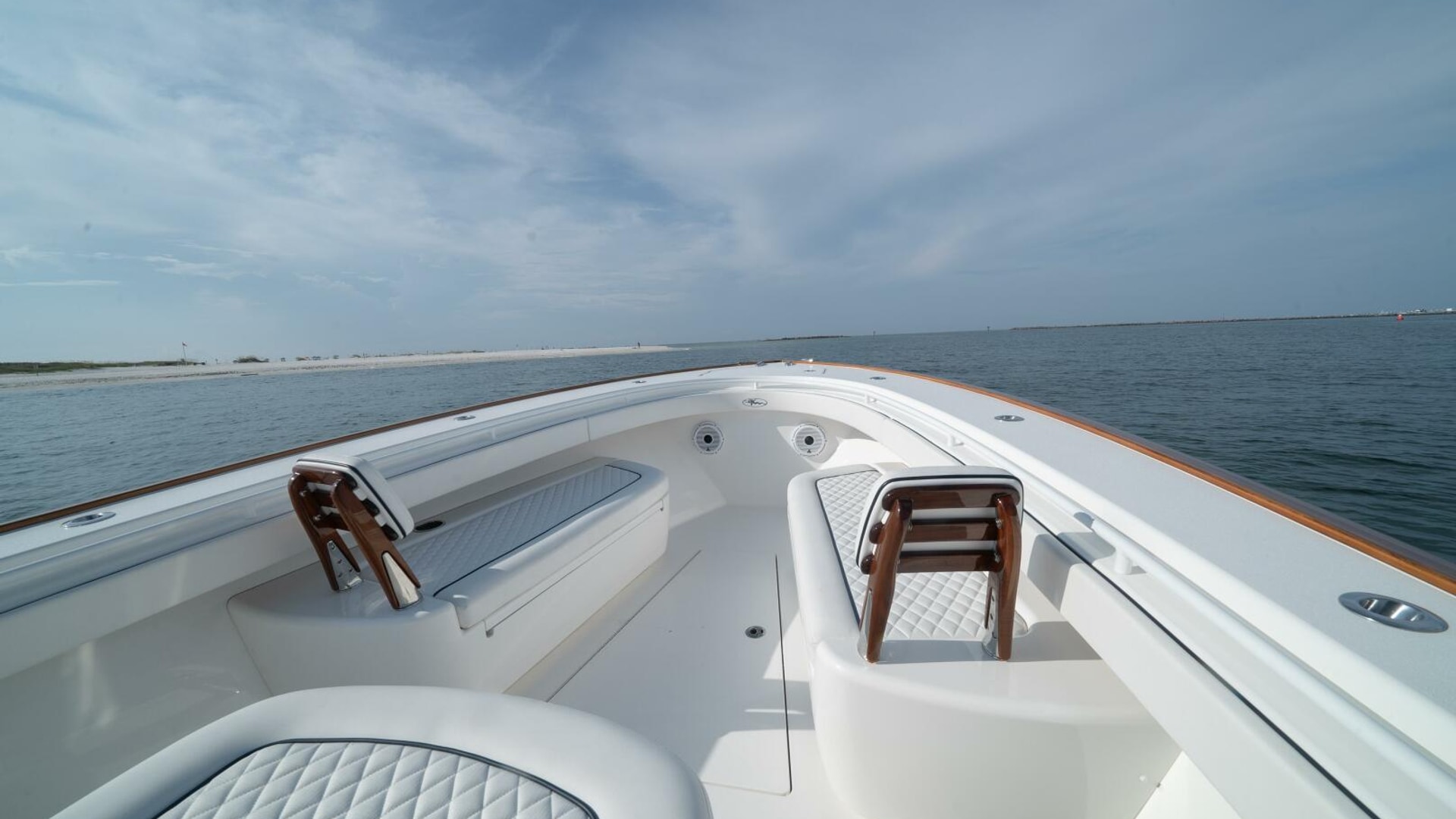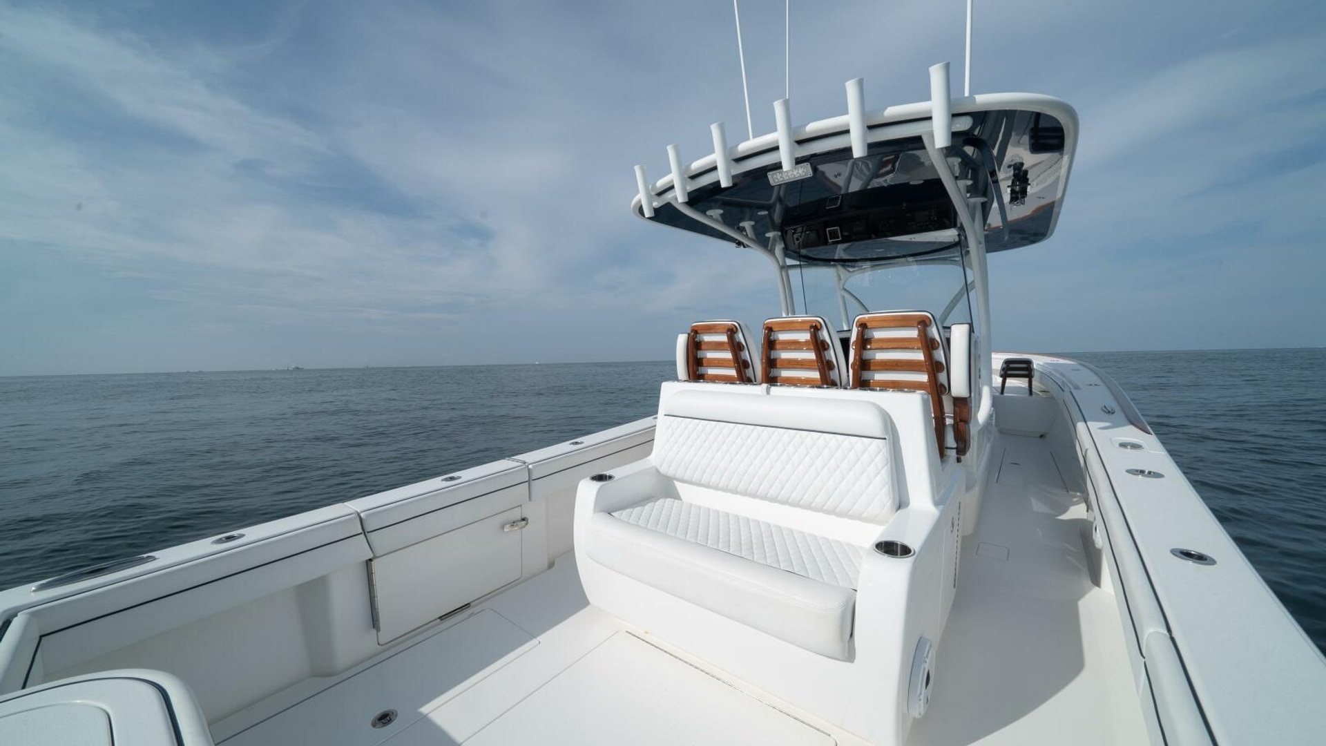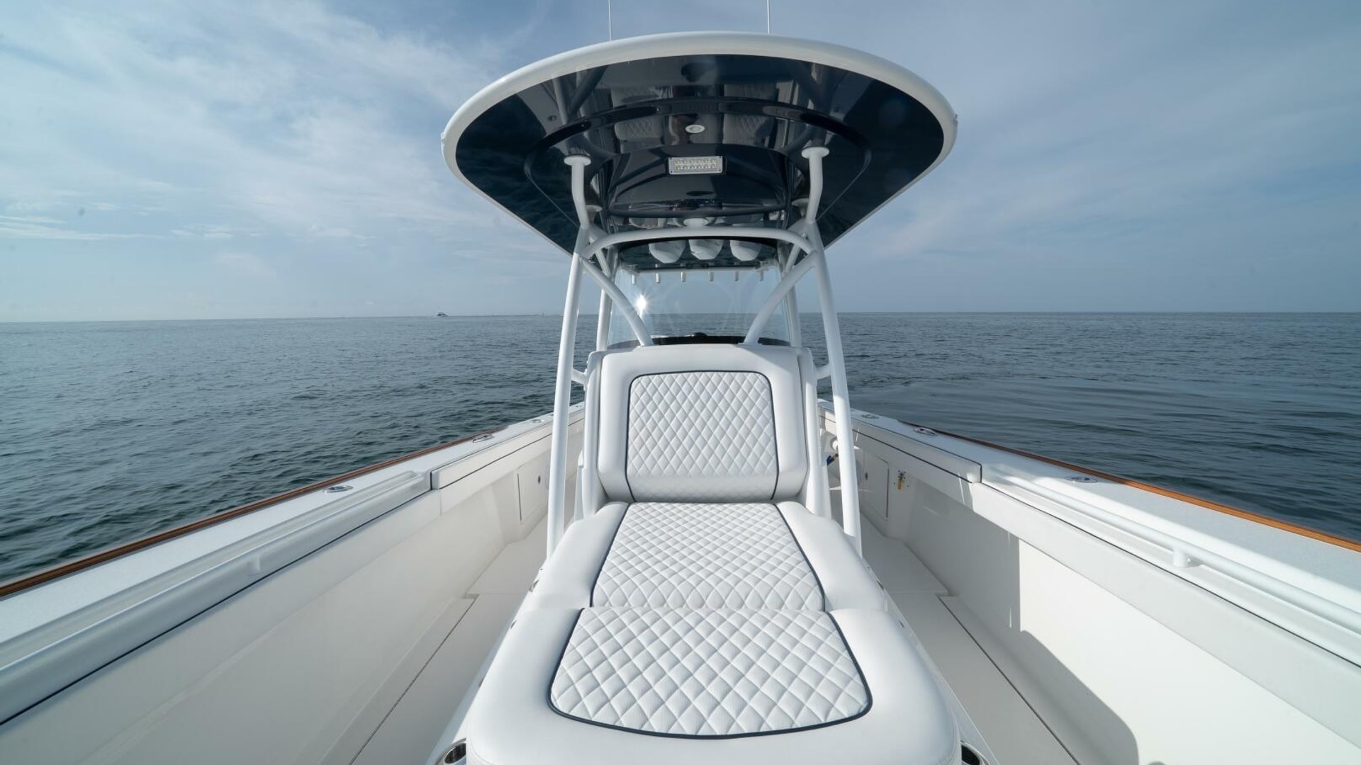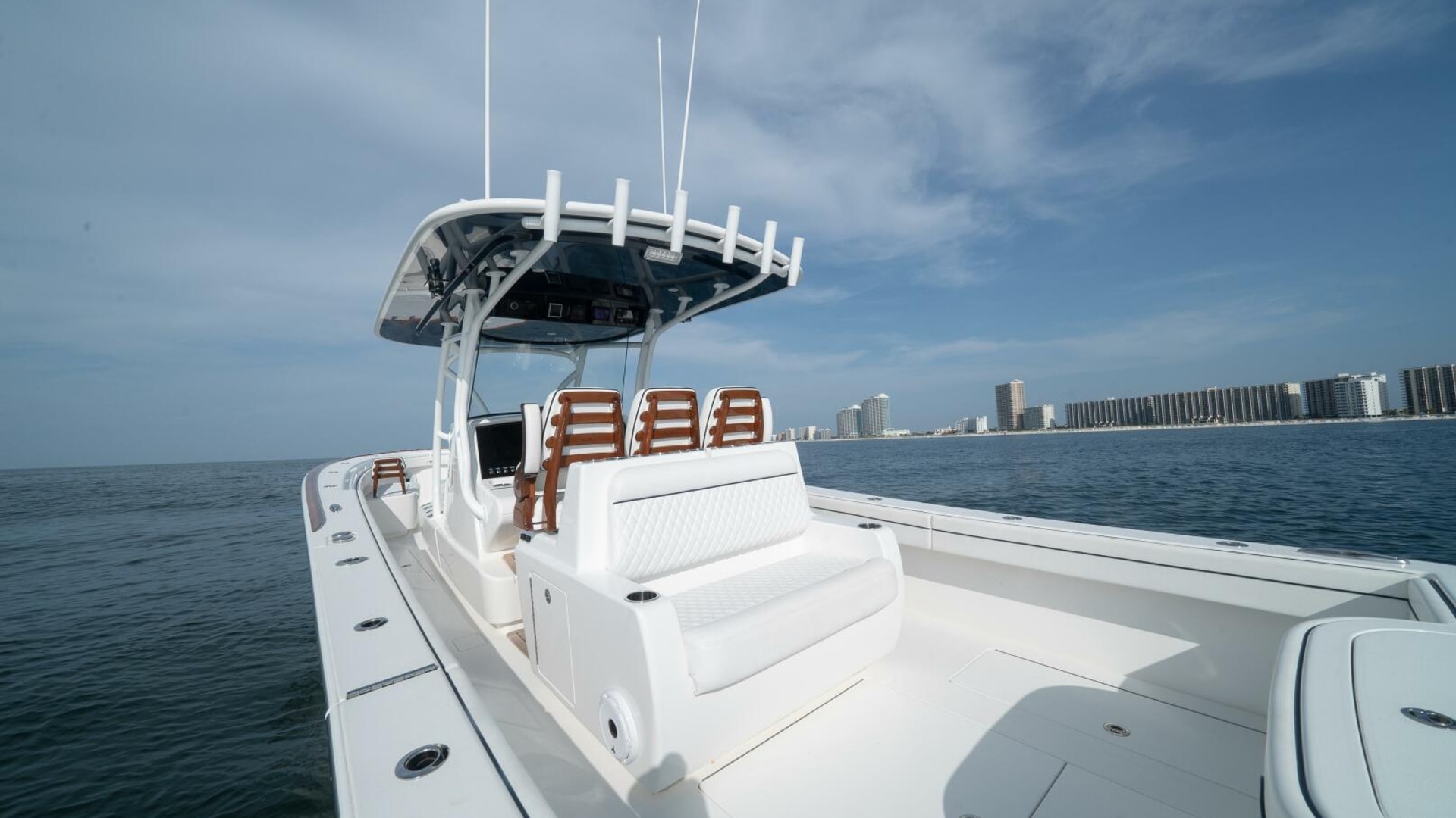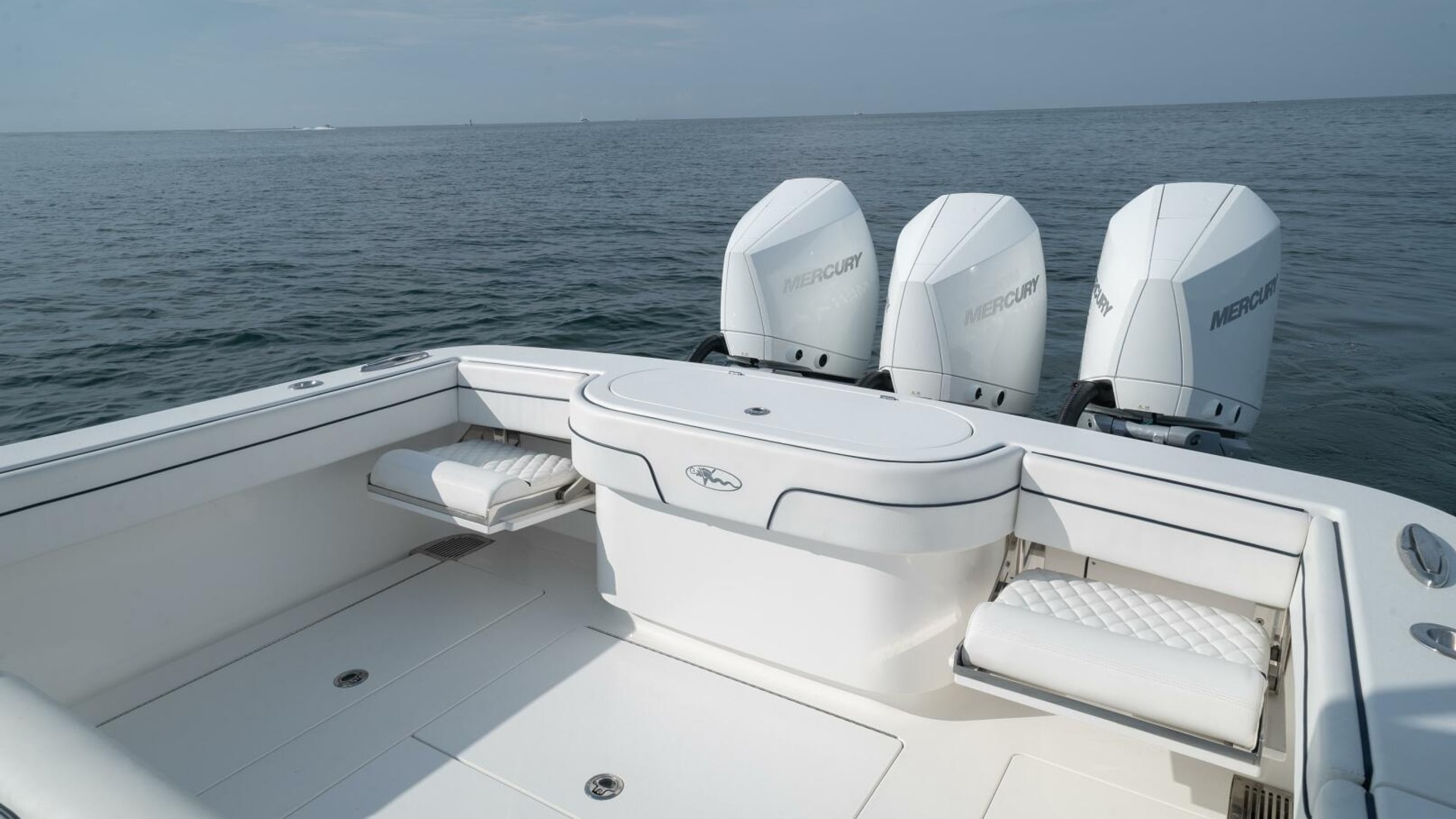 The Valhalla V37 is a high-performance center console built by Viking Yachts, designed for serious offshore fishing and luxury cruising. It features a stepped-hull design for enhanced speed, efficiency, and handling in rough seas. The V37 offers a spacious deck layout with premium Release Marine seating, integrated storage, and advanced Garmin electronics. Anglers will appreciate the large livewell, multiple rod holders, and fully rigged tackle station behind the mezzanine. With triple 300 Hp outboard power options, the V37 delivers impressive speed, reliability, and range.