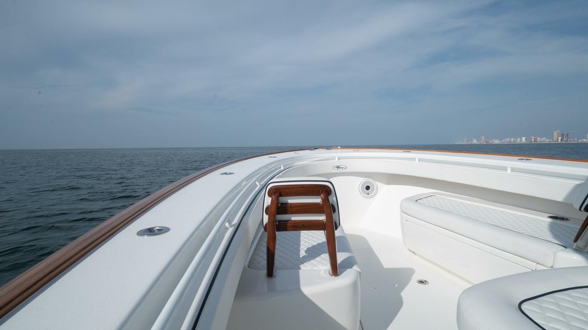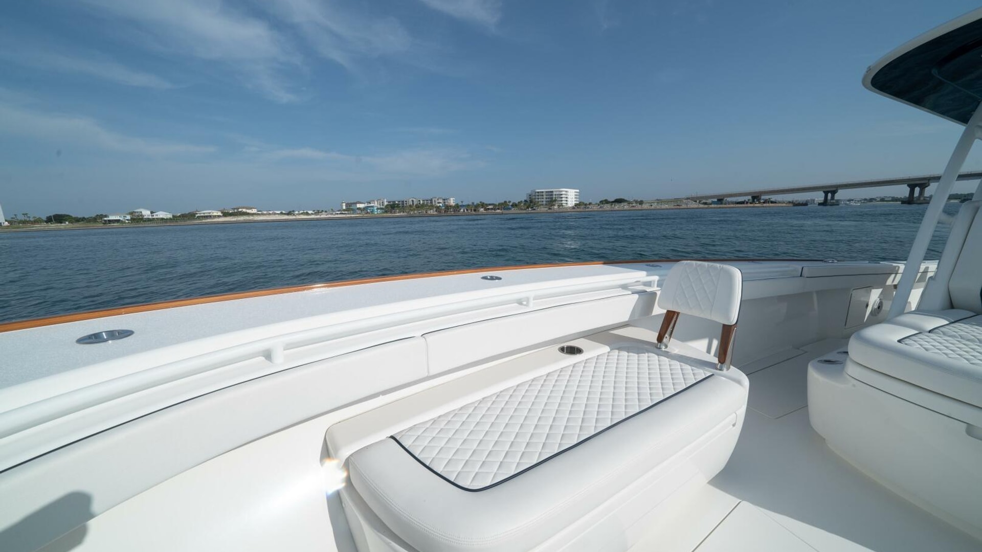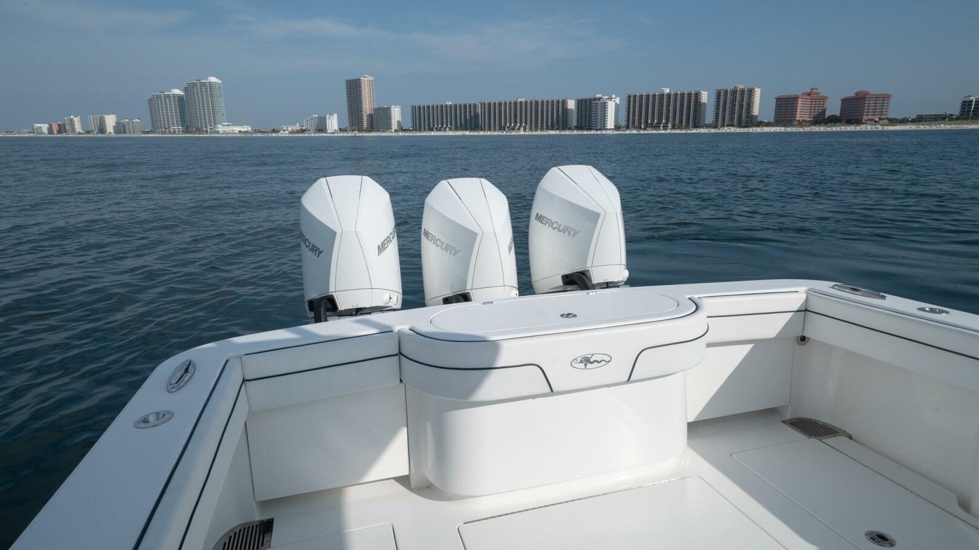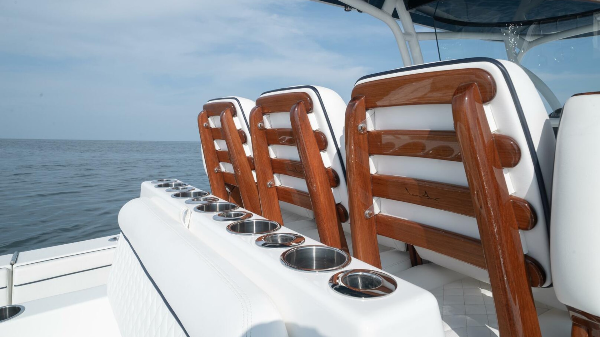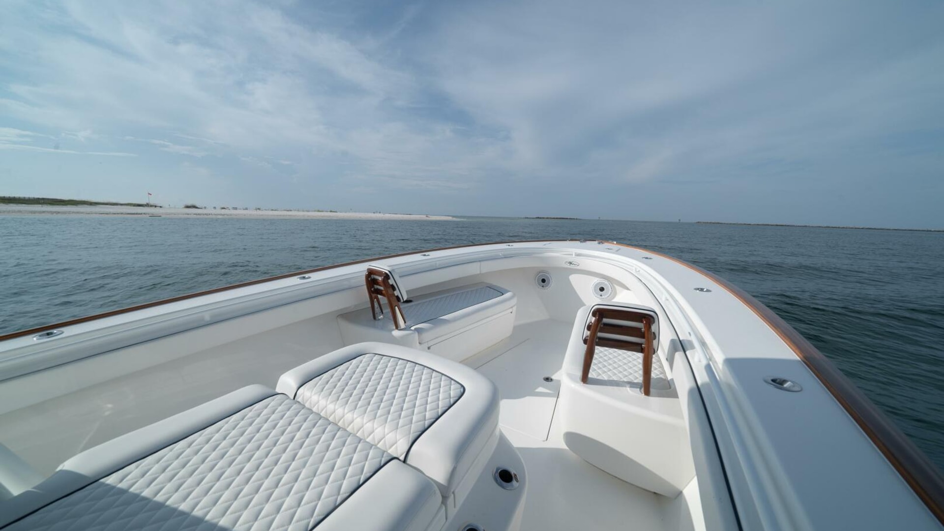 The Valhalla V37 is a high-performance center console built by Viking Yachts, designed for serious offshore fishing and luxury cruising. It features a stepped-hull design for enhanced speed, efficiency, and handling in rough seas. The V37 offers a spacious deck layout with premium Release Marine seating, integrated storage, and advanced Garmin electronics. Anglers will appreciate the large livewell, multiple rod holders, and fully rigged tackle station behind the mezzanine. With triple 300 Hp outboard power options, the V37 delivers impressive speed, reliability, and range.
