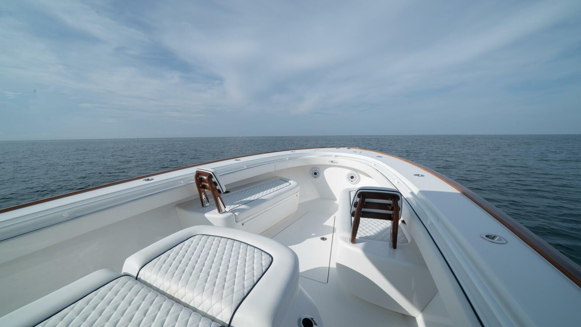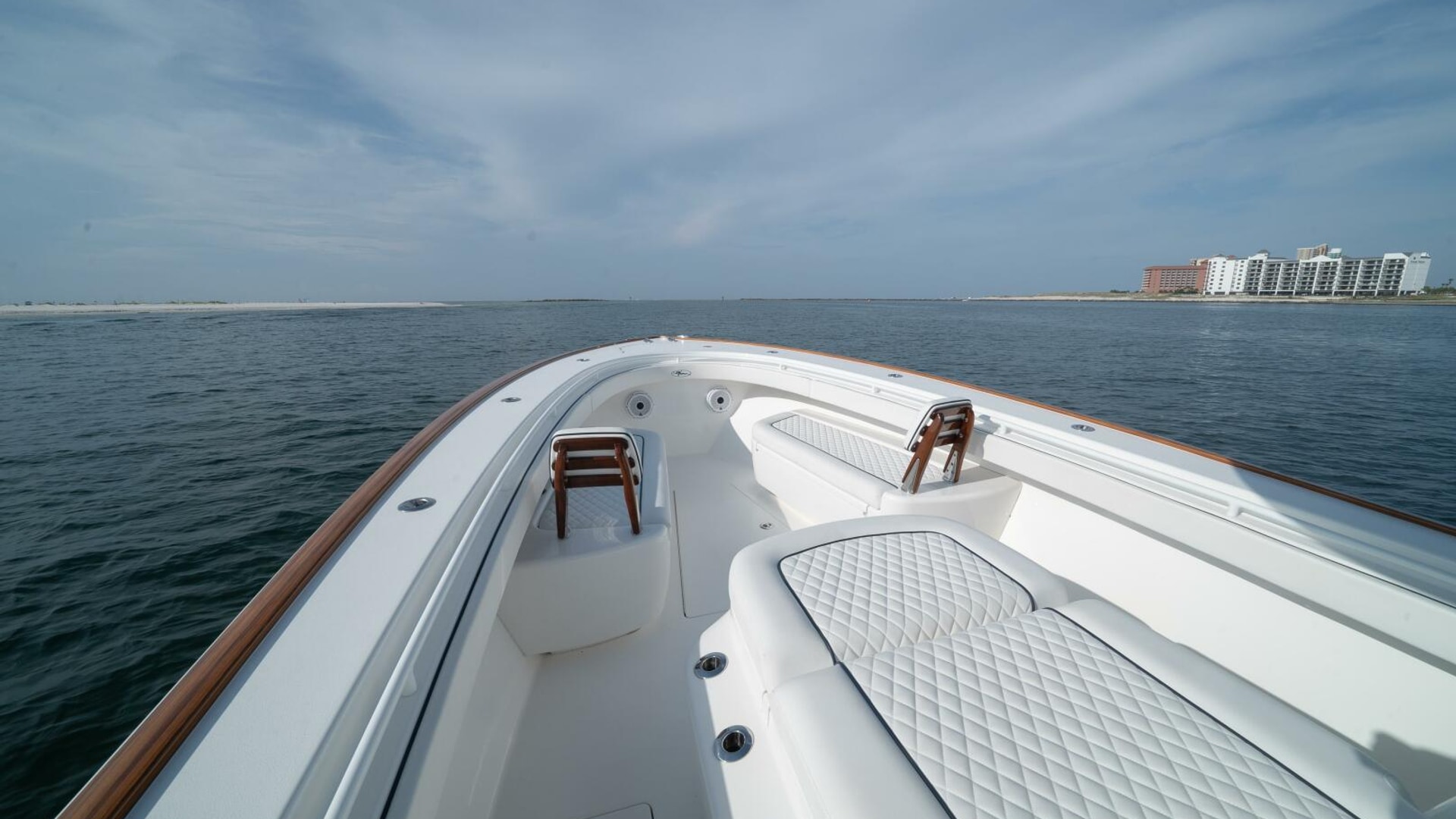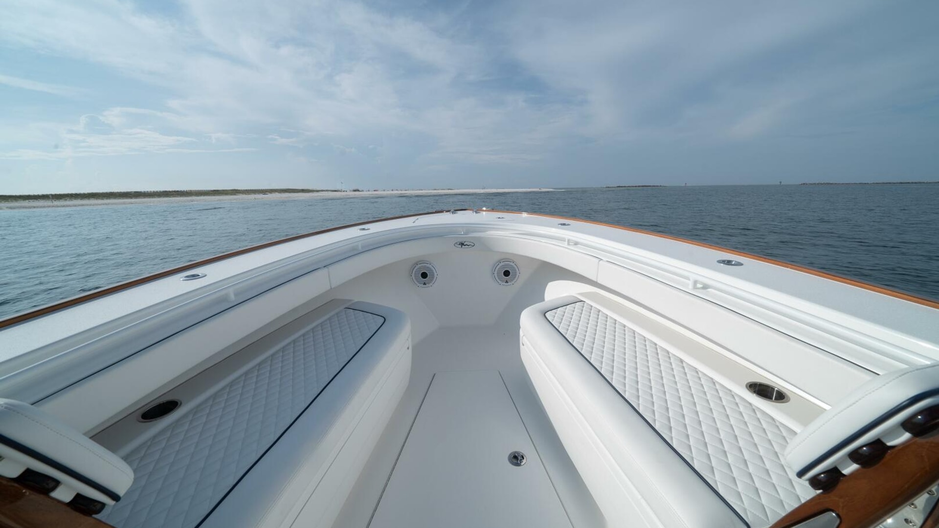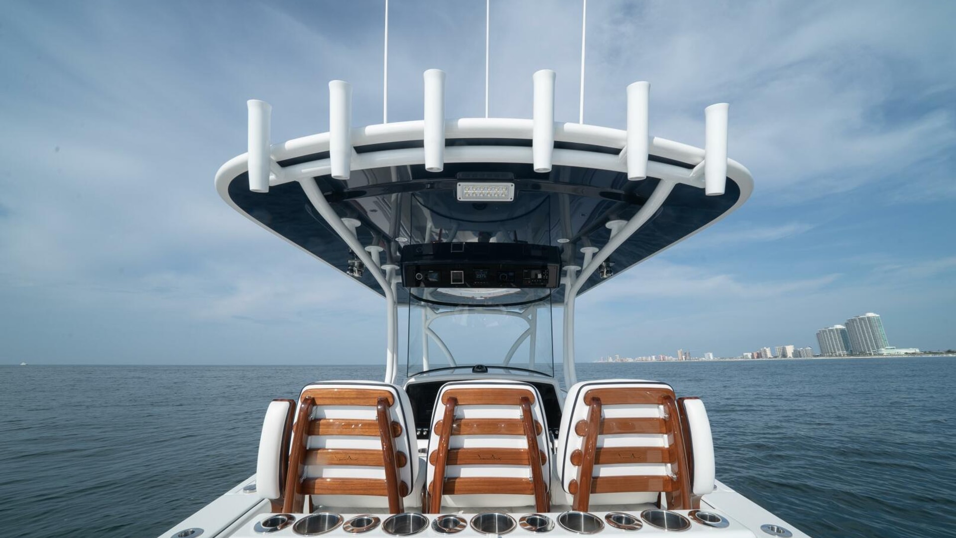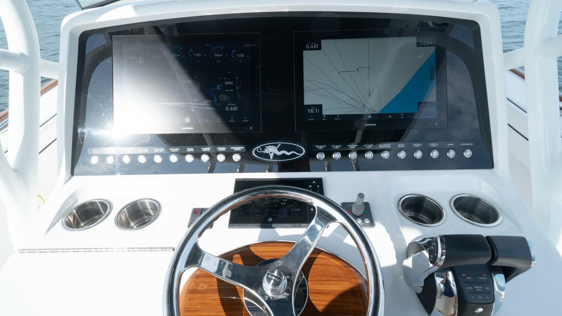 The Valhalla V37 is a high-performance center console built by Viking Yachts, designed for serious offshore fishing and luxury cruising. It features a stepped-hull design for enhanced speed, efficiency, and handling in rough seas. The V37 offers a spacious deck layout with premium Release Marine seating, integrated storage, and advanced Garmin electronics. Anglers will appreciate the large livewell, multiple rod holders, and fully rigged tackle station behind the mezzanine. With triple 300 Hp outboard power options, the V37 delivers impressive speed, reliability, and range.