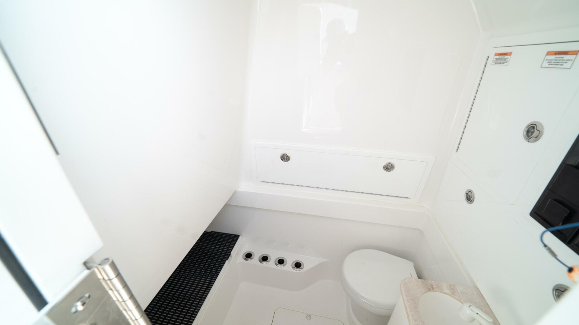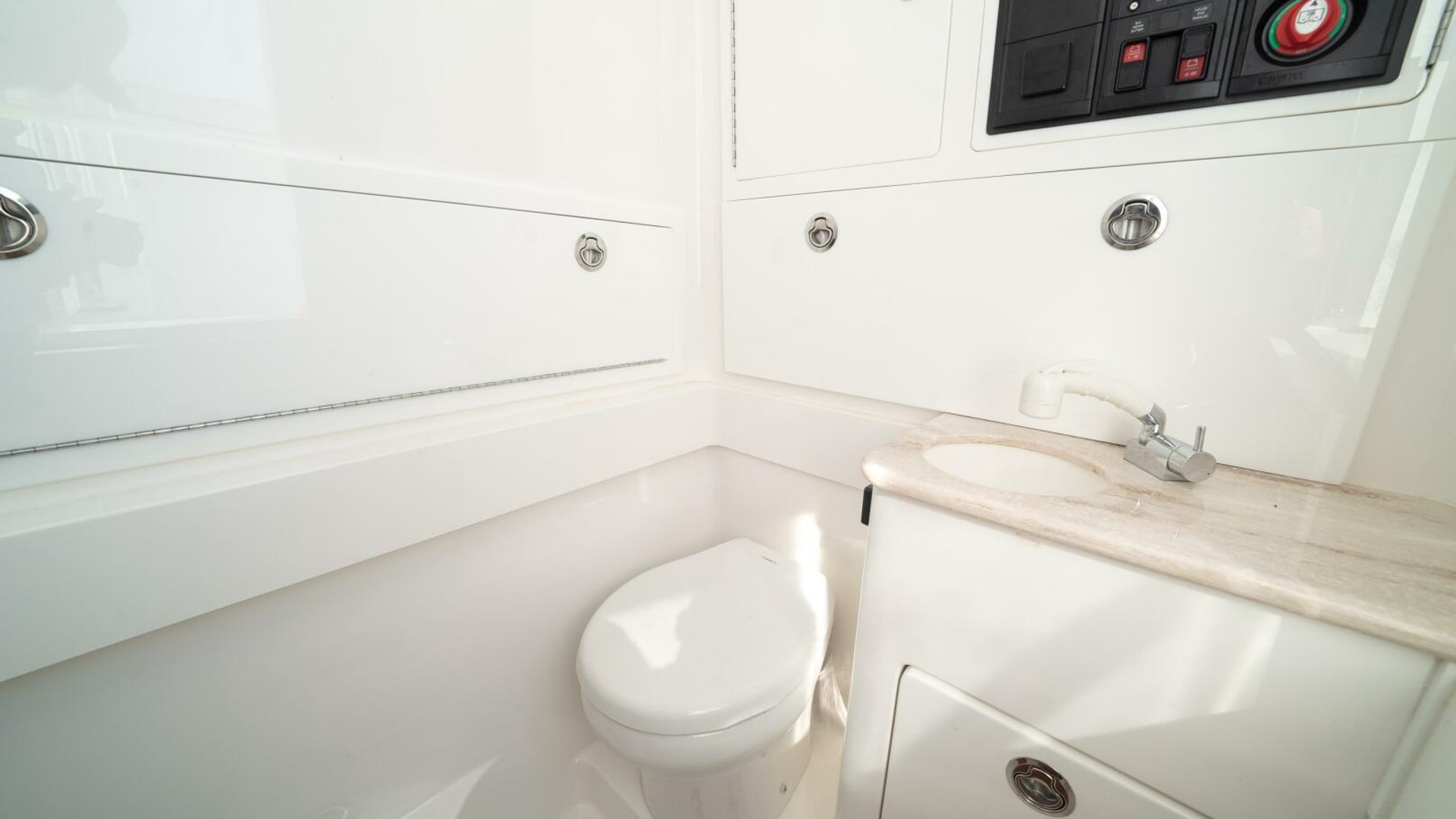 • Molded-in vanity w/ freshwater sink and retractable shower wand