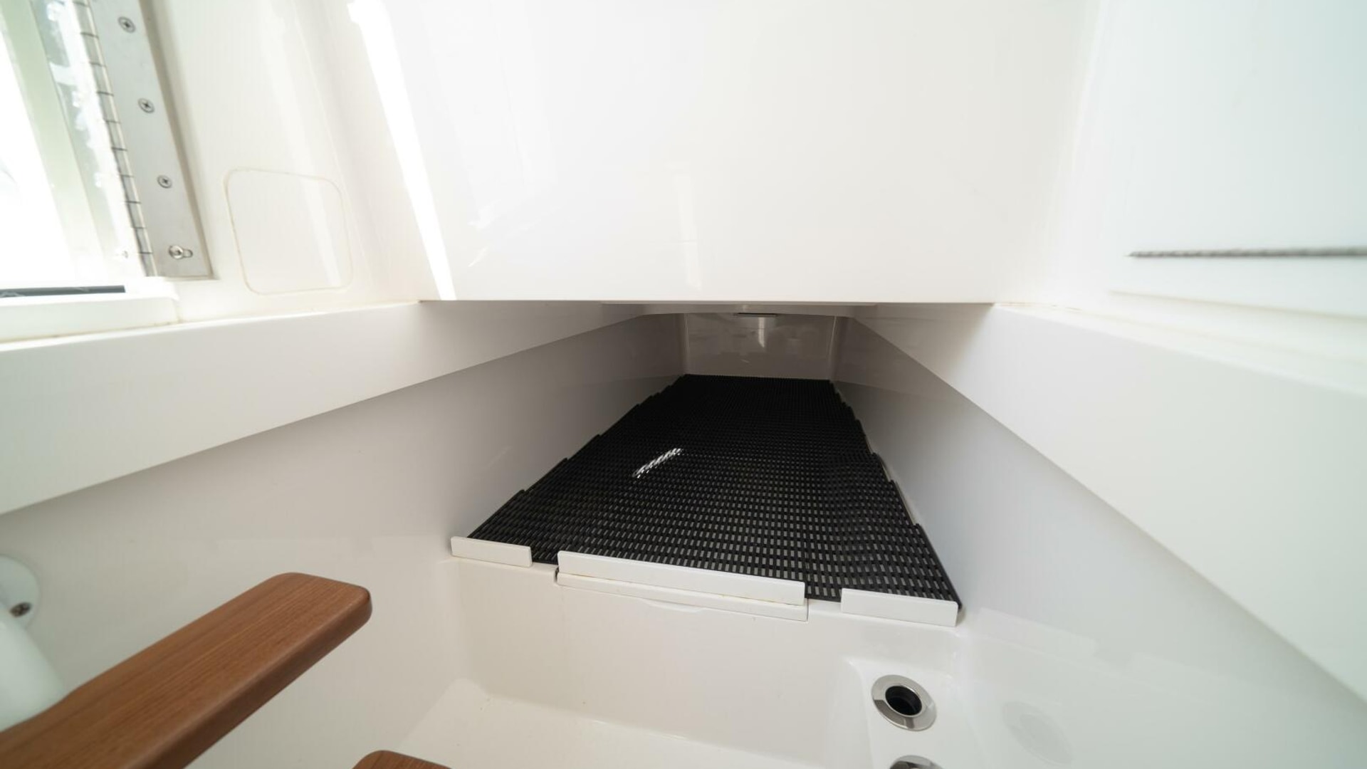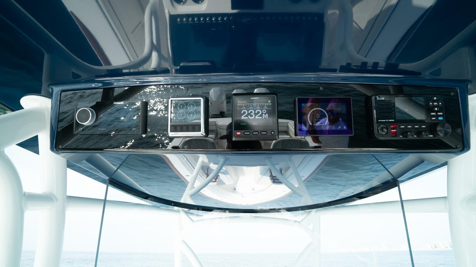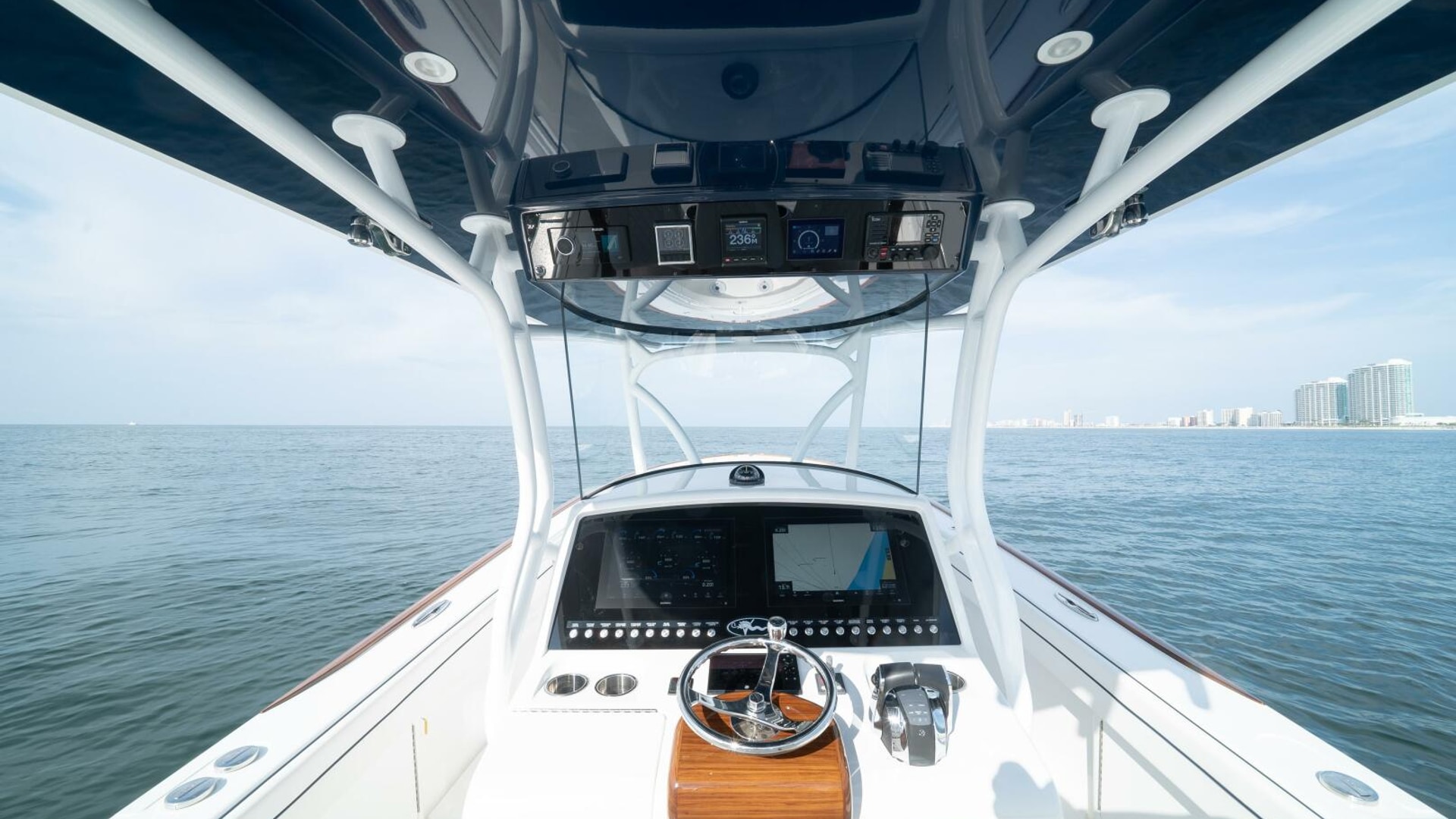 • Helm seating, mezzanine bench with armrests/tackle storage/cooler