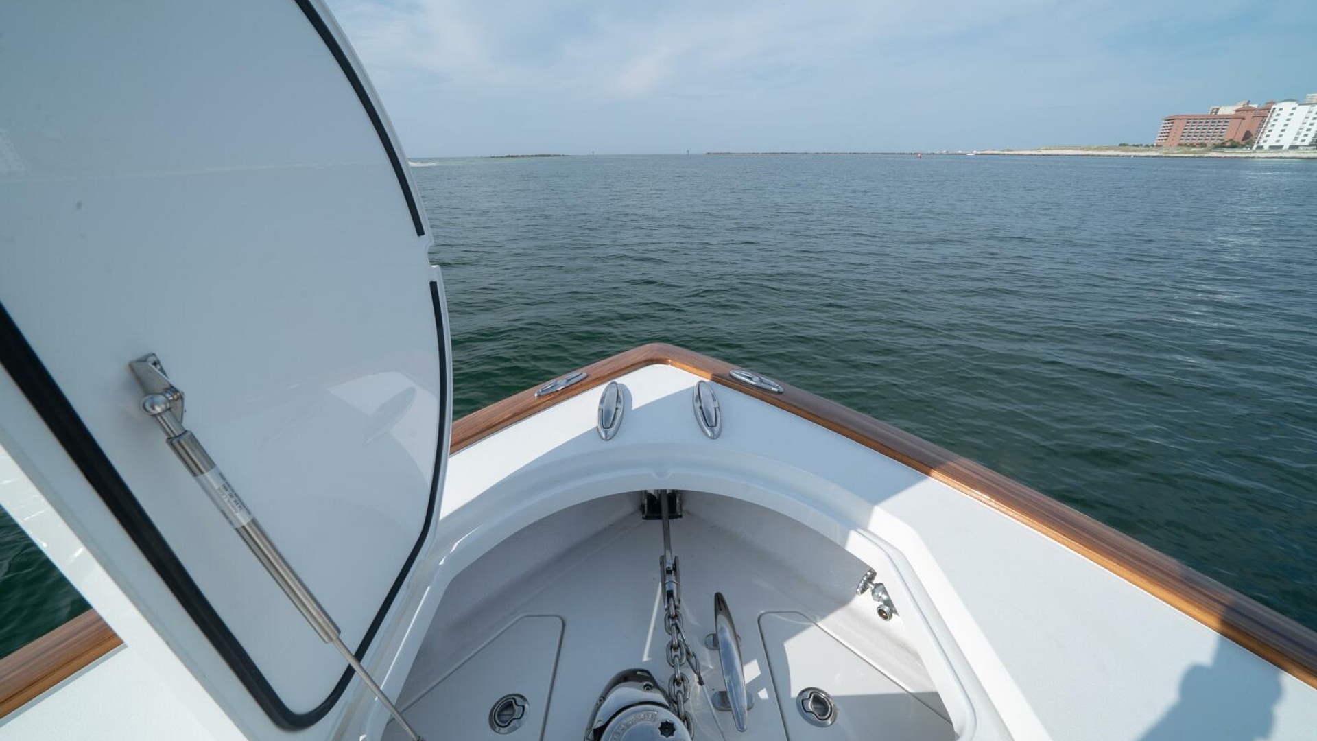 • Anchor chute through stem w/ stainless plow anchor, windlass