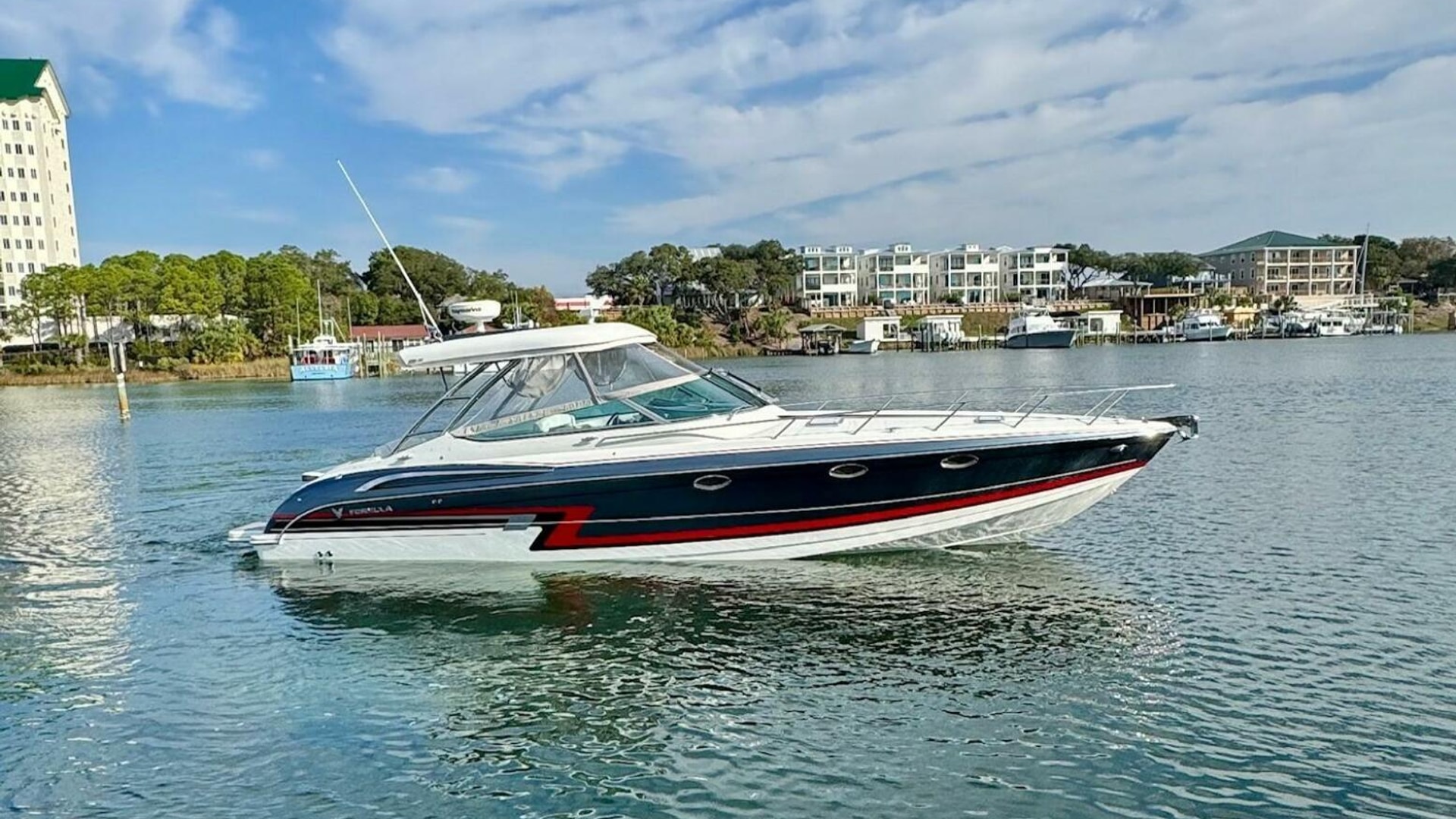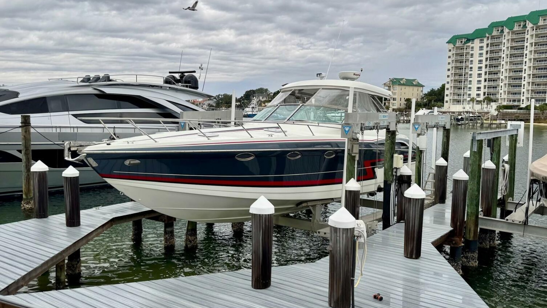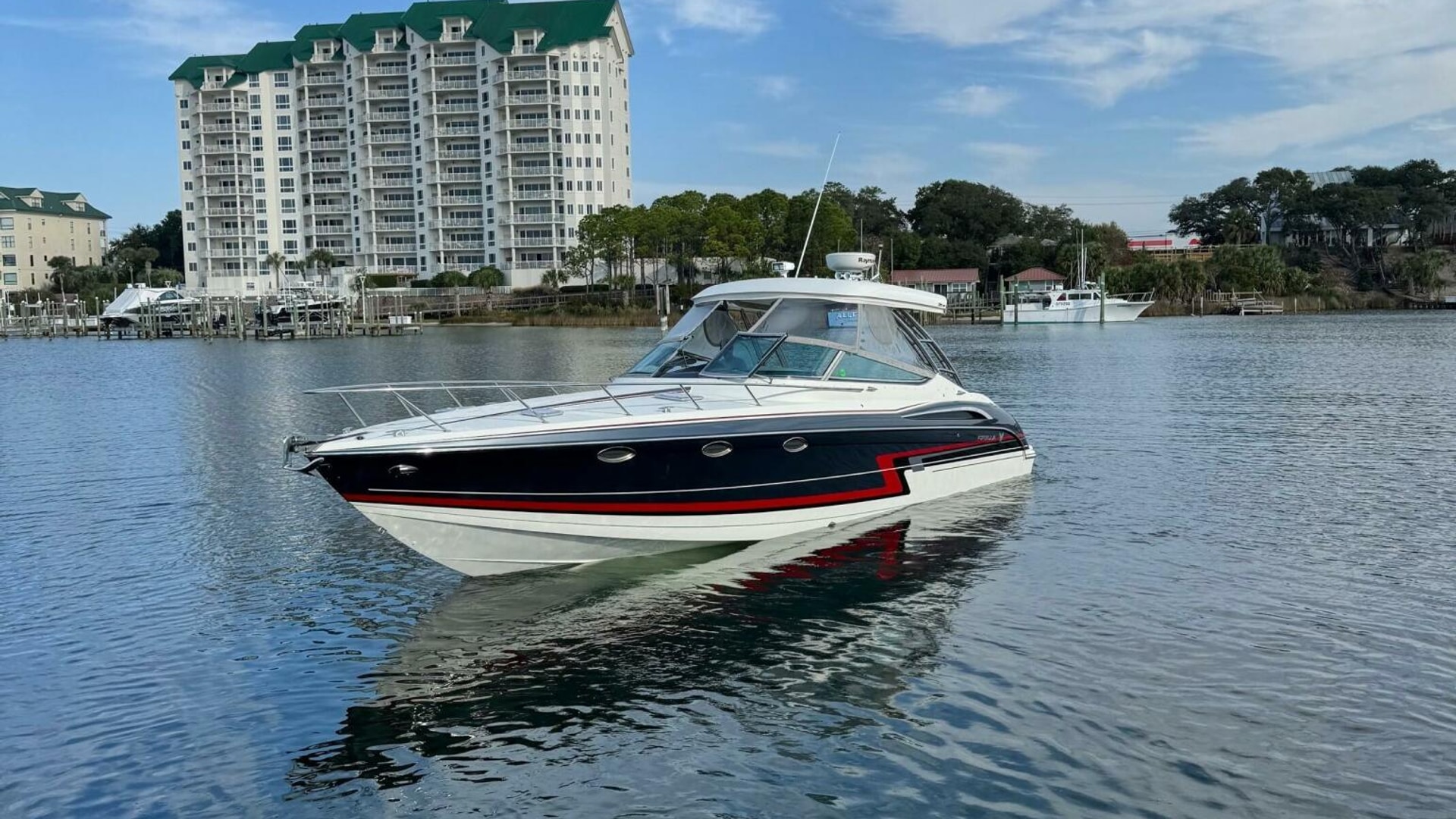 2016 37' Formula 370 Super Sport "Hoody" for sale- This Formula 370 Super Sport sits high and dry on a lift and is maintained by a yacht management company. She’s super sleek with a low profile that cuts through wind and waves with ease. She also has a complete cabin to take you to those overnight spots or long afternoon naps. The 370 SS cockpit adds more versatility than ever with a doublewide captain’s helm, wet bar, and sun lounger. Drive in style with easy joystick controls, with a fully equipped radar and chart plotter. The aft-facing lounge is electrically activated to create a generous sun pad. There's also a hard top with Sure Shade. Her expertly presented textures and colors, recessed alcoves with stainless railing, integrated, blue LED lighting, and cupholders set in eye-catching Corian® position the 370 SS at the forefront of marine design. Contact us today for an immediate showing.