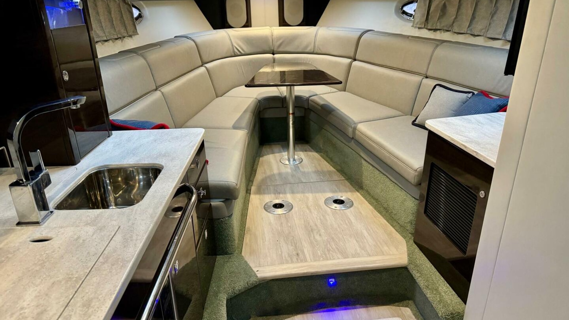 - Aft-facing sun lounge package w/storage below for tables, cushions & four fenders-converts to full-length sunpad