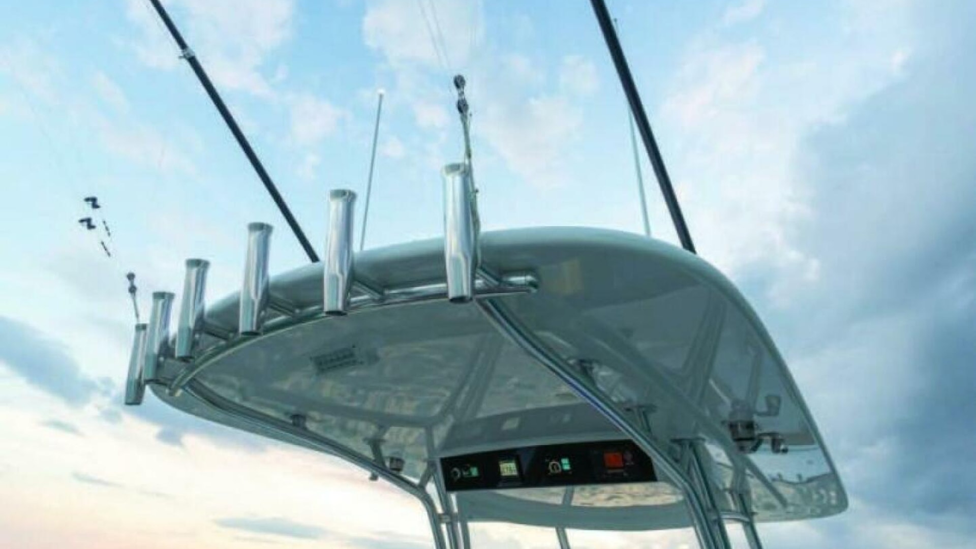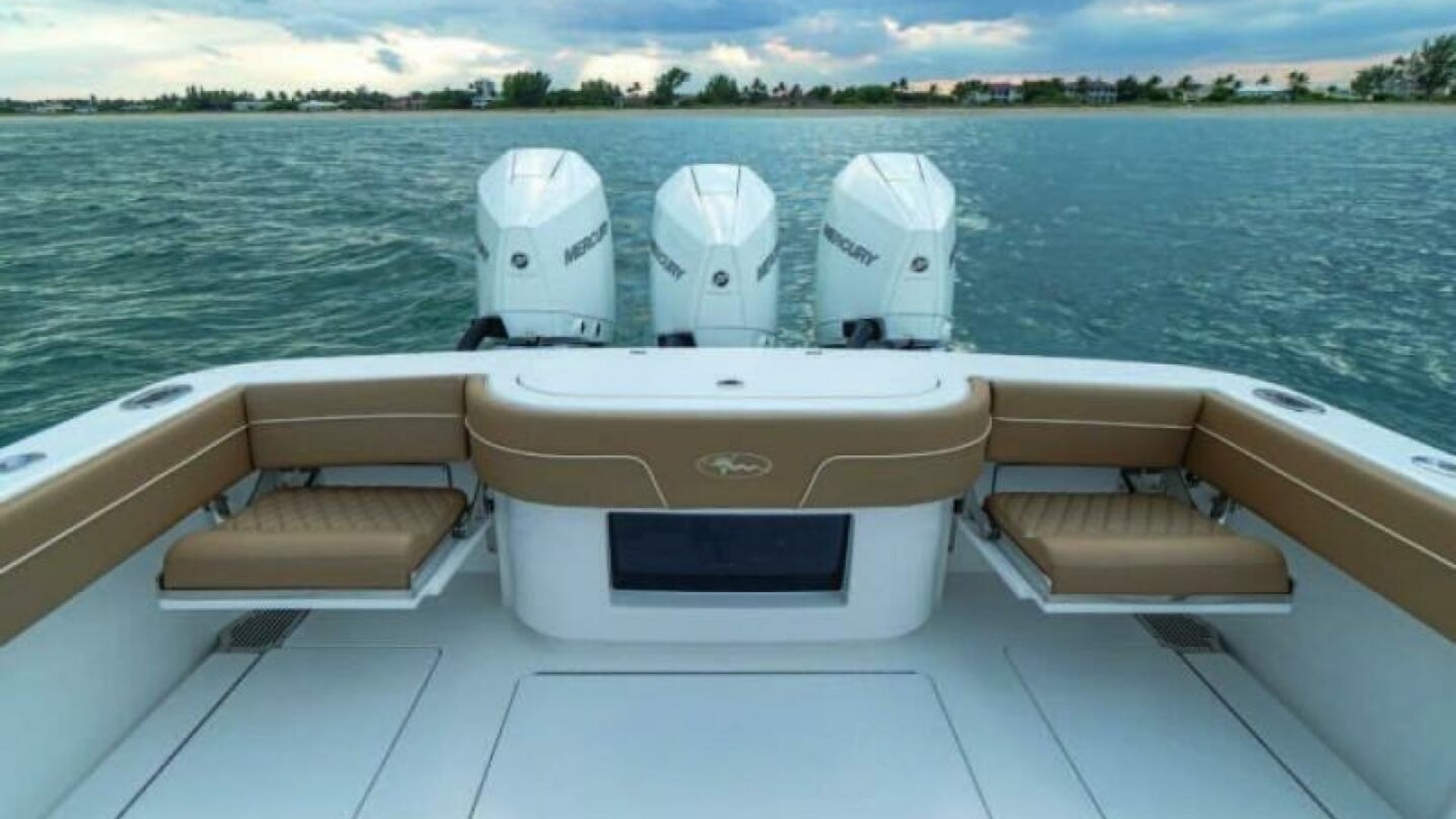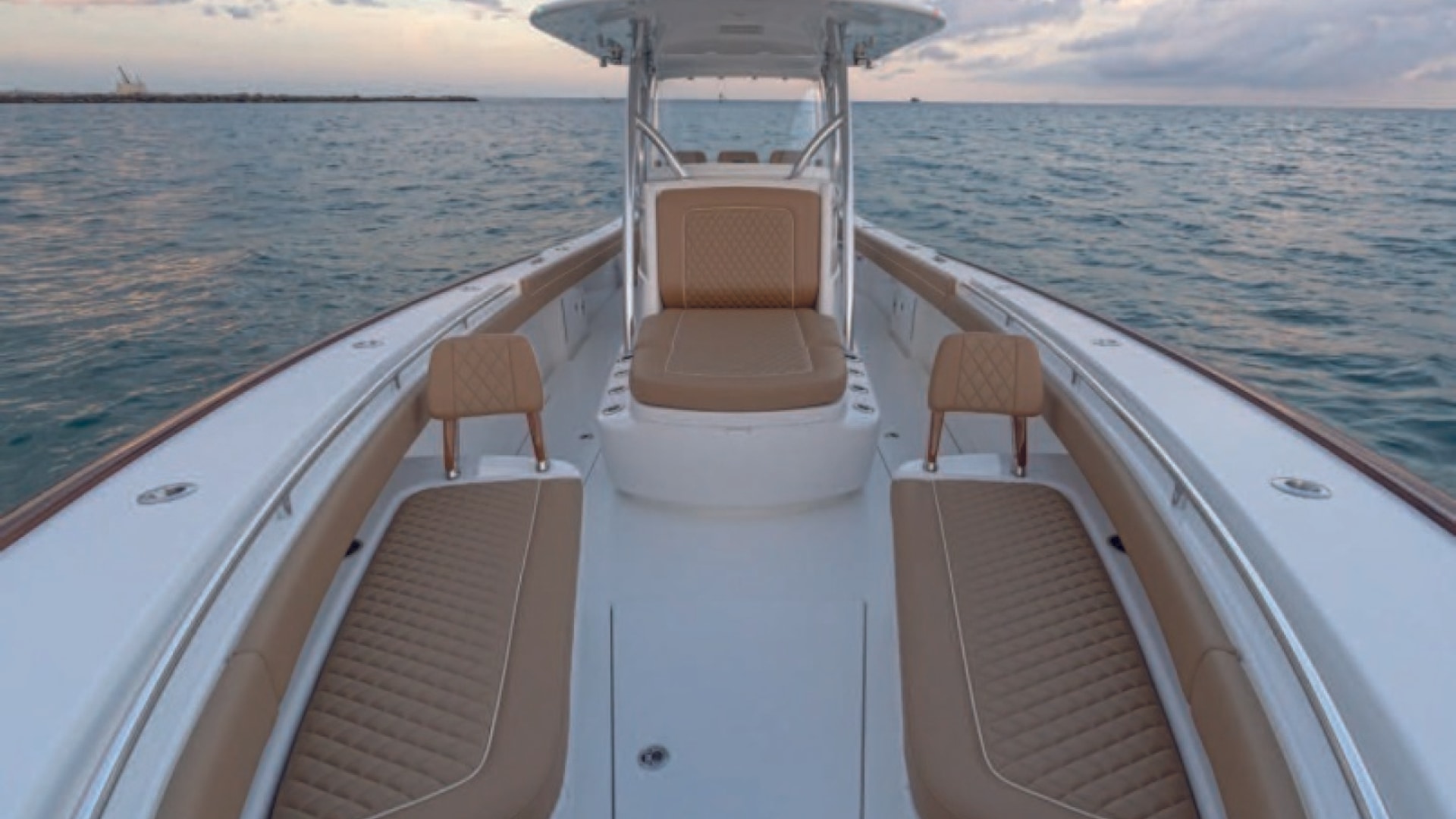 The V-37 is the result of the cooperative effort of the Viking design and engineering team, and Michael Peters Yacht Design. The V-series utilizes a stepped-V ventilated tunnel running surface that reduces drag while increasing speed, stability and efficiency. The model presents proud bows, gently sloping S-shaped sheers, double forward chines, helm pods, raised toe rails and mezzanine seating.