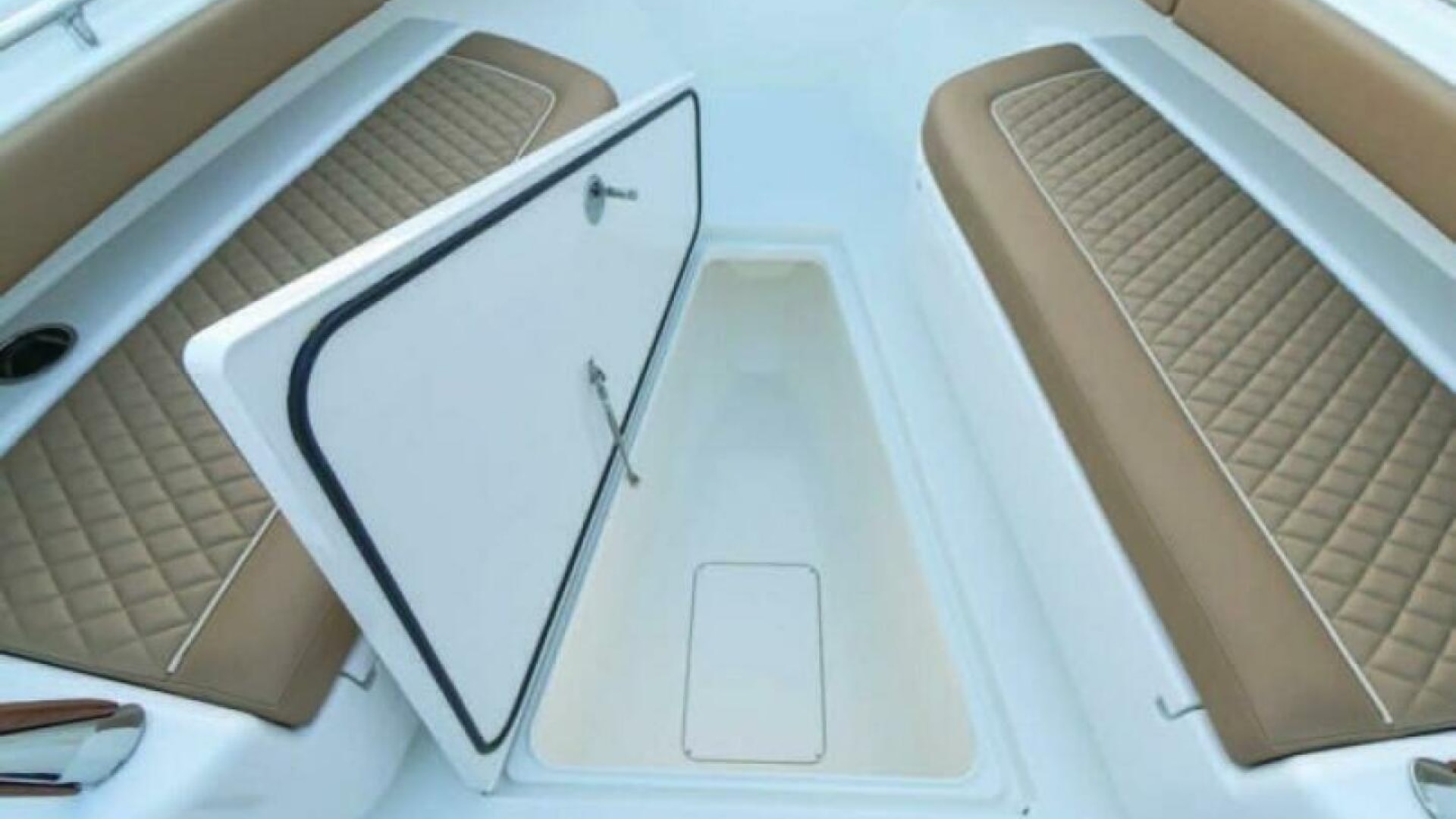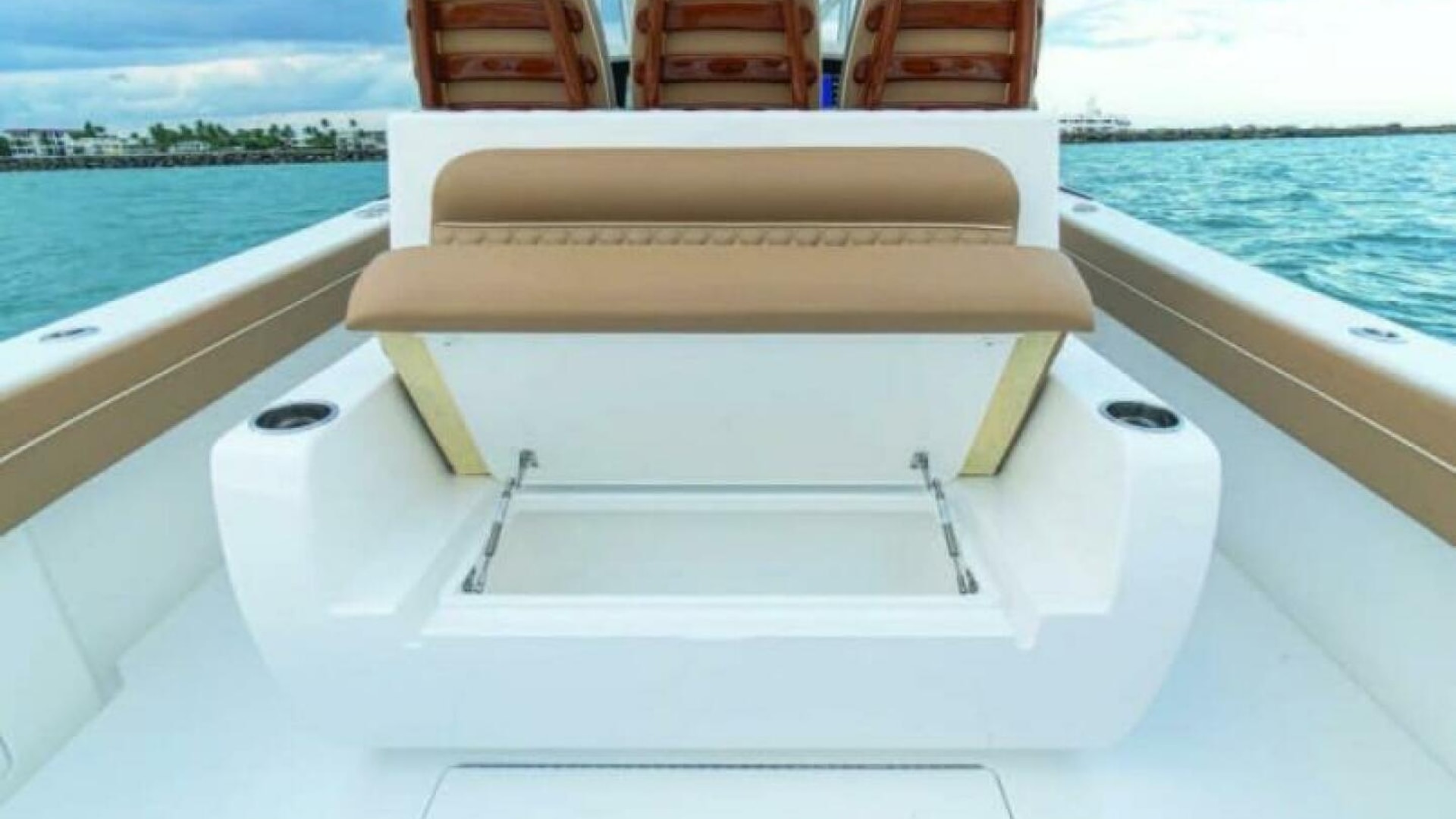 On deck, a raised transom livewell, in deck fish boxes, rod holders, port dive door and an abundance of storage space are just a few of the standard features on the V-37. Also featured is a forward console lounge and optional port and starboard forward seating with forward facing backrests. The consoles of the V-series boats will feature rod storage, a head, sink, and access to electronics, electrical distribution panel and other critical components.