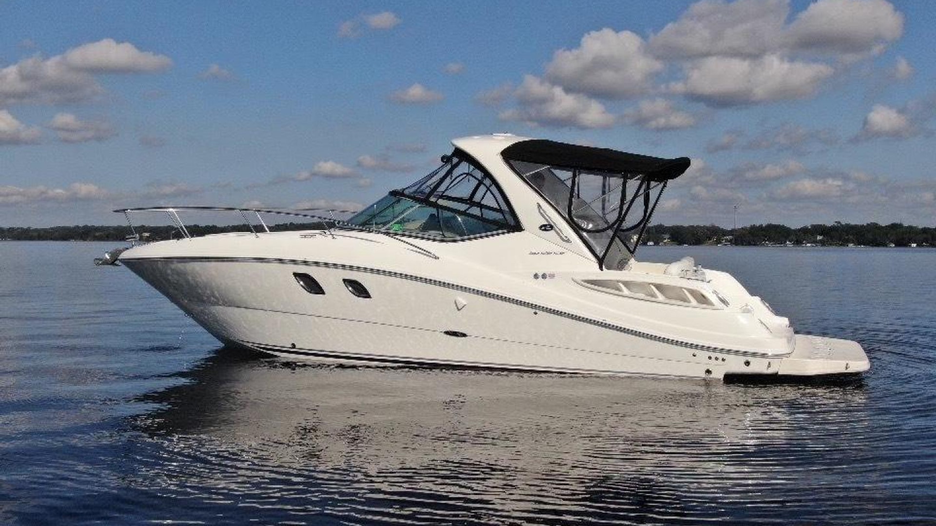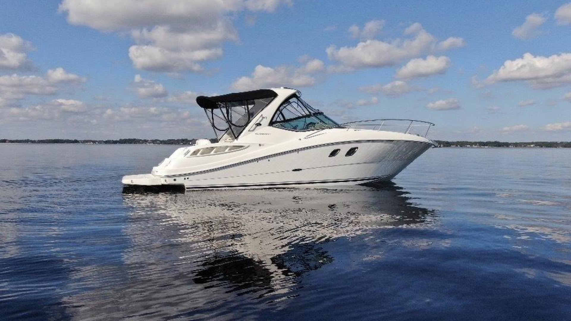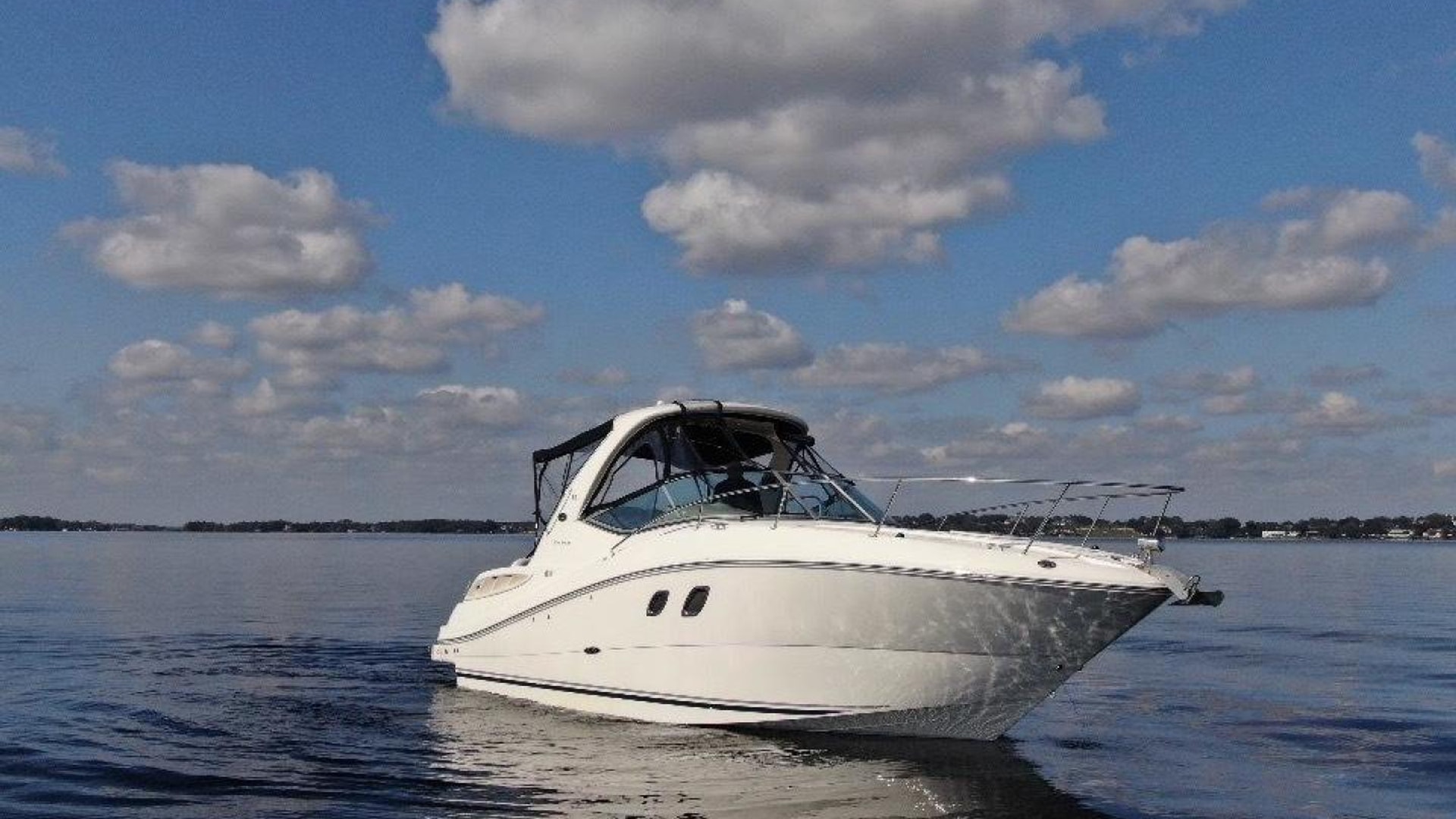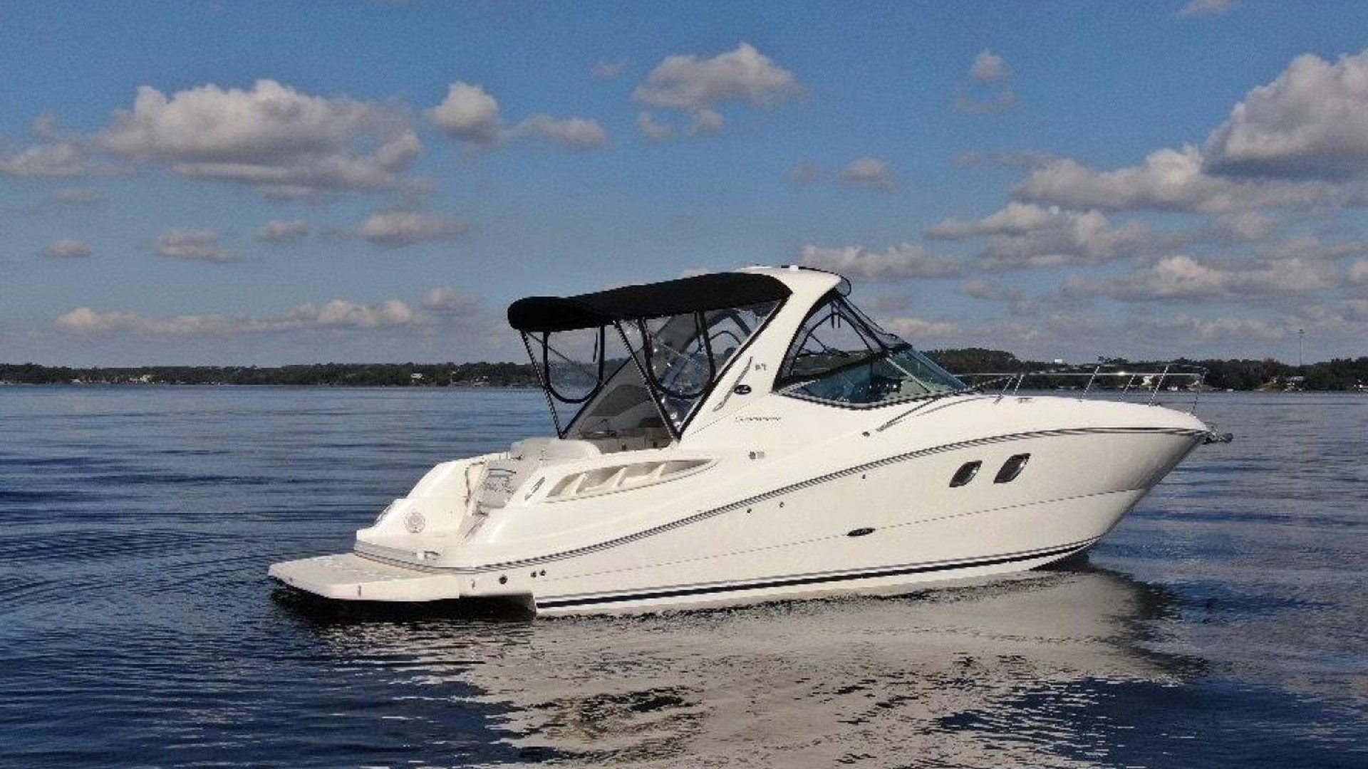 2009 33 ft Sea Ray 310 Sundancer "Andrews Place". She is powered by Twin 300HP Mercruiser 350 Mag Engines with the Axius Joystick and Skyhook system. At the helm, Garmin 840SX display for the radar, Garmin GPS, Raymarine VHF and Smart Craft display. The cockpit has a wet bar with electric grill, refrigerator and sink, fwd. and aft facing seats with a teak folding table. Below deck, cherry wood interior, ultra-leather seating, full galley to port, two staterooms and a head compartment. There is a center-line queen berth forward with hanging locker to starboard and a storage locker to port, A/C controls and a privacy curtain. The galley is to port and the Ultra-leather settee with folding wood table to starboard. The enclosed head compartment is aft of the galley. The Mid-cabin is aft under the helm area with double berth, TV, storage and privacy curtain. There is a 32" TV mounted above the Mid-cabin, and Maple flooring. The boat has been trailer stored under cover.