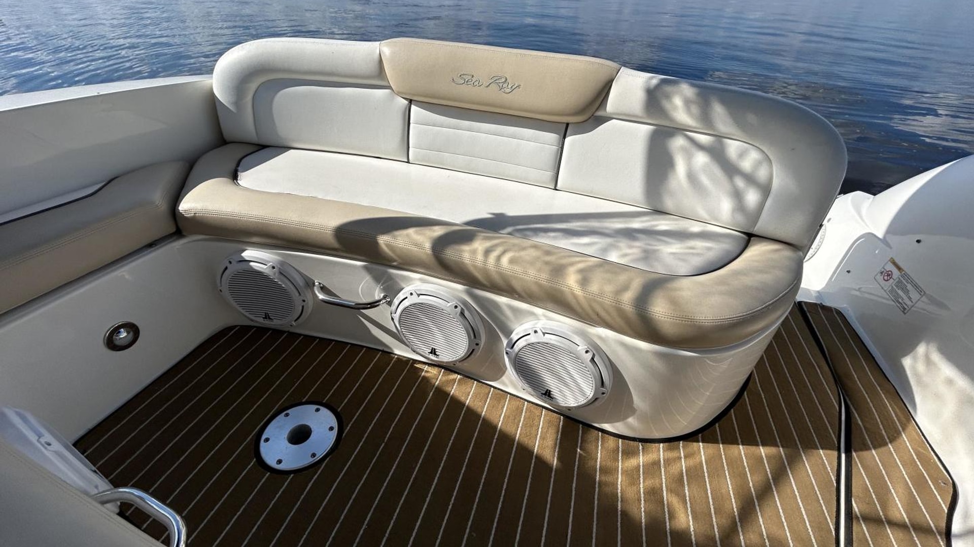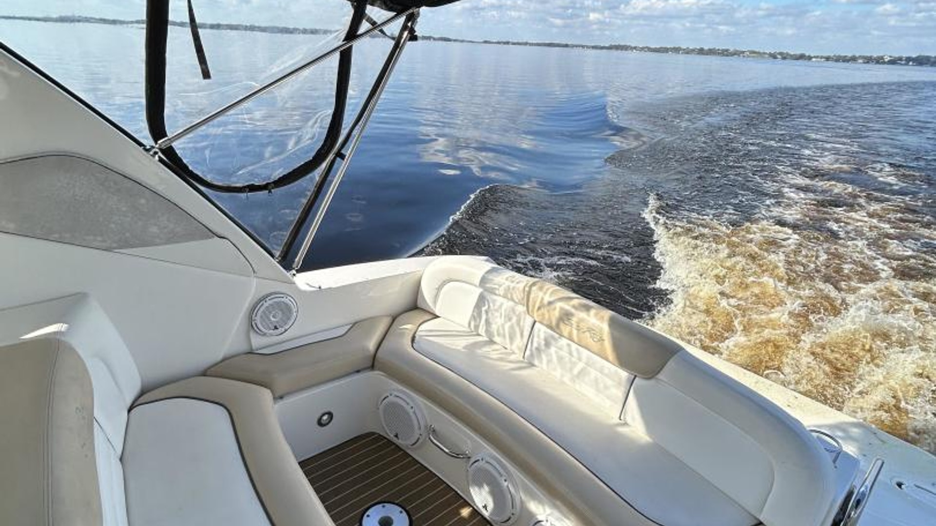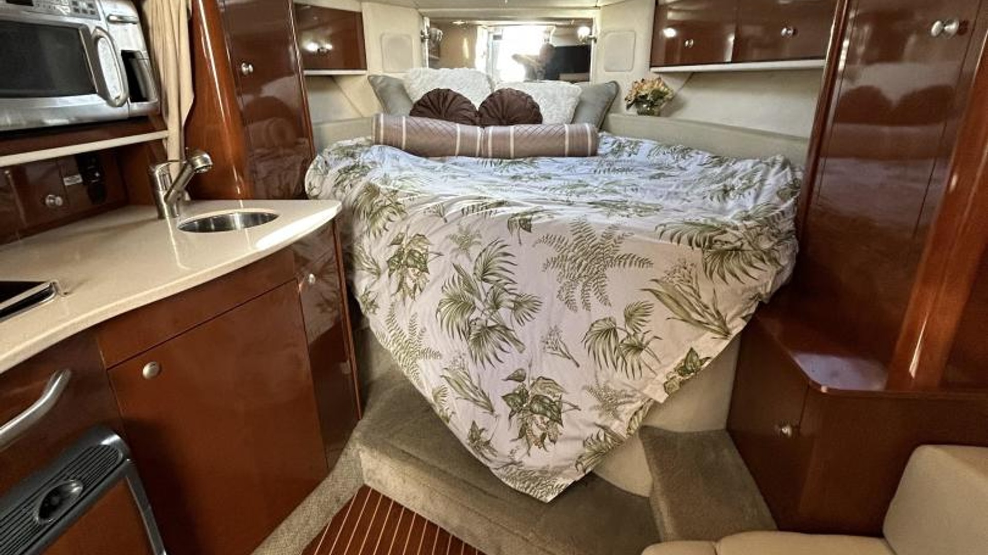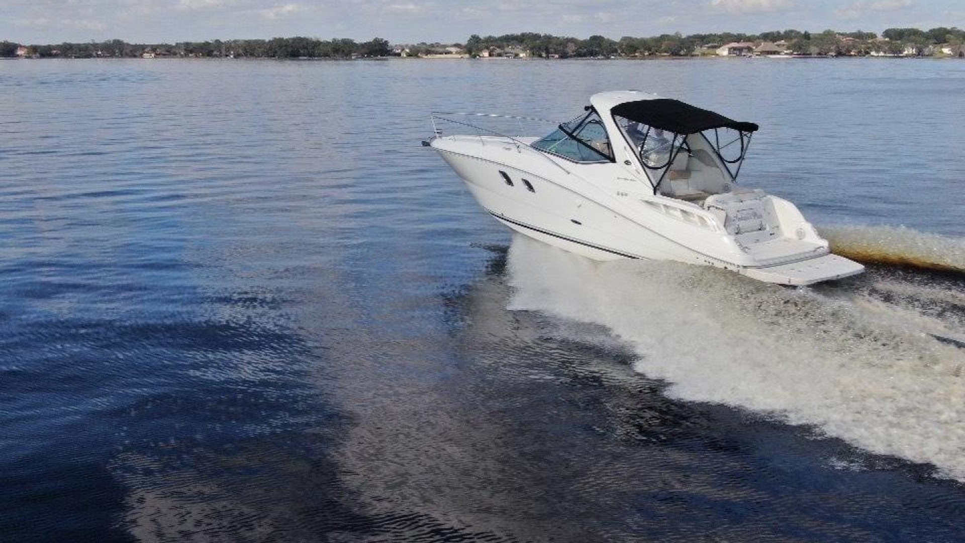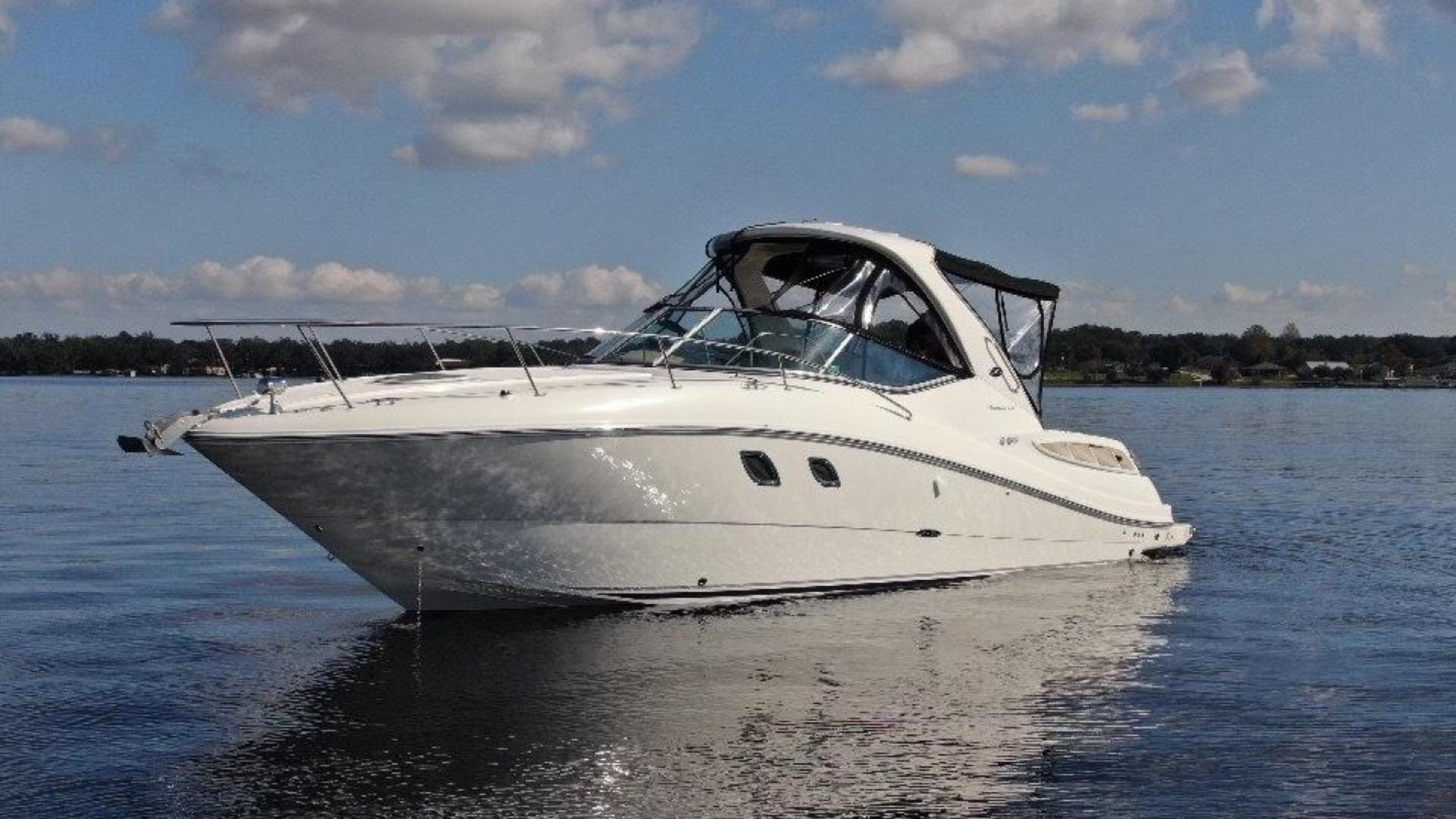 2009 33 ft Sea Ray 310 Sundancer "Andrews Place". She is powered by Twin 300HP Mercruiser 350 Mag Engines with the Axius Joystick and Skyhook system. At the helm, Garmin 840SX display for the radar, Garmin GPS, Raymarine VHF and Smart Craft display. The cockpit has a wet bar with electric grill, refrigerator and sink, fwd. and aft facing seats with a teak folding table. Below deck, cherry wood interior, ultra-leather seating, full galley to port, two staterooms and a head compartment. There is a center-line queen berth forward with hanging locker to starboard and a storage locker to port, A/C controls and a privacy curtain. The galley is to port and the Ultra-leather settee with folding wood table to starboard. The enclosed head compartment is aft of the galley. The Mid-cabin is aft under the helm area with double berth, TV, storage and privacy curtain. There is a 32" TV mounted above the Mid-cabin, and Maple flooring. The boat has been trailer stored under cover.