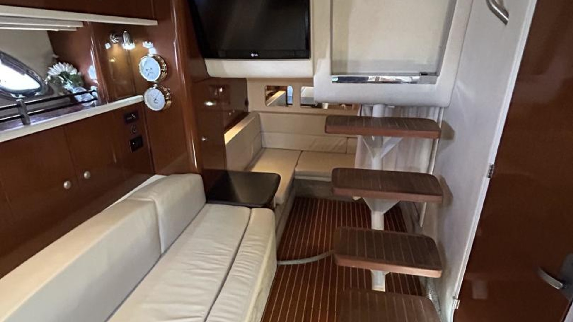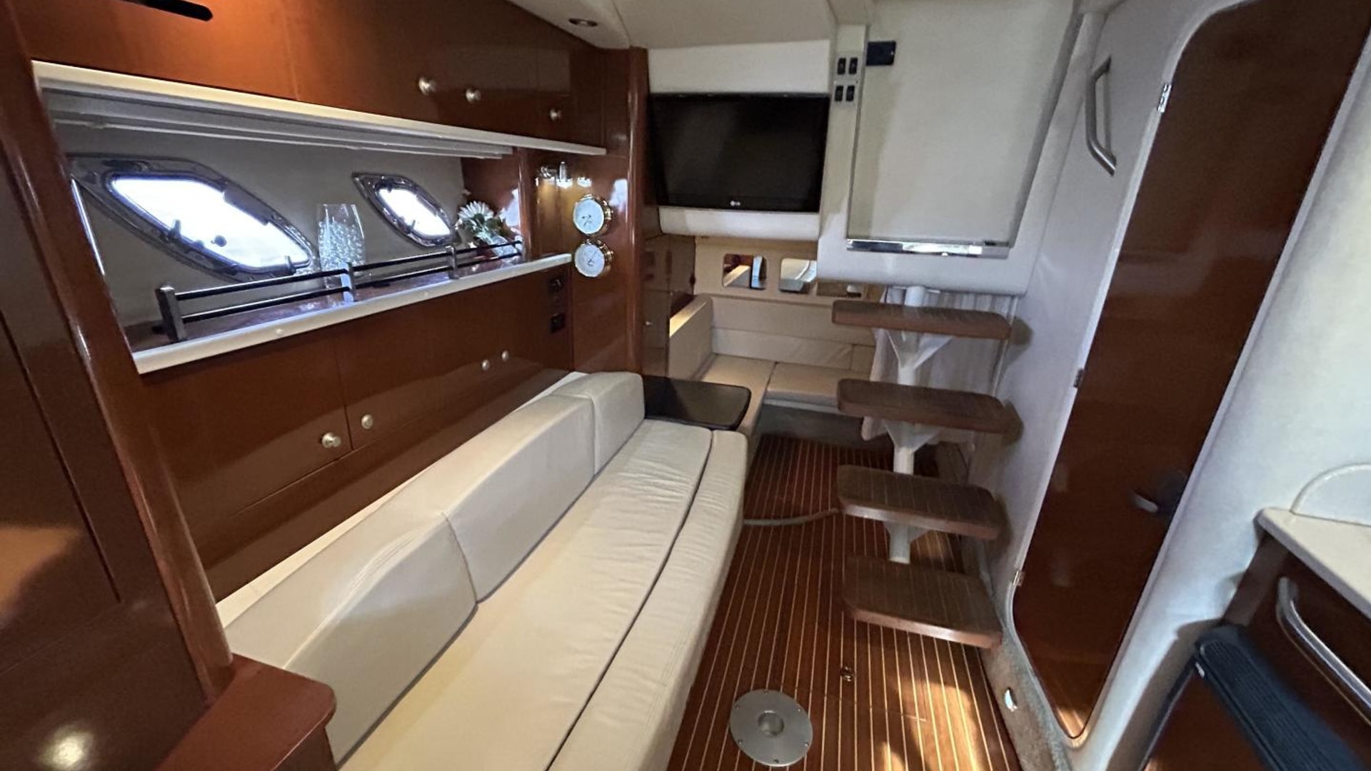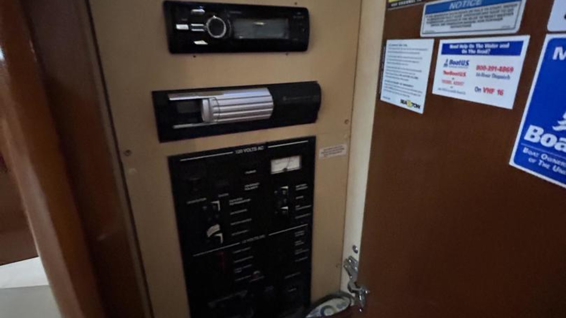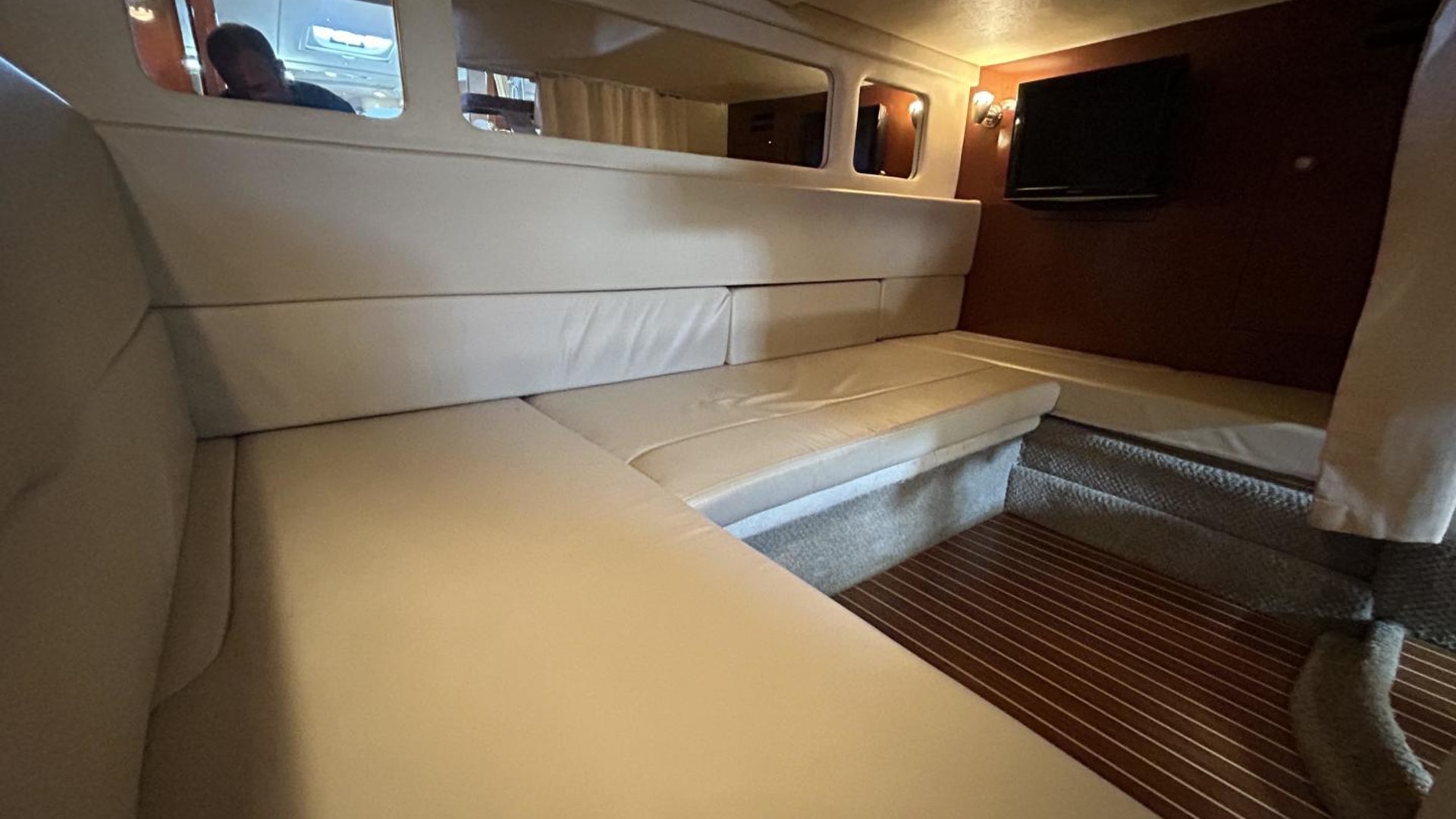 2009 33 ft Sea Ray 310 Sundancer "Andrews Place". She is powered by Twin 300HP Mercruiser 350 Mag Engines with the Axius Joystick and Skyhook system. At the helm, Garmin 840SX display for the radar, Garmin GPS, Raymarine VHF and Smart Craft display. The cockpit has a wet bar with electric grill, refrigerator and sink, fwd. and aft facing seats with a teak folding table. Below deck, cherry wood interior, ultra-leather seating, full galley to port, two staterooms and a head compartment. There is a center-line queen berth forward with hanging locker to starboard and a storage locker to port, A/C controls and a privacy curtain. The galley is to port and the Ultra-leather settee with folding wood table to starboard. The enclosed head compartment is aft of the galley. The Mid-cabin is aft under the helm area with double berth, TV, storage and privacy curtain. There is a 32" TV mounted above the Mid-cabin, and Maple flooring. The boat has been trailer stored under cover.