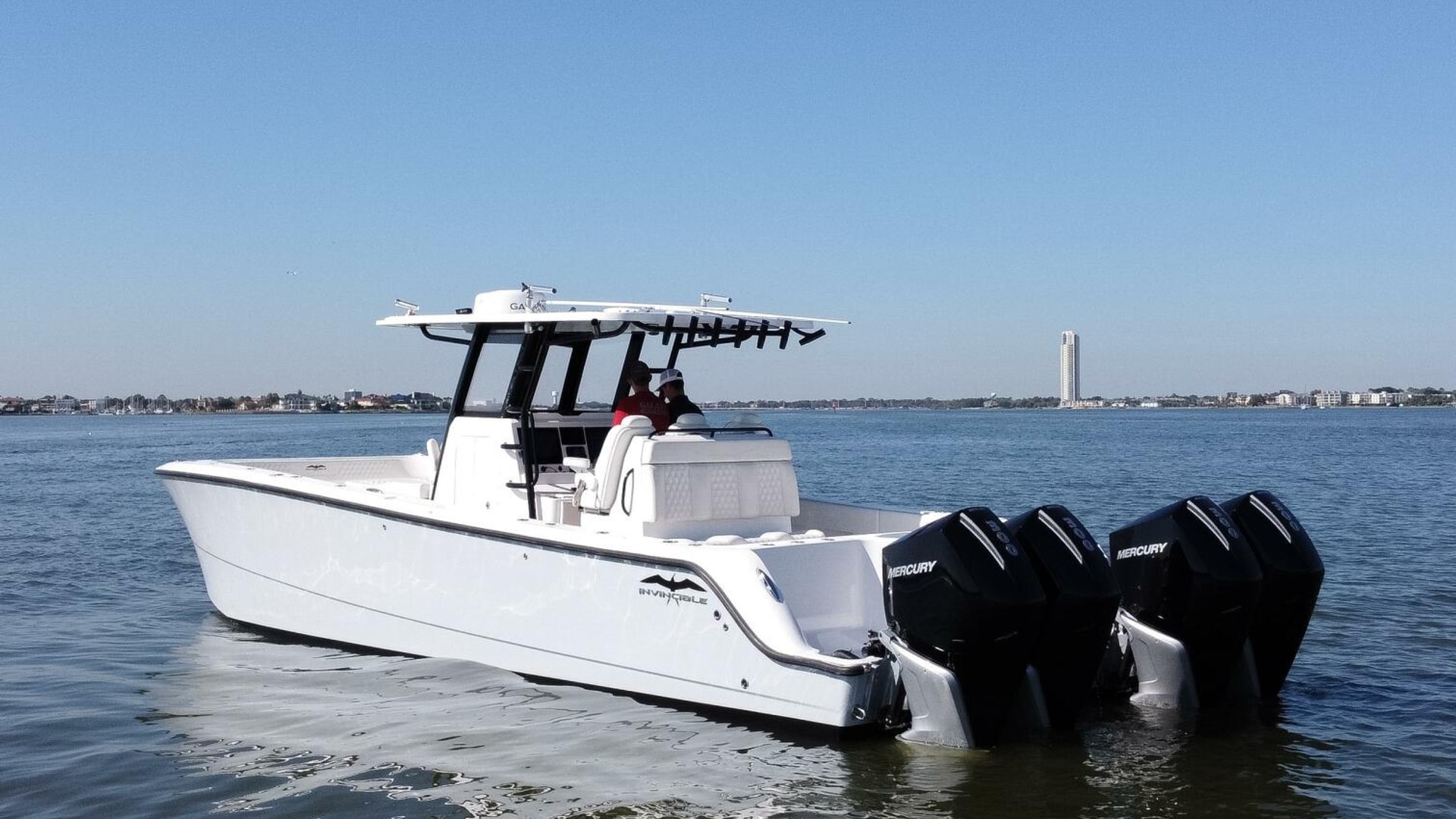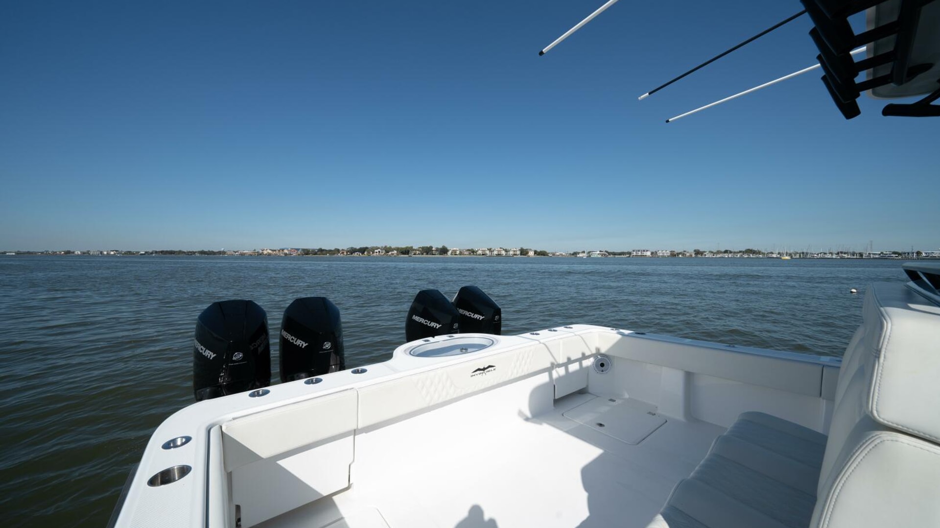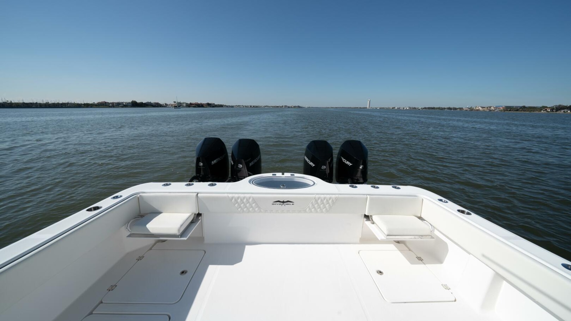 The 2021 Invincible 35 Catamaran is a high-performance offshore fishing boat known for its speed, stability, and smooth ride in rough seas. Powered by quad Mercury 300 HP engines, it can reach impressive top speeds while maintaining excellent fuel efficiency. Its twin-stepped hull design by Morrelli & Melvin provides exceptional handling and balance, even at high speeds. The spacious deck layout offers ample fishing space, storage, and livewells, making it ideal for serious anglers. Inside, premium finishes and advanced Garmin electronics make the 35 Cat both luxurious and highly functional for offshore adventures.