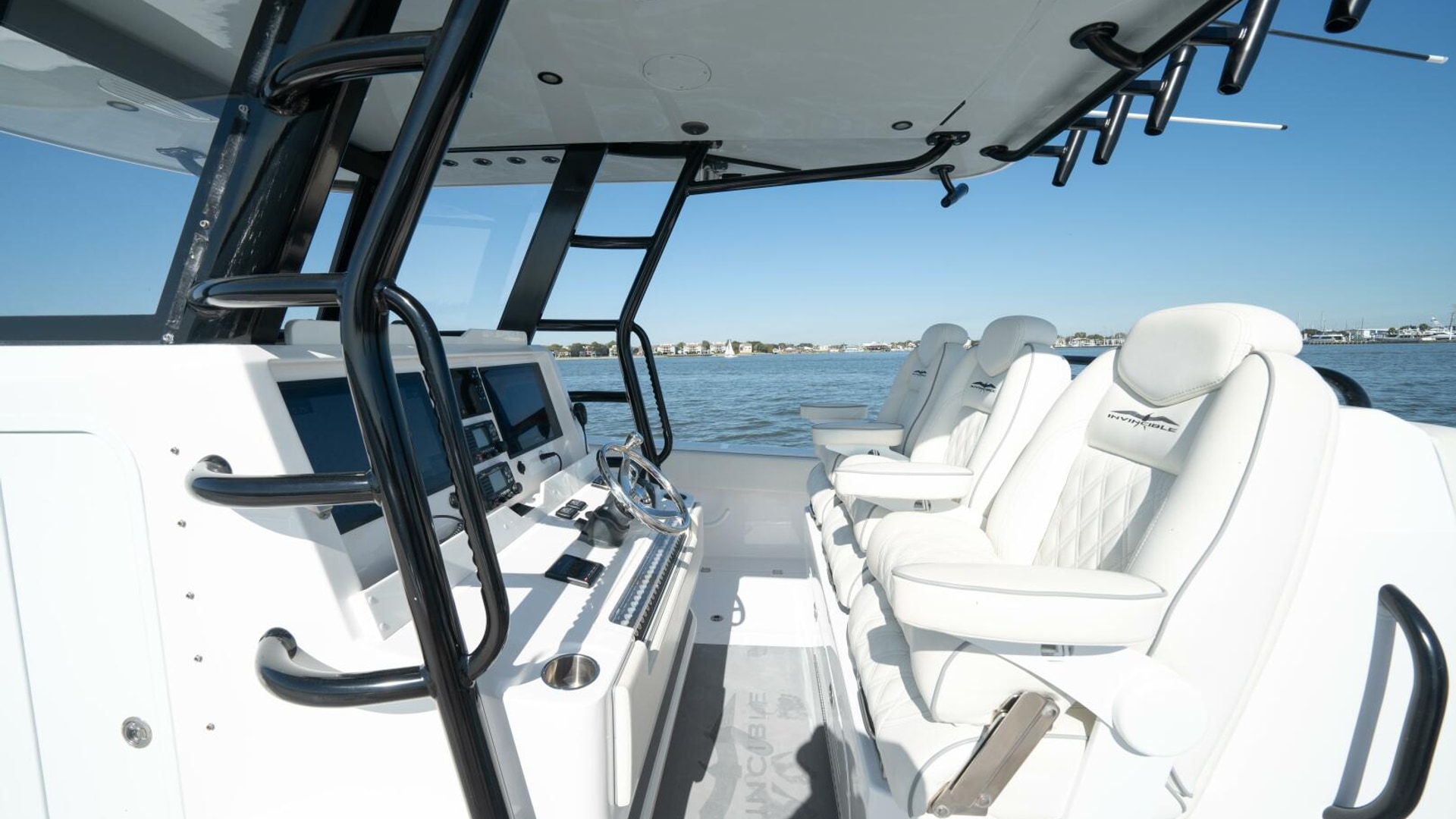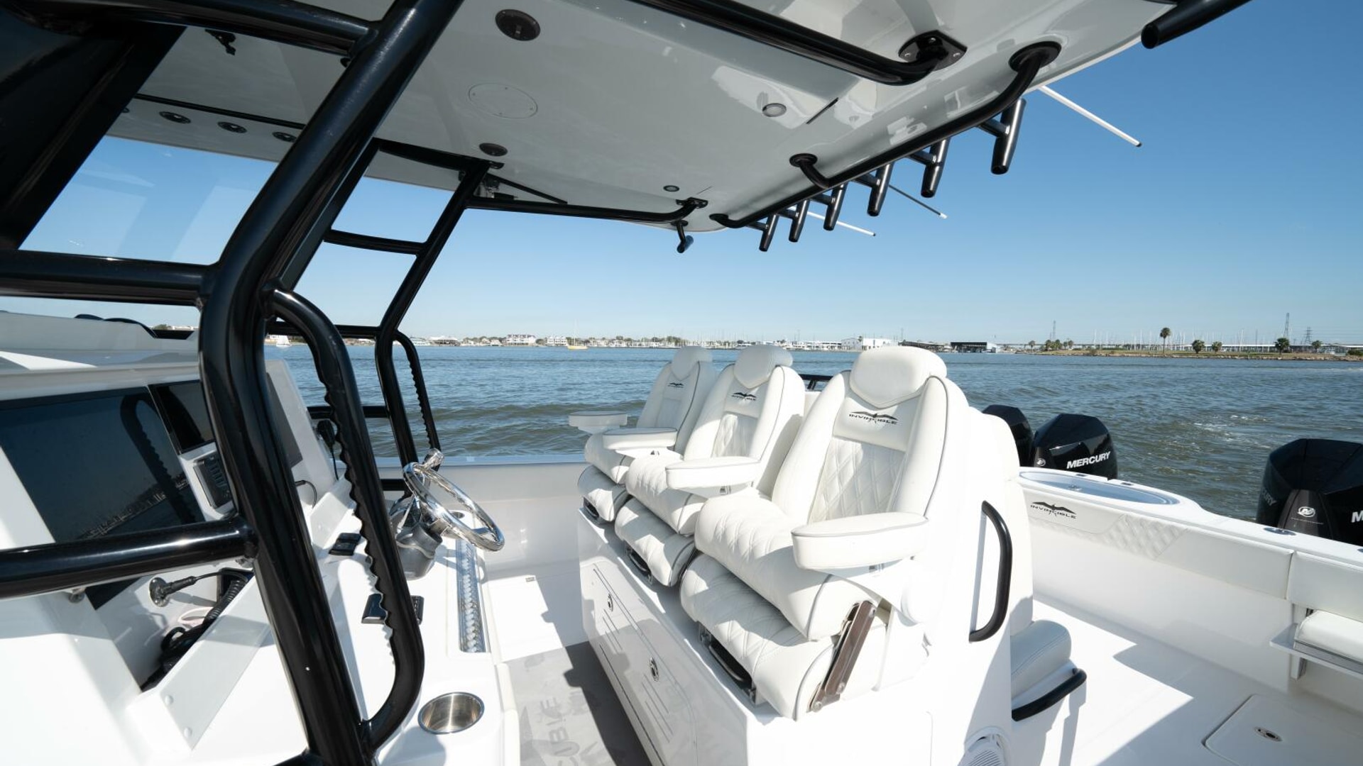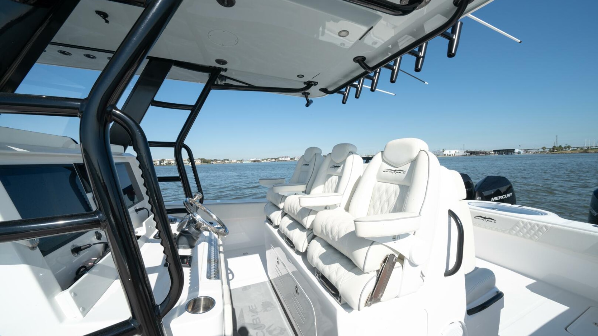 The 2021 Invincible 35 Catamaran is a high-performance offshore fishing boat known for its speed, stability, and smooth ride in rough seas. Powered by quad Mercury 300 HP engines, it can reach impressive top speeds while maintaining excellent fuel efficiency. Its twin-stepped hull design by Morrelli & Melvin provides exceptional handling and balance, even at high speeds. The spacious deck layout offers ample fishing space, storage, and livewells, making it ideal for serious anglers. Inside, premium finishes and advanced Garmin electronics make the 35 Cat both luxurious and highly functional for offshore adventures.