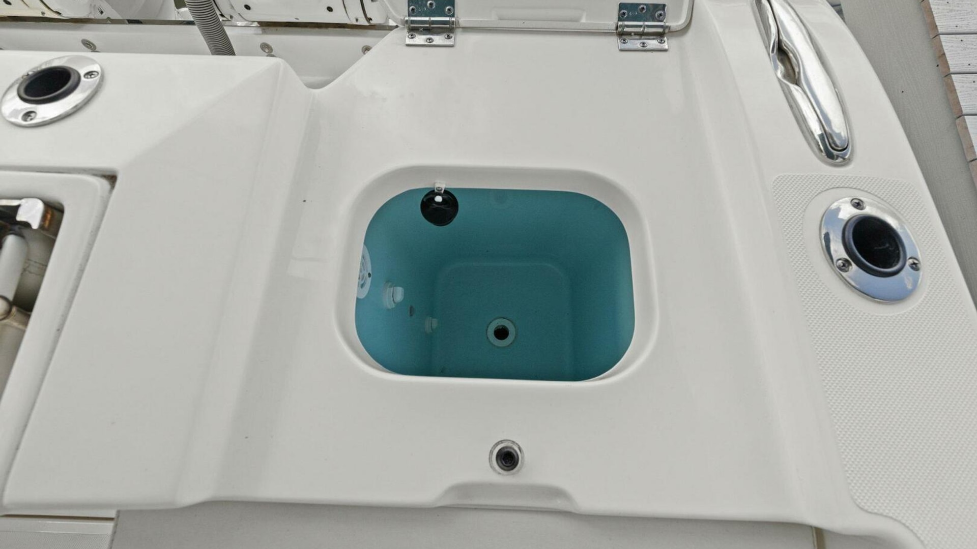 - Molded Recessed Hatches with Gaskets and 316L Stainless Steel Latches and Overboard Drain Tracks